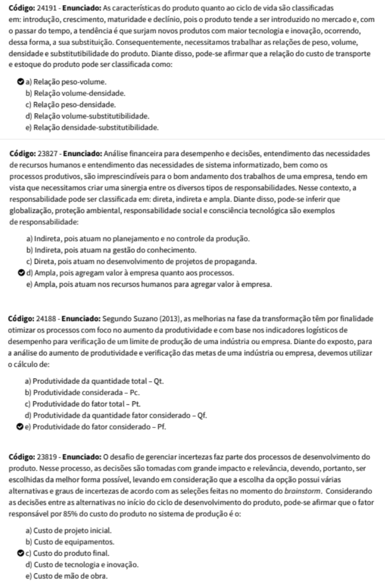 A2 PROJETO DO PRODUTO - BANCO DE QUESTÕES + GABARITO UVA EAD