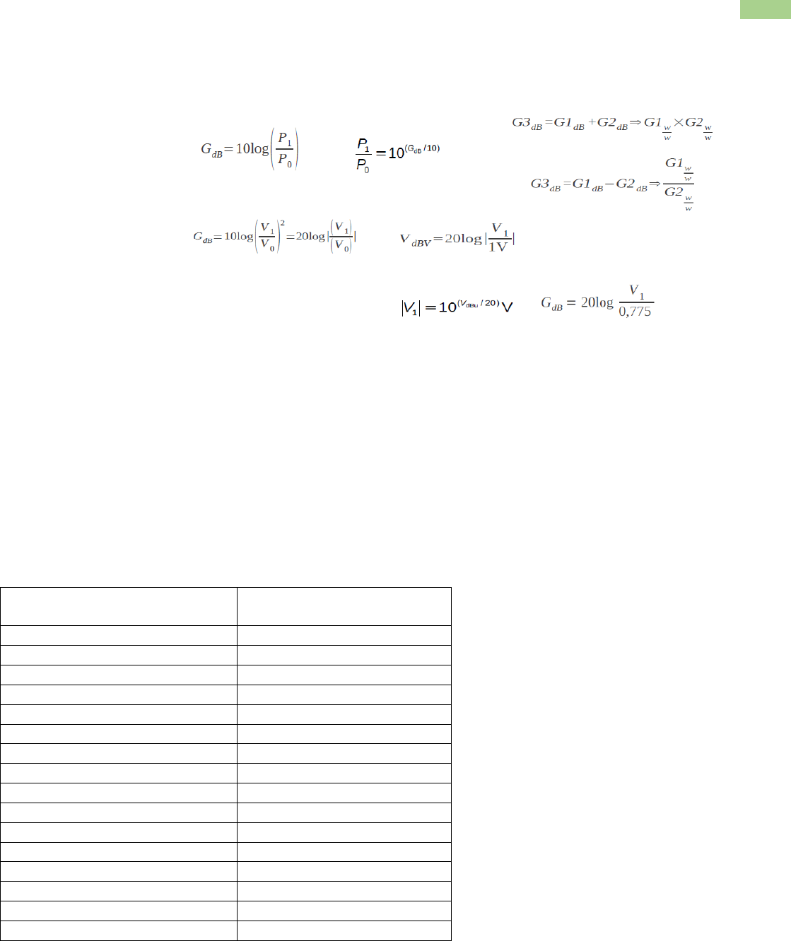 1 Sistema de Comunicação – Prof. Emerson Lista de Exercícios 1) Calcule em dB as relações, demonstrando os cálculos. a) 100mV e 10mV b) 800mW e 20mW c) 10mW e 2mW d) 50V e 2V e) 10pW e 1mW f) 2fw e 10kW g) 30A e 3mA h) Um sistema com 0,3mV na entrada, fornecer 3V na saída. Calcule o seu ganho em dB i) Durante um show, a intensidade sonora nas proximidades do palco era de aproximadamente 1W/m². Sabendo eu a intensidade mínima para audição humana é de 1x10-2 W/m². Determine o nível de intensidade sonora na região do palco em dB. j) Um amplificador tem uma entrada de 10mV e saída de 2V. Qual é o ganho de tensão em dB? k) A entrada de um amplificador, percorre uma corrente de 0,632mA, com uma resistência de 1,5KΩ. Em sua saída encontra-se uma resistência de 100Ω com uma tensão de 30Vrms. Pede-se, qual a potência da entrada e da saída, e seu ganho em dB? 2) Relacione dB para Escala Linear Escala Logarítmica (Parcela a somar ou subtrair) Escala linear (Fator a multiplicar ou dividir) -30dB -10dB -3dB -5dB + 3dB 0 dB 1dB 2dB 3dB 3dB + 2dB 3dB + 3dB 10dB – 3dB 10dB 10dB + 10dB 20dB + 3dB 20dB + 7dB 10dB + 10dB + 10dB 3) Determine as equivalências, demonstrando os cálculos a) 3500pW > dBm b) 250mW > dBm c) 12fW > dBm d) 6,12pW > dBm 2 Sistema de Comunicação – Prof. Emerson e) 0,000000000023W > dBm f) Determine -18dBm em potência absoluta (Watts). g) A Potência de RF dentro de um forno micro-ondas é 60dBm, qual a equivalência em W? h) A Potência típica de transmissão do telefone celular é 500 mW, qual a equivalência em dBm? i) APotência de recepção de um aparelho GPS é 0,18 femtowatt, qual a equivalência em dBm ? j) Um nível de -35dBu é medido num ponto de 600W de impedância. Qual é o nível em dBm? k) Qual é o valor em dBm ( em mW) a) do dobro de uma potência igual a 32dBm? b) da metade de uma potência a 32dBm? c) de uma potência 8 vezes maior que 32dBm? d) de uma potência 8 vezes menor que 32dBm? e) 25) Qual é o resultado da soma de dois sinais descorrelacionados com potência de -40dBm e -45dBm? f) Qual é o resultado da soma de dois sinais descorrelacionados com potência de -40dBm e 95dBm? g) Qual o resultado da soma de duas potências iguais a 32 dBm? h) Qual a razão entre a potência 23dBm e a potência 10dBm? i) Quantas vezes a potência de 10dBm é superior a -30 dBm? j) 31) Qual é o nível medido em dBu de ponto do sistema, cuja impedância é 75W, e potência de 5dBm? k) Aumentando-se em 6dB uma potência P = 10mW, quanto vale a nova potência obtida? 4 Um Amplificador apresenta Ganho de Potência igual a 42dB. Na saída deste amplificador tem-se 18,3dBdBW. Determine a Potência de Entrada em W, mW e dBm? 5 A potência de saída transmitida pelo telefone celular é de +30dBm. No receptor o sinal recebido está com apenas 5pW. Qual é a atenuação dB A do sinal entre o transmissor e receptor? 6 Num ponto A de um sistema foi determinada que a potencia do sinal é de 1mW, e a potencia do ruído de 1pW. Qual é a SNR em dB? 7 Dado o sistema abaixo com os pontos de medição A, B, C e D: a) Determine as potências para cada ponto em dBm. b) Determine as potências para cada ponto em Watts. c) Considerando que a impedância nesses pontos é de 600W, determine a tensão produzida para cada ponto pela potência calculada em (b). d) Determine para cada ponto o nível em dBu. 3 Sistema de Comunicação – Prof. Emerson e) Considere o ponto C como sendo o ponto de referência. Qual seria o nível dBr de cada ponto. 8 Dado o sistema abaixo e as potências nos pontos de medição A, B, e C: a) Determine as potências em dBm de cada ponto. b) Determine o ganho (perda) em cada estágio em (dB) e em razão de Potência. c) Considerando que a impedância é de 75W em todos os pontos, qual seria o nível medido em dBu nestes pontos. 9 Dado o sistema abaixo e as potências nos pontos de medição A, B, C e D. a) Aplicando-se um sinal de nível igual a 12dBm no ponto A, qual será o nível em dBm desse sinal nos pontos C, B e D? b) Qual é o nível em dBr no ponto de referência do sistema? c) Qual seria a potencia em dBm, nos pontos A, B, C e D, de um sinal de teste de -30dBm0? 10 Um sistema de Recepção a Potência do sinal é de -85dBm, e a potência do Ruído é de -117dBm. Determine a relação Sinal/Ruído. 11 Em uma transmissão de Vídeo, o SNR mínima é de 55dB, a potência do sinal recebido é de -76dBm. Determine a Potência máxima de ruído para atender o grau de qualidade. 12 O menor sinal que uma pessoa jovem consegue ouvir em condições de silêncio é um sinal de 0dBSPL. O nível mais alto que a mesma pessoa pode ouvir sem que tenha danos no seu sistema auditivo é de 110 dBSPL. Qual é o aumento de potência que deve ser dado ao Alto falante para que a potência passe do mínimo audível para o máximo suportável sem prejuízo para o ouvido?