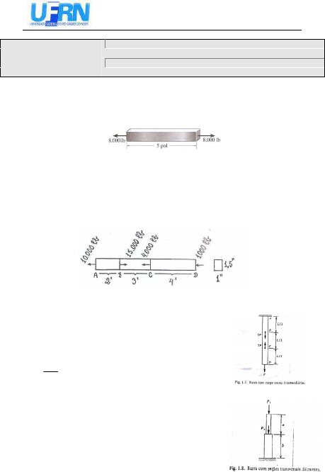 1. Uma barra com comprimento de 5 pol e área da seção reta igual a 0,07 pol²