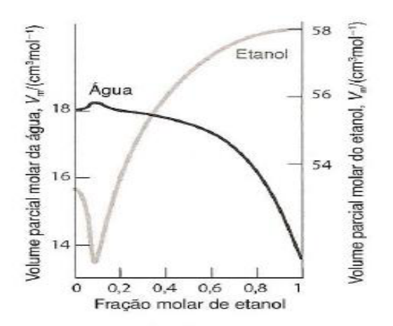 UNIVERSIDADE ESTADUAL DO CEARÁ CENTRO DE CIÊNCIAS E TECNOLOGIA CURSO DE QUÍMICA DISCIPLINA FÍSICO-QUÍMICA II PROFESSORA: AURELICE OLIVEIRA LISTA DE EXERCÍCIOS 2 – SOLUÇÕES Os volumes parciais molares da acetona (propanona) e do clorofórmio (triclorometano) em uma solução em que a fração molar do CHCl3 é 0,4693 são, respectivamente, 74,166 cm3 mol-1 e 80,235 cm3 mol-1. Qual o volume de 1,000 Kg desta solução? Os volumes parciais molares de dois líquidos A e B em uma solução em que a fração molar de A é 0,3713 são, respectivamente, 188,2 cm3 mol-1 e 176, 14 cm3 mol-1. A massa molar de A é 241,1 g mol-1 e a de B 198,2 g mol-1. Qual o volume de 1,000 Kg desta solução? A 20 C, a massa específica de uma solução a 20% ponderais de etanol em água é 968,7 Kg m-3. O volume parcial molar do etanol na solução é 52,2 cm3 mol-1. Calcule o volume parcial molar da água. Use a figura abaixo para fazer uma estimativa do volume total de uma solução formada pela mistura de 50,0 mL de etanol com 50,0 mL de água. As densidades dos dois líquidos são 0,789 e 1,000 g.cm‐3, respectivamente. 5. Os volumes molares parciais para uma solução de benzeno–tetracloreto de carbono a 25 C a uma fração molar de 0,5 são: Vb = 0,106 L mol−1 e Vc = 0,100 L mol−1, respectivamente, em que os subscritos b e c denotam C6H6 e CCl4. (a) Qual é o volume de uma solução preparada com um mol de cada componente? (b) Dado que os volumes molares são: C6H6 = 0,089 L mol1 e CCl4 = 0,097 L mol−1, qual é a variação no volume ao se misturar 1 mol de C6H6 com 1 mol de CCl4? (c) O que você pode deduzir sobre a natureza das forças intermoleculares entre o C6H6 e o CCl4? 06. Calcule a energia de Gibbs, a entropia e a entalpia na misturação de 1,00 mol de C6H14 (hexano) com 1,00 mol de C7H16 (heptano), a 298 k. Admita que a solução resultante seja ideal. Um recipiente de 5,0 L está dividido em dois compartimentos de tamanhos iguais. O da esquerda contém nitrogênio a 1 atm e 25 °C. O da direita contem hidrogênio nas mesmas condições de pressão e temperatura. Calcule a energia de Gibbs de mistura e a entropia de mistura no processo que ocorre pela remoção da separação entre os compartimentos. Admita que os gases se comportem idealmente. A 310 K, as pressões parciais do vapor de uma substância B dissolvida num líquido A são as seguintes: XB 0,010 0,015 0,020 pB/KPa 82,0 122,0 166,1 Mostre que a solução a lei de Henry sobre este intervalo de frações molares e calcule a constante da lei de Henry a 310 K. Com os dados da questão anterior, estime a pressão parcial de vapor do componente B em equilíbrio com sua solução A quando a molalidade de B for 0,25 mol Kg-1. A massa molar de A é 74,1 g mol-1. 4. A partir da lei de Henry, calcule a solubilidade (em molalidade) do CO2 em água, a 25 °C, quando a sua pressão parcial e (a) 0,10 atm e (b) 1,00 atm. [Dados: KCO2(H2O) = 1,25×106 torr O benzeno e o tolueno formam soluções quase ideais. O ponto de ebulição do benzeno puro é 80,1 C. Calcule o potencial químico do benzeno em relação ao do benzeno puro quando Xbenzeno = 0,30 no ponto de ebulição. A pressão de vapor do 2-propanol é 50,00 KPa a 338,8 C, mas cai a 49,62 KPa quando se dissolvem, em 250 g de 2-propanol, 8,69 g de um composto orgânico não volátil. Calcule a massa molar do composto. As substâncias A e B são ambas líquidos voláteis com pA* = 300 Torr, pB* = 250 Torr e Kb = 200 Torr (as concentrações exprimem-se em frações molares). Quando XA = 0,9, bB = 2,22 mol Kg-1, pA = 250 Torr e pB = 25 Torr. Calcule as atividades e os coeficientes de A e de B. Para A, use as frações molares e a lei de Raoult; para B, as frações molares, e também as molalidades, e a lei de Henry. Uma solução diluída de Br2 (bromo) em CCl4 (tetracloreto de carbono) se comporta como uma solução diluída ideal. A pressão de vapor do CCl4 puro e 33,85 Torr, a 298 K. A constante da lei de Henry quando a concentração de Br2 e expressa em fração molar e 122,36 Torr. Calcule a pressão de vapor de cada componente e a pressão total e a composição da fase gasosa quando a fração molar do Br2 for 0,050, admitindo que, nesta concentração, a solução se comporta como uma solução diluída ideal. A medida das composições das fases liquida e gasosa, em equilíbrio, de soluções de acetona (A) e etanol (E) mostrou que, a 57,2 °C, sob pressão de 1,00 atm, tem-se xA = 0,400 (fração molar de A no lÍquido) quando yA = 0,516 (fração molar de A no vapor). Calcule as atividades e os coeficientes de atividade dos dois componentes desta solução com base na lei de Raoult. As pressões de vapor dos componentes puros, na temperatura mencionada, são: pA* = 786 Torr e pB* = 551 Torr. Calcule a força iônica de uma solução que é 0,040 mol Kg-1 em K3[Fe(CN)6](aq), 0,030 mol Kg-1 em KCl(aq) e 0,050 mol Kg-1 em NaBr (aq). Calcule as massas de (a) KNO3 e, separadamente, (b) de Ba(NO3)2, quando o sal é adicionado a uma solução de KNO3(aq) 0,110 mol Kg-1, contendo 500 g do solvente, para elevar a força iônica a 1,00. Estime o coeficiente médio de atividade iônica e a atividade de uma solução que é 0,020 mol Kg-1 no NaCl(aq) e 0,035 mol Kg-1 no Ca(NO3)2(aq). 19. (a) Estabeleça e justifique o critério termodinâmico para o equilíbrio solução-vapor. (b) Explique o significado de uma grandeza parcial molar. 20. (a) Explique o significado da atividade de um solvente. (b) Explique o significado da atividade de um soluto. (c) Explique como é possível modificar a lei de Raoult de modo a descrever a pressão de vapor de soluções reais.