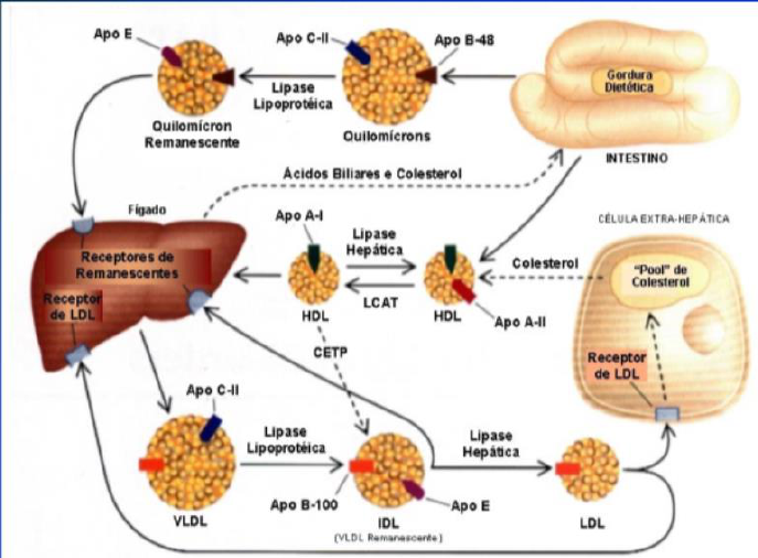 de ativar a lípase de lipoproteínas) e a ApoE (permitindo a interação das lipoproteínas com as células