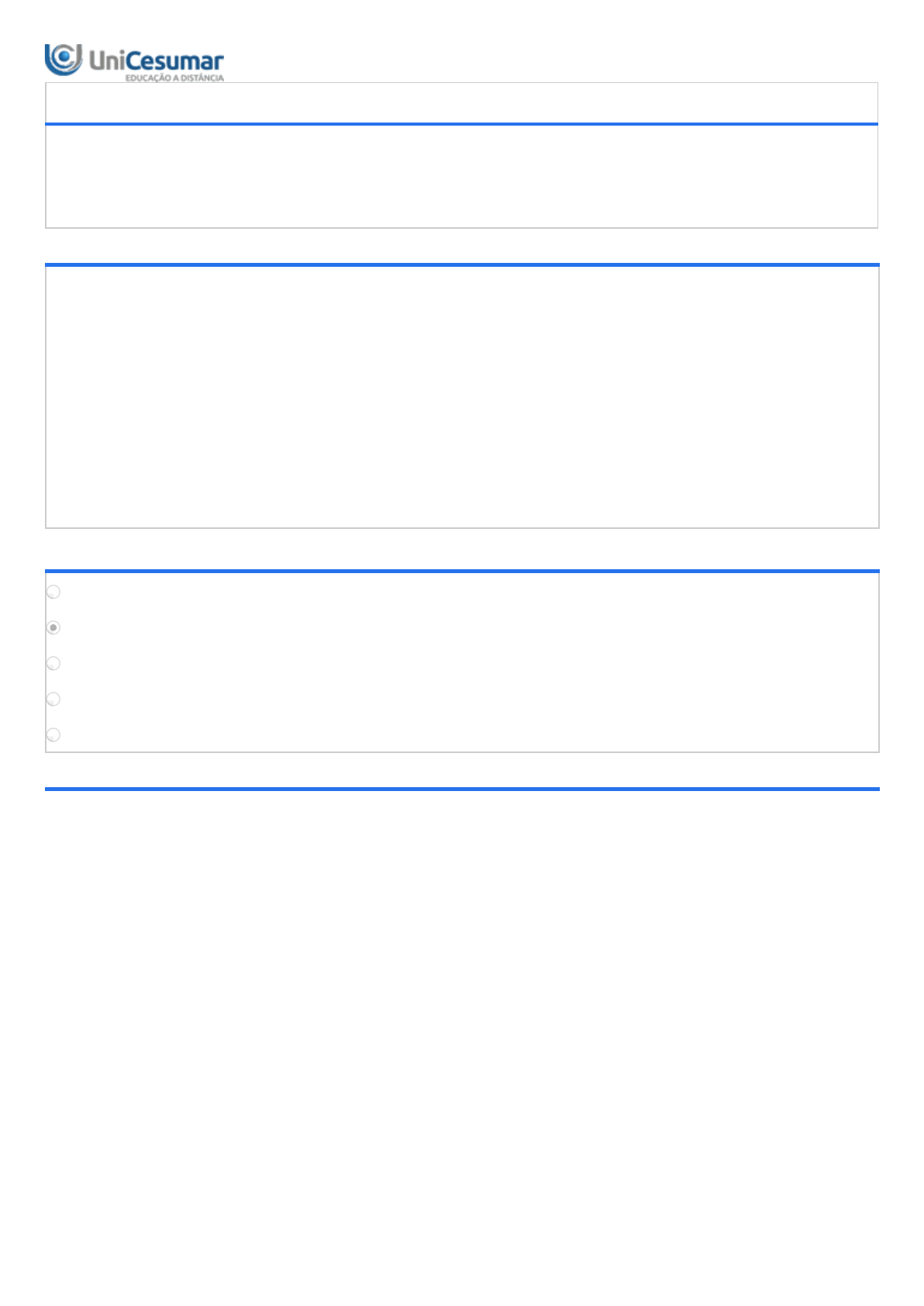 19/06/2019 Unicesumar - Ensino a Distância 1/8 ATIVIDADE 1 - BEDU - ESPORTES COLETIVOS: BASQUETE E HANDEBOL - 2019B2 Período:06/05/2019 08:00 a 31/05/2019 23:59 (Horário de Brasília) Status:ENCERRADO Nota máxima:0,50 Gabarito:Gabarito será liberado no dia 01/06/2019 00:00 (Horário de Brasília) Nota obtida:0,50 1ª QUESTÃO O modelo desenvolvimentista possui boa estrutura conceitual e metodológica e se baseia, principalmente, na relação conteúdo e procedimentos didáticos. A progressão com base nesta aprendizagem deve ser avaliada a partir do volume do conteúdo, a especificidade, a sequência e a ênfase a ser dada ao conteúdo. Assim sendo, o modelo prevê uma complexidade crescente das atividades propostas pelos professores. CASAGRANGRE, Cleber Garcia. Ensino Aprendizagem dos esportes coletivos: análise dos métodos de ensino na cidade de Uberlândia – MG. Dissertação (Mestrado em Educação Física) – Instituto de Ciências da Saúde, Universidade Federal do Triângulo Mineiro. Uberaba – Minas Gerais, 2012. Sobre o objetivo da complexidade das atividades no Modelo Desenvolvimentista, é correto o que se afirma em: ALTERNATIVAS Valorizar o processo instrucional. Adquirir novas habilidades motoras. Apresentar as atividades aos alunos de forma compreensível. Modificar os exercícios de acordo com as respostas dos alunos. Oportunizar a prática do fundamento e o reconhecimento de espaços. 2ª QUESTÃO 19/06/2019 Unicesumar - Ensino a Distância 2/8 O método parcial ou analítico-sintético é considerado uma abordagem tradicional no ensino dos esportes coletivos. Para Garganta (1998), um dos problemas evidentes nesse método é que ao utilizar prioritariamente esta abordagem, os professores prorrogam a abordagem do jogo (método global), até que os alunos consigam realizar o fundamento técnico. GARGANTA, J. Para uma teoria dos jogos desportivos coletivos. In: GRAÇA, A.; OLIVEIRA, J. (Orgs). O ensino dos jogos desportivos coletivos. 3 ed. Lisboa: Universidade do Porto, 1998. A respeito das desvantagens do método parcial de ensino, analise as afirmativas abaixo. I. Processos de tomada de decisão são deixados para um segundo momento do processo de ensino e aprendizagem, com a justificativa de que o aluno necessita de conhecimento antecipado do movimento a ser realizado. II. Os alunos, na maioria das vezes, não sabem em que momento os movimentos aprendidos devem ser realizados no contexto do jogo, ou seja, há pouca transferência do que o aluno realiza nos exercícios para a situação de jogo. III. Utiliza só de exercício conhecido, sem considerar o desconhecido, facilitando a execução dos exercícios realizados em partes e, em seguida, de forma completa, sendo os exercícios mais fáceis seguidos de outros mais complexos. IV. Realizar uma ação mais econômica e efetiva dos movimentos é uma desvantagem para melhorar os resultados alcançados. Para tanto, o ensino inicia-se com o método verbal, que consiste na explicação e demonstração dos exercícios. É correto o que se afirma em: ALTERNATIVAS I e IV apenas II e III apenas I e II apenas IV apenas I e III apenas 3ª QUESTÃO 19/06/2019 Unicesumar - Ensino a Distância 3/8 Desenvolver as habilidades técnicas envolvidas no jogo é condição fundamental para a prática cotidiana tanto sob a forma de lazer quanto de exercício físico regular, ou, ainda, como prática competitiva. De forma ampla, os fundamentos do basquetebol podem ser subdivididos em domínio de corpo, manejo de bola, drible, passes, arremessos e rebotes (BÔAS, 2008; KRAVCHYCHYN et al., 2011). BÔAS, M. S. V. Basquetebol brincando e aprendendo: da iniciação ao aperfeiçoamento. 2. ed. Maringá: Eduem, 2008. KRAVCHYCHYN, C.; MOLENA-FERNANDES, C. A.; LIMA, S. B. S.; OLIVEIRA, A. A. B. Basquete. In: OLIVEIRA, A. A. B.; KRAVCHYCHYN, C.; MOREIRA, E. C.; PEREIRA, R. S. (Org.). Ensinando e aprendendo esportes no Programa Segundo Tempo. Maringá: EDUEM, 2011. p. 95-136. Considerando as informações mencionadas acima, associe as duas colunas, relacionando os fundamentos do basquete com seus respectivos conceitos: 1. Domínio de corpo 2. Manejo de bola 3. Drible 4. Passes 5. Arremessos 6. Rebotes ( ) Recuperação da posse de bola, após uma finalização não convertida. Classificam-se em defensivo e ofensivo. ( ) É necessário que o jogador execute a correta empunhadura, base para a recepção da bola e execução do drible e de passes e arremessos. ( ) É a capacidade de realizar os movimentos do basquetebol, controlando o corpo no tempo e espaço exigidos pela dinâmica do jogo. ( ) Ato de finalização de uma situação de ataque. É o fundamento técnico do basquetebol que requer maior concentração e precisão em sua execução. ( ) O ato de empurrar, com movimentos que podem ser lentos ou rápidos, estando o jogador parado ou em corridas e paradas bruscas, sempre visando ao deslocamento eficiente e à proteção da bola. ( ) Fundamento essencial ao jogo coletivo pretendido por seu criador. É realizado com a intenção de alcançar as melhores condições possíveis de transição da defesa ao ataque, bem como de arremesso à cesta. A sequência correta desta classificação é: ALTERNATIVAS 4, 1, 6, 3, 2, 5 2, 4, 3, 1, 6, 5 1, 5, 6, 2, 4, 3 5, 6, 3, 2, 1, 4 6, 2, 1, 5, 3, 4 4ª QUESTÃO 19/06/2019 Unicesumar - Ensino a Distância 4/8 O _________ busca reorganizar o ensino com um contexto que reproduza as situações que ocorrem no __________, especialmente aquelas que nos apresentam oportunidades de aprendizado educacional por meio da substituição de unidades _________ de curta duração pelo conceito de época ___________ (COSTA; KRAVCHYCHYN, 2018). COSTA; KRAVCHYCHYN. Esportes Coletivos Basquete e Handebol. Maringá: Unicesumar, 2018. Diante do exposto, na sequência, assinale a alternativa que preenche as lacunas corretamente: ALTERNATIVAS MED, esporte, didática, desportiva. MD, jogo, prática, esportiva. MED, jogo, prá