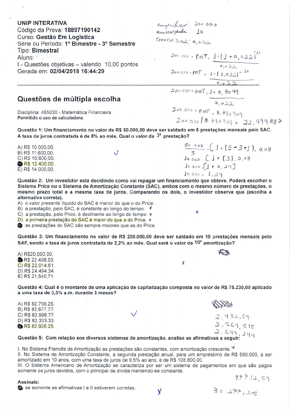 Um financiamento no valor de R$ 200.000,00 deve ser saldado em 10 prestacoes mensais pelo SAF, sendo a taxa de juros contratada de 2,2% ao mes. Qual sera valor da 108 amortizacao? A) R$20.000,00 B) R$ 22.498,93 C) R$ 22.014,61 D) R$ 24.494,34 E) R$ 21,540,71