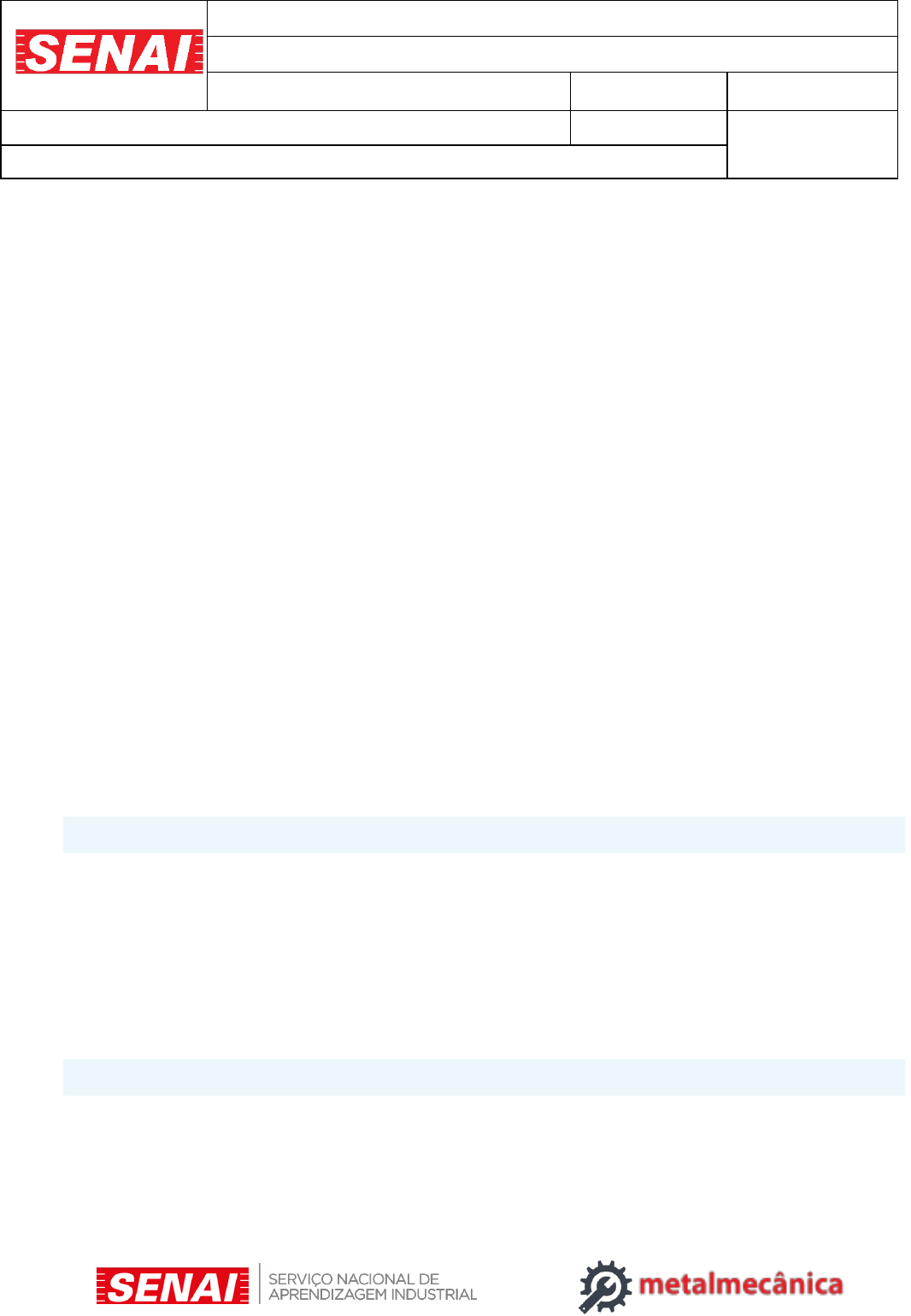 SERVIÇO NACIONAL DE APRENDIZAGEM INDUSTRIAL DE MINAS GERAIS ATIVIDADE ORIENTADA DISCIPLINA: TECNOLOGIA DA MANUTENÇÃO TURMA: MATUTINO INSTRUTOR: ALLISON VITOR AMARANTE DATA: 05/06/19 VISTO ALUNO: Com relação à manutenção mecânica, analise as proposições a seguir. I. Manutenção corretiva é a manutenção efetuada após a ocorrência de uma falha, destinada a colocar um item em condições de executar uma função requerida. II. Manutenção preventiva corresponde a todo serviço de manutenção realizado em máquinas que ainda não apresentaram falhas, estando, com isso, em condições operacionais. III. Manutenção preditiva são tarefas de manutenção preventiva que visam acompanhar a máquina por monitoramento, medições e controle estatístico, e tentam prever a proximidade da ocorrência da falha. IV. Como técnicas preditivas podem-se citar: análise de vibrações, ultrassom e termografia. V. Manutenção autônoma corresponde à manutenção que é adotada pelos operadores, realizando serviços como: limpeza, lubrificação e tarefas elementares de manutenção. Estão CORRETAS as proposições: II, IV e V, apenas. I, II e III, apenas. II, III e IV, apenas. I, II, III, IV e V. I, II, III e IV, apenas. Acerca das características da manutenção corretiva, preventiva e preditiva, julgue o item a seguir. A manutenção não planejada é classificada em três categorias: preditiva, preventiva e acidental. Certo Errado Acerca das características da manutenção corretiva, preventiva e preditiva, julgue o item a seguir. A manutenção preditiva difere da manutenção preventiva, porque naquela não é realizado monitoramento dos equipamentos nem medição de parâmetros do seu funcionamento, mas apenas controle de desempenho dos equipamentos com base na experiência de seus operadores. Certo Errado Leia as afirmações abaixo e assinale a alternativa correta. I. Conservação é o ato de conservar, manter em bom estado, resistir ao desgaste causado pelo tempo. É um estado físico, uma situação pontual, uma consequência. II. A conservação é parte da manutenção. Pode estar desvinculada de atividade do plano de manutenção. A) Somente a afirmação I está correta. B) Somente a afirmação II está correta. C) Nenhuma das afirmações está correta. D) Todas as afirmações estão corretas. Monte um plano de manutenção corretiva a partir dos conhecimentos em sala de aula. No planejamento da manutenção de equipamentos, o engenheiro mecânico definiu o emprego de técnica de manutenção preditiva. Uma prática utilizada nesse tipo de manutenção é A) substituição de selos mecânicos em bombas de fluxo, quando apresentarem vazamentos. B) troca do óleo lubrificante de um redutor em intervalos predeterminados. C) troca do filtro de ar de um compressor quando ele já tinha sido rompido. D) monitoramento do desgaste de rolamentos por medições de vibrações. Um ajustador mecânico está realizando a operação de furação de um bloco através de uma furadeira manual e de bancada. Esse ajustador observa a ocorrência exagerada de escorregamento entre a correia e as polias, mesmo em condições de baixo carregamento. Ao informar a equipe de manutenção sobre o problema, um técnico foi enviado até o local e observou que a correia apresentava desgaste excessivo e prematuro, sem ter causado ainda danos às polias. Esse técnico então trocou a correia. Qual o processo de manutenção que foi realizado por esse técnico? A) Total B) Preventiva C) Preditiva D) Corretiva E) Preventiva Planejada A respeito de manutenção, julgue o item subsequente. A manutenção do tipo preditiva é caracterizada essencialmente pela negociação de parada do processo produtivo com a equipe de operação quando há motivos ligados à segurança e à garantia de ferramental e peças sobressalentes. A falha ou condição anormal de operação é o objeto central da decisão gerencial que opta, em algumas situações extremas, por operar até a quebra do equipamento. Certo Errado