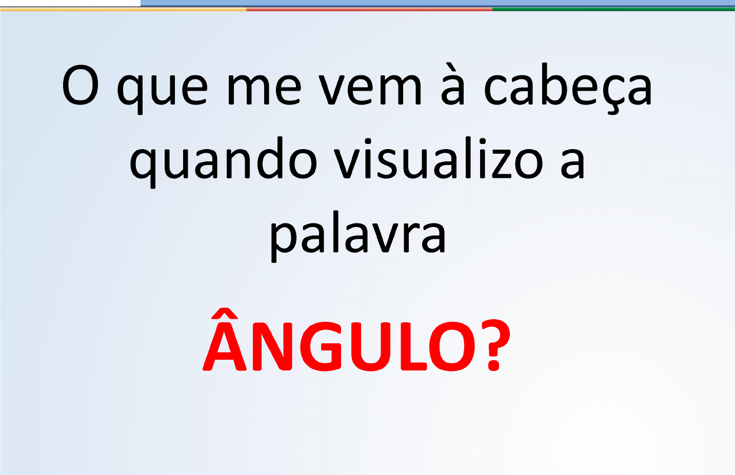O que me vem à cabeça quando visualizo a palavra ÂNG ULO ? l í V ’ M O N T E IR O i U LOBATO A fin a l, o que é um ângulo? • É o no m e que se dá à ab ertu ra fo rm ad a por duas sem irretas que p artem de um m esm o ponto . • Essas sem irre tas são os lados do ângulo; o ponto de onde elas p artem é o vértice do ângulo. WM O N T E I R O } L O B A T O s A / Vértice Notação: AÔB F IG U R A - 0 1 B Como nom ear um ângulo? • Em geral, como na figura anterior, usam-se três letras maiúsculas: duas que marcam pontos das sem irretas que form am o ângulo e uma que representa o vértice, que pode estar acom panhada ou não de acento circunflexo. B • M ( A Ô B ) = 3 0 ° • 30° ângulo AOB ou AÔB A F IG U R A - 0 2 O Outra form a de nom ear um ângulo é usando sim plesm ente uma letra minúscula, acom panhada ou não de acento circunflexo. F I G U R A - 0 3 O S Â N G U L O S ES TÃ O S E M P R E P R E S E N T E S E M N O S S A S V ID A S E Q U A S E N Ã O N O S D A M O S C O N T A . Q U E R V E R ? Imagem: (a) Sovxx / Ferrari / GNU Free Documentation License; (b) Olimor / Futebol de Botão / Public Domain;; (c) Marcela / Bicicleta / GNU Free Documentation License; (d) Cerebellum /Taekwondo / Public Domain; (e) Jorge Barrios / Relógio / Public Domain. Como o ângulo é m edido? • Já vim os que a unidade de m edida usada para ângulos é o grau, que sim bolizam os com o ( ° ) . • Em geral, o ins trum en to utilizado para realizar medidas de ângulos é o transferidor, que pode ser de dois tipos: E M F O R M A T O D E S E M IC ÍR C U L O , D I V I D I D O E M 1 8 0 P A R T E S . |llll|llll|llll|llll|llll|llll|llll|llll|llll|llll|llll|llll|llll|llll|lll^ 0 1 ê 3 H S 6 1 8 3 10 o H—< 03 s; cd d £CD LL E D 2 z r oCD ^O) O i 3 oT o w ~o E £§1 ^ 5 - — l— O o . T 3 CD _ £ 2 o CD O £ O o C/) ' | ■ cu cõ 5 ■§ c ro o £ =5 £ oi E ® g- co 3 9 - - c ü ^ F o ° > 5 .a > C/5 _ l E M F O R M A T O D E C ÍR C U L O , D I V I D I D O E M 3 6 0 P A R T E S . Como usar o trans fe rido r? • Para m e d ir um ângulo , devem os co loca r o ce n tro do tra n s fe r id o r sobre o vé rtice do ângu lo e enca ixar o d iâ m e tro do tra n s fe r id o r sobre um dos lados, com o m ostra a figu ra : C E N T R O D O T R A N S F E R ID O R E V E R T IC E D O A N G U L O E com o nosso corpo, podem os fo rm a r ângulos de a lgum a m aneira? De que fo rm a? Imagem: (a) Everkinetic / Posição 180° / Creative Commons Attribution-Share Alike 3.0 Unported; (b) Everkinetic/ Posição 90° / Creative Commons Attribution- Share Alike 3.0 Unported Classificação dos ângulos ÂNGULO RETO: é aquele cuja m edida apresenta 90°. Â n g u lo R e t o . Imagem: Cerebellum /Taekwondo / Public Domain. • ÂNGULO RASO: é aquele cuja m edida é igual a 180°. Imagem: (a) Jolijnh / Creative Commons Attribution 3.0 Unported; (b) Bjerke videregáende skole / GNU Free Documentation License. • ÂNGULO A G U D O : é aquele cuja m edida é m enor que 90°. Imagem: (a) Pearson Scott Foresman / Public Domain; (b) CK-12 Foundation / Creative Commons Attribution-Share Alike 3.0 Unported. ÂNGULO OBTUSO: é aquele cuja m edida é m aior que 90° e m enor que 180°. Imagem: Pearson Scott Foresman / Public Domain; • ÂNGULO G IRO : é aquele que dá um giro com pleto de 0 o a 360°. Imagem: (a) http://commons.wikimedia.Org/wiki/File:CF46618267_109996904033.gif; (b) Wikiscient / Terra / Creative Commons Attribution-Share Alike 3.0 Unported; (c) Severino666 / Poliedro / GNU Free Documentation License 4 0 ° 0o 9 0 ° 2 7 0 ° Nulo: Um ângulo nulo tem valor igual a 0^ 2 7 0 ° Obtuso: Um ângulo obtuso tem valor entre 905 e 1805 9 0 ° 2 7 0 ° Agudo: Um ângulo agudo tem valor entre 05 e 905 9 0 ° 2 7 0 ° Raso: Um ângulo raso tem valor igual a 1805 9 0 ° 2 7 0 ° Reto: Um ângulo reto tem valor igual a 905 V 9 0 c E L 2 7 0 ° 1 8 0 ° U m a v o lta : U m â n g u lo d e u m a v o lta c o rre s p o n d e a 3 6 0 5 V 4 . Â ngu los opostos p e lo v é rtic e S e o s la d o s d e u m â n g u lo s ã o s e m i- r e t a s o p o s ta s a o s la d o s d e o u t r o â n g u lo , d iz e m o s q u e e le s s ã o o p o s to s p e lo v é r t ic e (O .P .V ) . A ___ / V _______ A O C e B O D são o p o sto s p e lo v értice A ___ / V ____ A O B e C O D são o p o sto s p e lo v értice m (A Ô C ) = m (B Ô D ) m (A Ô B ) = m (C Ô D ) P A R T E 1 1) O ângulo reto, também conhecido como ângulo de um quarto de volta, mede: a) 90° b) 180° c) 270° d) 360° 2) O ângulo que mede menos de 90° e mais de 0° é chamado de: a ) agudo b) raso c) reto d) obtuso 3) Duas retas que não se cruzam, ou seja, permanece sempre à mesma distância uma da outra são chamadas de: a) concorrentes b) oblíquas c) paralelas d) perpendiculares 4) O ângulo formado pelo ponteiro da hora e do minuto quando o relógio marca 3h mede: a) 30° b) 60° c) 90° d) 180 10) O ângulo formado pelo ponteiro da hora e do minuto em um relógio que marca 6h mede: a) 45° b) 90° c) 135° d ) 180° 1 1 ) 0 ângulo de 180° é chamado de: a) ângulo de um quarto de volta b) ângulo de meia volta c) ângulo de três quartos de volta d) ângulo de uma volta 12) O polígono que tem 3 lados, 3 ângulos e 3 vértices é chamado de: a) hexágono b) pentágono c) quadrilátero d) triângulo P A R T E 2 Exercícios de Ângulos: agudo, obtuso, reto, raso ou 1 volta O objeto capaz de medir o valor de um ângulo é chamado de transferidor, podendo ele ser de “meia volta” (1809) ou volta inteira (3609). Classificação de ângulos Os ângulos são classificados de acordo com suas medidas: A g u d o : â n g u lo c o m m e d id a m e n o r q u e 9 0 9. R e to : â n g u lo c o m m e d id a ig u a l a 9 0 9. O b tu s o : â n g u lo c o m m e d id a m a io r q u e 90°. R a s o : â n g u lo c o m m e d id a ig u a l a O2 o u 1 8 0 2. EXERCÍCIOS 1) Classifique os ângulos apresentados nas figuras em agudo, obtuso ou reto: 2) 