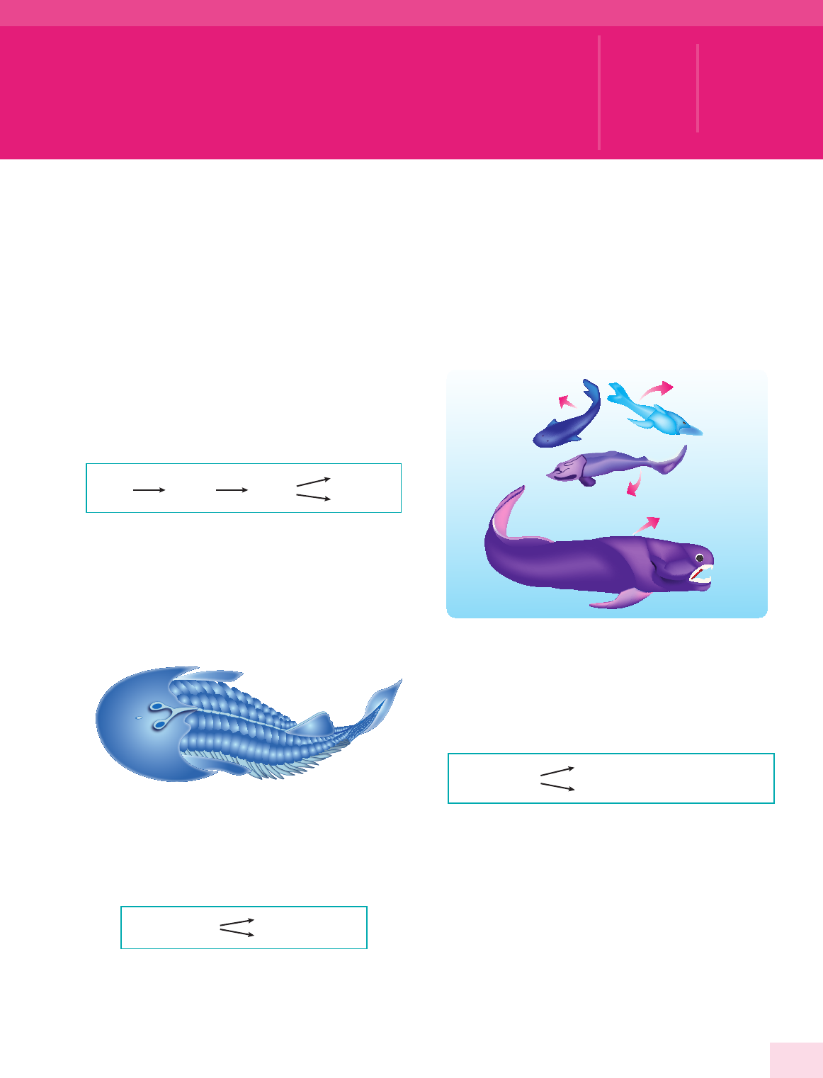 EVOLUÇÃO DOS VERTEBRADOS Os vertebrados são todos os animais com crânio, encéfalo e coluna vertebral. Os primeiros vertebrados Baseando-se em evidências anatômicas, embriológicas, bioquímicas e, especialmente, paleontológicas (fósseis), acredita-se que o surgimento dos vertebrados ocorreu de acordo com a seguinte sequência evolutiva: Peixes Anfíbios Répteis Aves Mamíferos Acredita-se que, a partir de cordados invertebrados, tenham evoluído os primeiros vertebrados: os ostracodermos. Os ostracodermos surgiram há cerca de 500 milhões de anos (período Ordoviciano da Era Paleozoica). Eram animais pequenos (33 cm no máximo), agnatos (sem mandíbula), de corpo achatado, recoberto por uma armadura de placas ósseas, e que não possuíam nadadeiras peitorais e pélvicas aos pares. Provavelmente, viviam no fundo dos mares, alimentando-se do lodo por filtração. Ar qu iv o Be rn ou lli Ostracodermos – Os ostracodermos também ficaram conhecidos por “peixes couraçados”, porque tinham uma armadura cobrindo a cabeça e partes do corpo. A maioria dos ostracodermos se extinguiu, mas uma de suas linhagens evoluiu para os ciclóstomos atuais (lampreias e feiticeiras) e uma outra deu origem aos placodermos. Ostracodermos Ciclóstomos atuais Placodermos Os placodermos surgiram há cerca de 440 milhões de anos (período Ordoviciano da Era Paleozoica) e apresentavam duas importantes aquisições evolutivas em relação a seus ancestrais: mandíbula (gnatostomado) e nadadeiras pares. A mandíbula móvel permitiu que se tornassem eficientes predadores, e as nadadeiras pares lhes deram maior habilidade de movimentação no meio. Eram bem maiores do que os ostracodermos, sendo que alguns chegaram a medir até 10 metros de comprimento. Placodermo OstracodermoOstracodermo Ostracodermo Arq ui vo B er no ul li Três peixes ostracodermos, providos de armadura externa e sem mandíbulas. Seu tamanho era de 30 cm de comprimento. Um peixe placodermo, dotado de poderosas mandíbulas. Seus representantes chegavam a medir 10 m de comprimento. Acredita-se que, há cerca de 430 milhões de anos, os placodermos tenham dado origem aos condrictes (peixes cartilaginosos) e osteíctes (peixes ósseos). Placodermos Condrictes (peixes cartilaginosos) Osteíctes (peixes ósseos) Há cerca de 400 milhões de anos (período Devoniano da Era Paleozoica), os osteíctes se diversificaram em dois grandes grupos: actinopterígeos e sarcopterígios. Os actinopterígeos tinham nadadeiras radiais (radiadas), dotadas de raios cartilaginosos de reforço. Deram origem à maioria dos peixes ósseos atuais. Os sarcopterígios apresentavam nadadeiras lobadas, carnosas e dotadas de estrutura óssea de sustentação. Provavelmente, essas nadadeiras podiam sustentar o peso do corpo e, assim, permitir que esses peixes pudessem “caminhar” ou “rastejar” no solo do fundo dos rios e lagos, como também fazer pequenas incursões nas margens à procura de alimento. MÓDULO 08 FRENTE C 113Bernoulli Sistema de Ensino BIOLOGIA Evolução dos vertebrados e evolução do ser humano Me u B ern ou lli Os sarcopterígios, assim como fazem alguns peixes ósseos atuais descendentes dos actinopterígios, também podiam fazer respiração aérea (retirar o oxigênio do ar), utilizando-se da bexiga natatória, importante órgão de equilíbrio hidrostático, mas que, em certas espécies, também funciona como “pulmão” rudimentar. Quando a água que os rodeia se torna estagnada e imprópria para a respiração através das brânquias, esses peixes elevam-se à superfície e engolem o ar. Celacanto – Os sarcopterígios foram considerados extintos até 1939, quando, então, um exemplar vivo desse grupo de peixes, o celacanto, foi capturado por pescadores no sudoeste da África. Posteriormente, outros exemplares foram obtidos. Anfíbios Dos sarcopterígios, provavelmente, partiu a linha evolutiva que deu origem aos labirintodontes, nome dado aos primeiros anfíbios, que surgiram por volta de 350 milhões de anos atrás (período Devoniano da Era Paleozoica). Anfíbio labirintodonte – Os anfíbios labirintodontes tinham o corpo longo (aproximadamente 70 cm) e sua aparência era “semelhante à de um lagarto”. A passagem evolutiva dos peixes para anfíbios envolveu algumas modificações que permitiram adaptar a vida dos vertebrados ao ambiente terrestre. Uma delas foi o surgimento das patas em substituição às nadadeiras. As patas dos anfíbios provavelmente surgiram a partir de modificações ocorridas nas nadadeiras lobadas dos sarcopterígios. Escápula H U R R H U 12 34 5 1 2 3 4 5 Escápula Clavícula Clavícula STORER, Tracy Irwin; USINGER, Robert L. General Zoology. Bombay: McGraw-Hill (Adaptação). Comparação entre a estrutura óssea da nadadeira de um peixe sarcopterígio (à esquerda) e a pata de um anfíbio da Era Paleozoica (à direita). Note a homologia entre os ossos: H – úmero, R – rádio, U – ulna. As patas dos anfíbios e dos demais vertebrados surgiram a partir das nadadeiras lobadas dos sarcopterígios. Ar qu iv o Be rn ou lli Ar qu iv o Be rn ou lli Ar qu iv o Be rn ou lli Sarcopterígio Labirintodonte Nadadeira lobada MCALESTER, A. Lee. História geológica da vida. São Paulo: Edgar Blucher, 1969 (Adaptação). Comparação entre a estrutura óssea de um peixe sarcopterígio do período Devoniano (embaixo) e de um anfíbio, possivelmente seu descendente (em cima). Outra modificação importante foi o desenvolvimento dos pulmões. Na fase de larva, os anfíbios, assim como os seus ancestrais (os peixes) vivem no meio aquoso respirando através de brânquias. Com a metamorfose, as brânquias desaparecem na grande maioria das espécies e surgem os pulmões, que, embora rudimentares, permitem a realização de uma respiração aérea. Assim, a maioria dos anfíbios adultos possui pulmões em substituição às brânquias. Como os pulmões dos anfíbios são muito rudimentares, com uma pequena superf