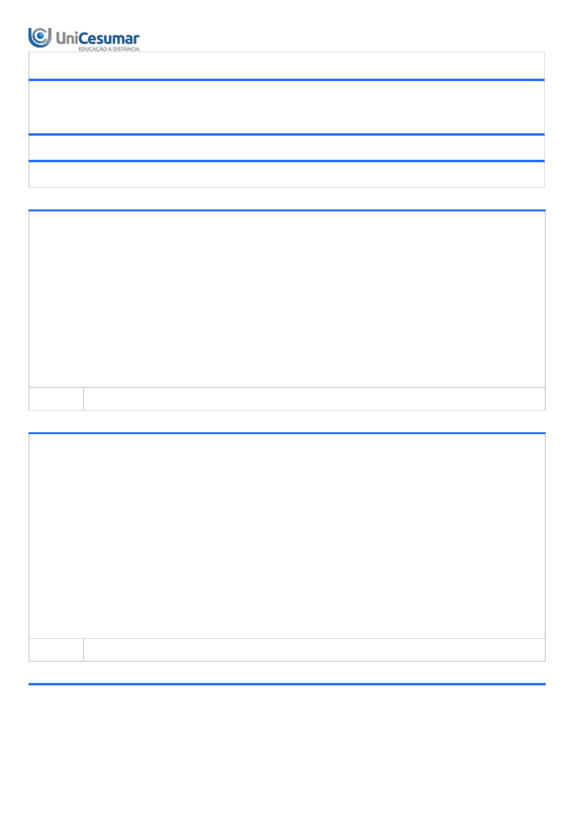 03/07/2019 Unicesumar - Ensino a Distância 1/4 Protocolo de Finalização Nº 000013493562 O aluno CARLOS MÁRIO SANTANA CAMPOS com RA 1825070-5 finalizou a atividade PROJETO DE ENSINO - A1 - O ensino da estatistica em sala de aula - 2019/52 em 03/07/2019 12:33:24 PROJETO DE ENSINO - A1 - O ensino da estatistica em sala de aula - 2019/52 Período:06/05/2019 19:00 a 05/07/2019 23:59 (Horário de Brasília) Status:ABERTO 1ª QUESTÃO Para trabalhar gráficos, o educador deve ter claro alguns conceitos de estatística, técnicas de atividades, bem como, identificar em que fase de desenvolvimento seu educando encontra-se. Acerca dessa afirmação, analise as afirmativas e assinale a alternativa correta. I – Para que a atividade seja bem sucedido, o educador deve apresentar a atividade de forma prática e atraente ao aluno. II – O professor deve dominar conhecimentos estatísticos, bem como a fase de desenvolvimento da criança, objetivando oferecer uma atividade condizente aos interesses da criança. III – Desde pequenas, as crianças devem ser estimuladas a coletar dados, transcrevê-los para que, assim, tornem-se leitoras tanto à escrita alfabética quanto numérica. IV – Quando o professor elabora uma atividade gráfica, a mesma pode ser aplicada a todas as idades, não sendo preciso compreender a fase de desenvolvimento de cada série escolar. RESPOSTA:Somente as afirmativas I, II e III estão corretas. 2ª QUESTÃO A capacidade de interpretar tabelas e gráficos é uma das formas utilizadas para formar futuros leitores da escrita numérica. Sobre esse assunto, leia as afirmações a seguir: I – É recomendável ao professor da educação infantil que trabalhe com leitura e interpretação de gráficos antes da produção escrita dos mesmos. II – Uma das formas utilizadas para trabalhar com leitura de gráficos na educação é a utilização de desenhos realizados ou não pelos alunos, juntamente com as perguntas previamente elaboradas pelo professor que, por sua vez, estimulem seu raciocínio. III – As crianças podem ser colocadas desde pequenas para ler e interpretar diferentes tipos gráficos e tabelas e para perceber a relação entre ambos. IV – A resolução de atividades estatísticas desenvolvem habilidades de questionar, levantar hipóteses, bem como procurar relação entre os dados, inerentes a qualquer tipo de texto. Assinale a alternativa correta. RESPOSTA:Todas as afirmativas estão corretas. 3ª QUESTÃO 03/07/2019 Unicesumar - Ensino a Distância 2/4 A organização dos dados em tabelas proporciona um meio eficaz de estudo do comportamento das características de interesse. Algumas vezes, entretanto, as informações contidas nas tabelas podem ser melhores visualizadas por meio de gráficos. Quanto à afirmação discorrida, é correto afirmar: I – Gráfico tem a função de apresentar, de forma objetiva, os resultados de uma pesquisa. Título, fonte e legenda são os elementos que compõem o gráfico. II – Em relação às tabelas, os gráficos fornecem menos detalhes, no entanto, permitem uma compreensão geral dos dados, evidenciando aspectos importantes da pesquisa. III – Existem diversos tipos de gráficos e sua utilização depende do perfil das informações e do gosto do pesquisador. A construção desses gráficos é simples em programas computacionais, existindo uma infinidade de tipos e formas. IV – Meios de comunicação apresentam diariamente gráficos para auxiliar na apresentação das informações. Esses gráficos também podem contribuir na visualização das informações contidas em relatórios ou documentos importantes. RESPOSTA:Somente as afirmativas I, III e IV estão corretas. 4ª QUESTÃO O gráfico é uma forma de apresentação dos dados estatísticos, cujo objetivo é proporcionar uma impressão mais rápida e viva do fenômeno em estudo. Sobre os gráficos assinale a afirmativa verdadeira. RESPOSTA:Um gráfico de barras ou colunas é aquele em que os retângulos que o compõem estão dispostos verticalmente. 5ª QUESTÃO O ensino Estatístico na Educação Básica tem o intuito de fazer com que o educando incorpore contextos do mundo real, sem, no entanto, perder de vista o conhecimento científico. O uso do pictórico e do lúdico são mecanismos representativos nesse processo. Está correto o que se afirma em: RESPOSTA: O uso do pictórico e do lúdico, em conexão com o trabalho de resolução de problemas, permite que os alunos e professores utilizem e valorizem diferentes estratégias na busca por uma solução, tais como: desenho, oralidade, dramatização, tentativa e erro. 6ª QUESTÃO Ao trabalhar com os gráficos, com tabelas ou mesmo com medidas representativas dentro da estatística, o educador deve ter em mente que o conteúdo por ele abordado deve ser também por ele conhecido. Com base no que foi descrito, analise as afirmativas que seguem: I – Todas as atividades desenvolvidas dentro do conteúdo da estatística devem ser bem sucedidas, sendo o educador o elo entre os conhecimentos que o aluno traz consigo e o conhecimento científico por ele ensinado. II – O professor deve dominar conhecimentos estatísticos, bem como a fase de desenvolvimento da criança, objetivando oferecer uma atividade condizente aos interesses da mesma. III – Mesmo antes de serem alfabetizadas, as crianças devem ser estimuladas a coletar dados e transcrevê- los para que, assim, tornem-se leitoras tanto da escrita alfabética quanto numérica. IV – As atividades gráficas podem ser aplicadas a todas as idades, não sendo preciso compreender a fase de desenvolvimento de cada série escolar e o aluno deve compreender a atividade e assim desenvolvê-la. Leia as afirmações e assinale a alternativa correta. RESPOSTA:Somente as afirmativas I, II e III estão corretas. 7ª QUESTÃO 03/07/2019 Unicesumar - Ensino a Distância 3/4 Em relação à literatura associada à construção do conhecimento estatístico, é necessár