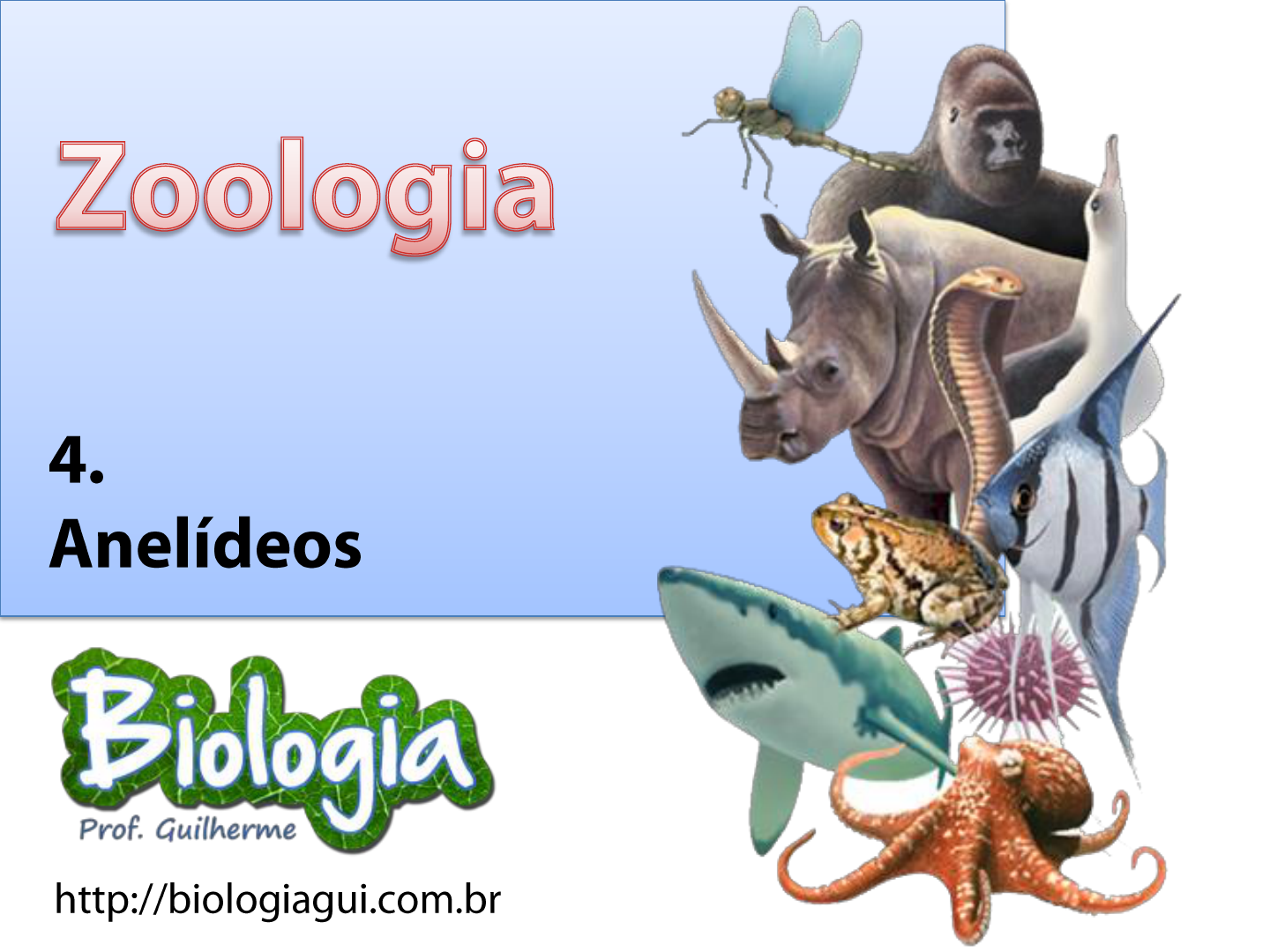 Anelídeos Anelídeos representam uma grande transição dentro dos Metazoa. O surgimento de um celoma possibilitou a segmentação corporal e um melhor funcionamento fisiológico do animal como um todo. ᔥ Google Imagens Representantes / Classificação Classe Polychaeta (muitas cerdas) Aprox. 10400 espécies aquáticas, predominantemente marinhos. Rastejadores, cavadores ou tubícolas. Ex. Nereis sp. Classe Clitellata → Oligochaeta (poucas cerdas) Aprox. 3000 espécies (terrestres e aquáticos). O mais representativo: Minhoca (Lumbricus sp.) Classe Clitellata → Hirudinea (sem cerdas) Aprox. 500 espécies (aquáticos ou terrestres) Carnívoros ou (maioria) ectoparasitas. Ex. Sanguessuga medicinal (Hirudo medicinalis) Estrutura corporal O corpo dos anelídeos apresenta segmentos bastante aparentes, cada segmento é razoavelmente individualizado formando cavidades viscerais também segmentadas (esquizoceloma). Se observam cerdas na maioria dos respresentantes e também o clitelo, com função reprodutiva. O esquizoceloma se caracteriza por ser formado a partir de aberturas na mesoderme que ocorrem próximas ao blastóporo. ᔥ Amabis & Martho Fisiologia Moela Papo Intestino com tiflossole Sistema Digestório: Completo. O esôfago apresenta papo (com enzimas digestivas) e moela (mastigação). O intestino possui uma especialização para melhor absorção, a tiflossole. Sistema Respiratório: Cutâneo em anelídeos terrestres. Cutâneo e Branquial em aquáticos. ᔥ Google Imagens Sistema Circulatório: FECHADO. O sangue rico em hemoglobina (Fe) circula por um vaso dorsal, um ventral e suas ramificações. Formam-se cinco (ou 4) pares de corações na região anterior do corpo. Sem hemácias. Sistema Excretor: METANEFRÍDIOS (ou simplesmente nefrídios). Dois pares de nefrídios por segmento com nefróstoma (dreno) e nefridióporo (excretor). Sistema Nervoso: Um gânglio cerebroide, um par de gânglios por segmento Dois cordões nervosos ventrais. A maioria: Aquáticos excretam AMÔNIA. Terrestres excretam UREIA. ᔥ Amabis & Martho Reprodução Poliquetos: DIOICOS; Fecundação externa; Desenvolvimento indireto (larva trocófora) Oligoquetos e Hirudíneos: MONOICOS; Fecundação externa; Desenvolvimento direto Clitelo forma casulo Larva trocófora ᔥ Amabis & Martho ᔥ Google Imagens Extra Sanguessugas e a medicina: Até ao século XIX, as sanguessugas eram utilizadas na medicina tradicional chinesa, na medicina oriental e mesmo na medicina ocidental (nas sangrias). Hoje em dia ainda há necessidade de utilizar anticoagulantes na medicina convencional, ainda que sejam artificiais. Recentemente, as sanguessugas voltaram a ser utilizadas em medicina em casos de grandes dificuldades circulatórias em membros, visto que a sua ação sugadora força o sangue a circular, ajudando a manter vivas as células. (Wikipedia) A saliva da sanguessuga tem efeito anticoagulante (pela proteína hirudina) e anestésico. ᔥ Science Photo Library Ao ingerir o substrato, a minhoca o digere, promovendo a degradação de uma série de substâncias como a celulose e outras biomoléculas existentes na matéria orgânica ingerida, dessa forma o esterco das minhocas detritívoras é uma forma mais decomposta de matéria organica, o que facilita a sua degradação por microorganismos do solo e facilita a liberação de nutrientes. Minhocas, aeração do solo e húmus: Pela sua forma de vida, as minhocas contribuem com a aeração e drenagem do solo com a formação de galerias. Também são formadoras do húmus, enriquecendo o solo. HÚMUS = Fezes + Amônia Já é bastante utilizado como suplemento alimentar para animais (e até para humanos) a farinha de minhoca vermelha californiana. ᔥ Google Imagens Eu sou a Minhoca! (Paródia por Prof. Guilherme Goulart) Eu sou a minhoca que parou em sua horta Eu sou a minhoca que parou pra lhe ajudar Eu sou a minhoca do corpo segmentado Eu sou um bicho totalmente celomado Minha excreção É por meio dos nefrídeos Sou um bicho do grupo dos anelídeos Eu sou a minhoca do corpo hermafrodita pois tenho um tico e também uma periquita Eu realizo a respiração cutânea E minhas trocas gasosas são instantâneas E não tem porque você me exterminar Porque eu estou aqui pra poder te ajudar e com o meu cocô o húmus vou formaaaar! http://biologiagui.com.br