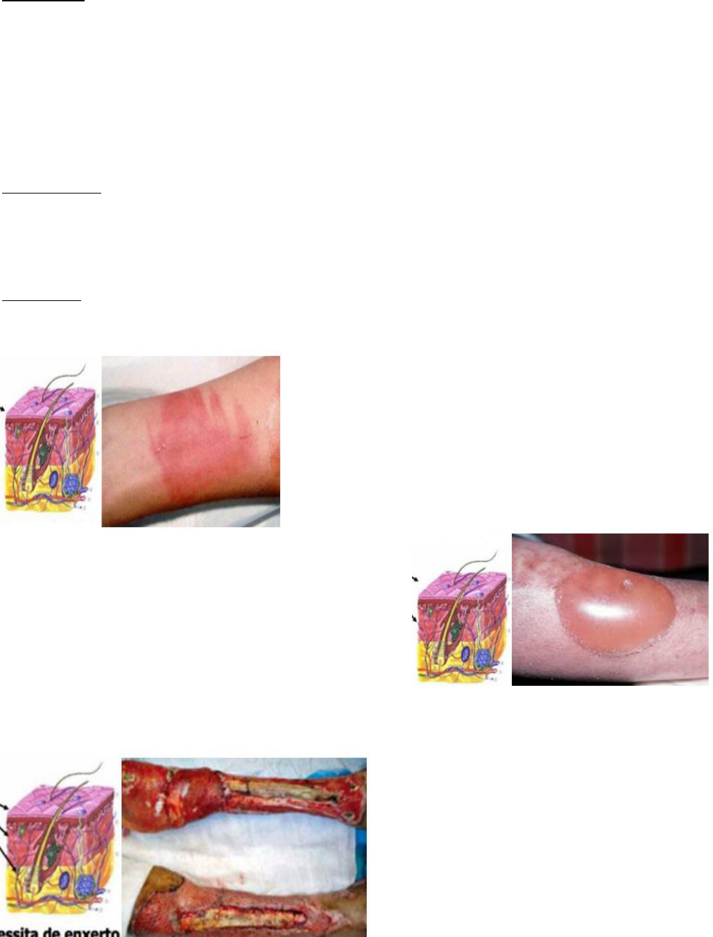 GABRIELA RIBAS – MÓDULO IV: SEMANA 6 AÇÃO TÉRMICA, TERMOLOGIA E QUEIMADURAS TERMONOSE Ação difusa do calor sobre o corpo humano. Ela pode ser classificada em insolação onde a fonte produtora do calor é o sol e a intermação onde tem-se uma fonte artificial de calor (ambientes confinados) podendo sofrer síncopes e levar à morte. Dificilmente essas duas lesões são homicidas, quase sempre são acidentais. Quando a pessoa falece deve-se fazer a perícia, onde observa-se: uma secreção espumosa e sanguinolenta nas vias aéreas, analisa a precocidade da rigidez cadavérica (começando nos músculos masseterinos até poplíteo – fica rígido por 6-8h, depois de 24h começa a flacidez), putrefação antecipada e congestão e hemorragia das vísceras. QUEIMADURAS Ação direta do calor, através de contato com chama, sólido, líquido ou gás aquecido. Pode ocorrer por ação indireta do calor através de irradiação. Possui lesões características próprias: marca de Jellinek (eletricidade–Raios, poste de luz); radiodermite (RX); vitriolagem (cáusticos – soda caustica para desfazer o corpo). Classificação A lesão pode ser classificada quanto a sua profundidade, depende do grau da lesão, se atinge a epiderme, derme e hipoderme: 1º grau: não sangra, geralmente seca. Só acomete a epiderme. Tem cor rosada e é toda inervada e por isso dói. O exemplo mais comum é a queimadura de sol. O aspecto macroscópico é a hiperemia (vermelhidão) dolorosa. No cadáver não se observa hiperemia. Agente mais comum: sol. 2º grau: além de atingir a epiderme, atinge a derme. Tem a superficial que atinge a epiderme e as papilas dérmicas e a segundo grau profunda que atinge a derme reticular chegando quase na hipoderme. É uma lesão úmida, com presença de flictenas (bolhas). Tem uma coloração rosa e hiperemiada ao redor da bolha. É dolorosa, cursa-se espontaneamente mais lenta que a do 1º grau. Com possibilidade de gerar cicatriz. A bolha não deve ser retirada porque ela vai reeptelizar e depois se destacar. Agente mais comum: líquidos aquecidos. 3º grau: atinge a epiderme, derme, hipoderme e pode atingir até o plano muscular e ósseo. Gera pouca ou nenhuma dor, úmida, possui coloração esbranquiçada, amarela ou marrom e não cicatriza espontaneamente precisando de enxerto. Alguns classificam em 4º grau quando observam o osso, chamada de carbonização. Agente mais comum: contato direto com eletricidade ou chama. Regra dos nove Quantos % cada parte do corpo corresponde. EX: a cabeça equivale a 4,5% na frente e 4,5% atrás; dessa forma, ao queimar o rosto tem 9%. Os braços tem 4,5% na frente e 4,5% atrás; dessa forma, ao queimar cada braço tem 9%, sendo 18% se queimar ambos. Já o tronco, equivale a 18% cada face, sendo ambos 36%|e maior parte. E por fim, os membros inferiores sendo 9% cada face, totalizando 36% se queimar ambas as partes dos MMII. Perícia no cadáver Ela serve principalmente para tirar dúvidas acerca da morte A perícia no cadáver queimado deve avaliar se ele respirou ou não durante o incêndio, ou seja, se morreu no incêndio ou decorrente da queimadura. Deve-se analisar o nível de monóxido de carbono no sangue (se estiver alto morreu depois) e pesquisa de fuligem nas vias aeres (se houver fuligem ele respirou, morreu no incêndio). LESÕES POR ELETRICIDADE: Podem ser naturais ou artificiais. Natural Lesões por eletricidade natural são as ações dos raios cósmicos. Chama-se fulminação quando existe ação letal de um raio sobre o homem e fulguração, que é quando a pessoa não morre, mas tem como consequência algumas lesões corporais. Geram lesões externas que possuem aspecto arboriforme (sinal de Lichtenberg) devido a fenômenos vasomotores, que podem desaparecer (no vivo). As lesões internas são queimaduras, hemorragias musculares, ruptura de vasos grossos e do coração, fraturas, congestão e hemorragias dos globos oculares, congestão polivisceral, fluidez do sangue, equimoses subpleurais e subpericárdicas. Artificial Lesões por eletricidade artificial são acidentes mais comuns vistos na prática médica. A eletroplessão é qualquer efeito proporcionado pela eletricidade artificial com ou sem êxito letal. As lesões superficiais alteram-se de acordo com a corrente de alta ou de baixa tensão. A lesão mais simples denomina-se marca elétrica de Jellinek (de entrada) que tem forma circular, elíptica ou estrelada, de consistência endurecida, bordas elevadas, leito deprimido, tonalidade branco-amarelada, fixa, indolor e asséptica, podendo apresentar a forma do condutor. Se for uma voltagem muito grande pode haver uma queimadura no local. A eletricidade de alta tensão provoca lesões mistas (marca elétrica e queimadura elétrica). A marca elétrica representa exclusivamente a porta de entrada da corrente elétrica. A queimadura elétrica é resultante do calor de uma corrente, tendo a forma de escara pardacenta ou escura, apergaminhada, bordas nítidas, sem área de congestão nem flictenas. A metalização elétrica é o destacamento da pele. A queimadura elétrica (cutânea, óssea, muscular e visceral) depende do efeito da lei de Joule: a passagem de uma corrente elétrica através de um condutor, determina calor. Outras lesões externas: Couro cabeludo: lesões semelhantes às da pele, porém podem se destacar em grandes retalhos. Pêlos: assumem aspecto helicoidal, com ponta queimada (aspecto crestado). Além disso, essa eletricidade pode ser de alta tensão, e por isso, vai causar lesões mistas que podem dar a marca elétrica e a queimadura elétrica. Marca elétrica é a porta de entrada da corrente elétrica. Já a queimadura elétrica é a resultante do calor de uma corrente, tendo a forma de uma escara pardacenta ou escura, apergaminhada, bordas nítidas, sem área de congestão e flictenas. Metalização: é o destacamento da pele e fundo impregnado por partículas de fusão e vaporização dos conduto