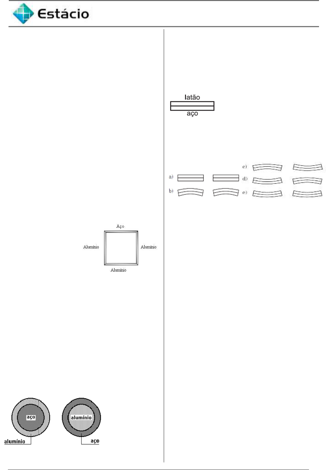 Estácio –Física Teórica e Experimental II 1 DISCIPLINA: FÍSICA TEÓRICA E EXPERIMENTAL II PROFESSOR: MARCELO MARTINS LISTA 5 – CAP 17 1) Você coloca uma garrafa de refrigerante na geladeira e a deixa lá até que a temperatura tenha baixado 10K. Qual é a variação de temperatura (a) em graus Fahrenheit e (b) em graus Celsius? 2) Você está doente e verifica que sua temperatura é de 40,2°C. a) Qual é sua temperatura em °F? Você deve ficar preocupado? b) a página de um jornal afirma que a temperatura durante a parte da manhã deve ficar em torno de 12°C. Qual é esta temperatura em graus Fahrenheit? 3) O nitrogênio líquido é um material relativamente barato usado frequentemente para executar divertidas demonstrações de física em baixas temperaturas. O gás nitrogênio se liquefaz a uma temperatura de -364°F. converta essa temperatura em a) °C b) K 4) O edifício mais alto do mundo, segundo certos padrões arquitetônicos, é o Taipei 101, em Taiwan, com 509,32m de altura. Suponha que essa altura tenha sido medida em um dia fresco de primavera, quando a temperatura era 15,5°C. Você pode usar o edifício como uma espécie de termômetro gigante em um dia quente de verão medindo cuidadosamente sua altura. Suponha que você faça isso e descubra que o Taipei 101 está 0,144m mais alto do que sua altura oficial. Qual é a temperatura, supondo que o edifício esteja em equilíbrio térmico com o ar e que toda a sua estrutura seja feita de aço? 5) Um quadrado foi montado com três hastes de alumínio (αAl = 24 x 10-6 ºC -1) e uma haste de aço (αAço = 12 x 10-6 ºC-1), todas inicialmente à mesma temperatura. O sistema é, então, submetido a um processo de aquecimento, de forma que a variação de temperatura é a mesma em todas as hastes. Podemos afirmar que, ao final do processo de aquecimento. A figura formada pelas hastes estará mais próxima de um: A) quadrado B) Retângulo C) Losango D) Trapézio retângulo E) Trapézios isósceles 6) O coeficiente de dilatação térmica do alumínio é, aproximadamente, o dobro do coeficiente de dilatação térmica do aço. A figura mostra duas peças onde um anel feito de um desses metais envolve um disco feito do outro metal. À temperatura do ambiente, os discos são presos aos anéis. Se as duas peças forem aquecidas uniformemente, é correto afirmar: a) apenas o disco de aço se soltará do anel de alumínio. b) apenas o disco de alumínio se soltará do anel de aço. c) os discos se soltarão dos respectivos anéis. d) os discos permanecerão presos sem soltar por maior que seja o aumento de temperatura. e) os metais entrarão em fusão antes de se soltarem. 7) Duas lâminas metálicas, a primeira de latão e a segunda de aço, de mesmo comprimento à temperatura ambiente, são soldadas rigidamente uma à outra, formando uma lâmina bimetálica, conforme a figura a seguir. O coeficiente de dilatação térmica linear do latão é maior que o do aço. A lâmina bimetálica é aquecida a uma temperatura acima da ambiente e depois resfriada até uma temperatura abaixo da ambiente. A figura que melhor representa as formas assumidas pela lâmina bimetálica, quando aquecida (forma à esquerda) e quando resfriada (forma à direita), é 8) Um pote de vidro possui uma tampa metálica roscada pelo lado externo. Porque, quando se tem dificuldade para retirar a tampa, mergulha-se o pote em água quente? 9) No estudo dos materiais utilizados para a restauração de dentes, os cientistas pesquisam entre outras características o coeficiente de dilatação térmica. Se utilizarmos um material de coeficiente de dilatação térmica inadequado, poderemos provocar sérias lesões ao dente, como uma trinca ou até mesmo sua quebra. Neste caso, para que a restauração seja considerada ideal, o coeficiente de dilatação volumétrica do material de restauração deverá ser: a) igual ao coeficiente de dilatação volumétrica do dente. b) maior que o coeficiente de dilatação volumétrica do dente, se o paciente se alimenta predominantemente com alimentos muito frios. c) menor que o coeficiente de dilatação volumétrica do dente, se o paciente se alimenta predominantemente com alimentos muito frios. d) maior que o coeficiente de dilatação volumétrica do dente, se o paciente se alimenta predominantemente com alimentos muito quentes. e) menor que o coeficiente de dilatação volumétrica do dente, se o paciente se alimenta predominantemente com alimentos muito quentes. 10) Um vaso de alumínio a 20°C possui volume de 500 cm3. Totalmente cheio de mercúrio, é aquecido a 160°C. (Dados: : αAl = 22 x 10-6 ºC-1, Hg = 1,8 x 10-4 ºC-1) Determine: a) A variação real do volume do líquido; b) O volume do mercúrio que transborda. 11) Quando introduzimos um termômetro de mercúrio em um recipiente contendo água a uma temperatura significativamente superior à temperatura inicial do termômetro, percebemos, de Estácio –Física Teórica e Experimental II 2 imediato, que ocorre uma diminuição da coluna de mercúrio antes de seu esperado aumento. Explique este fato. 12) Um agrimensor usa uma fita de aço de 50000mm de comprimento a uma temperatura de 20°C. Qual é o comprimento da fita em um dia de verão de 35°C? 13) Um frasco vidro com volume igual a 200cm3 a 20°C está cheio de mercúrio até a borda. Qual é a quantidade de mercúrio que transborda quando a temperatura do sistema se eleva até 100°C? O coeficiente de dilatação linear do vidro é igual a 0,40x10-5K-1. 14) A dilatação anômala da água é fundamental para a preservação da vida nas regiões de clima frio, em que rios e lagos têm as águas superficiais congeladas durante o inverno. A camada superficial de gelo, isolante térmico, impede o congelamento das águas mais profundas, permitindo a sobrevivência da fauna e flora. Caso a água tivesse comportamento anômalo, o congelamento ocorreria por inteiro, inviabilizando a continuidade de vida nessa