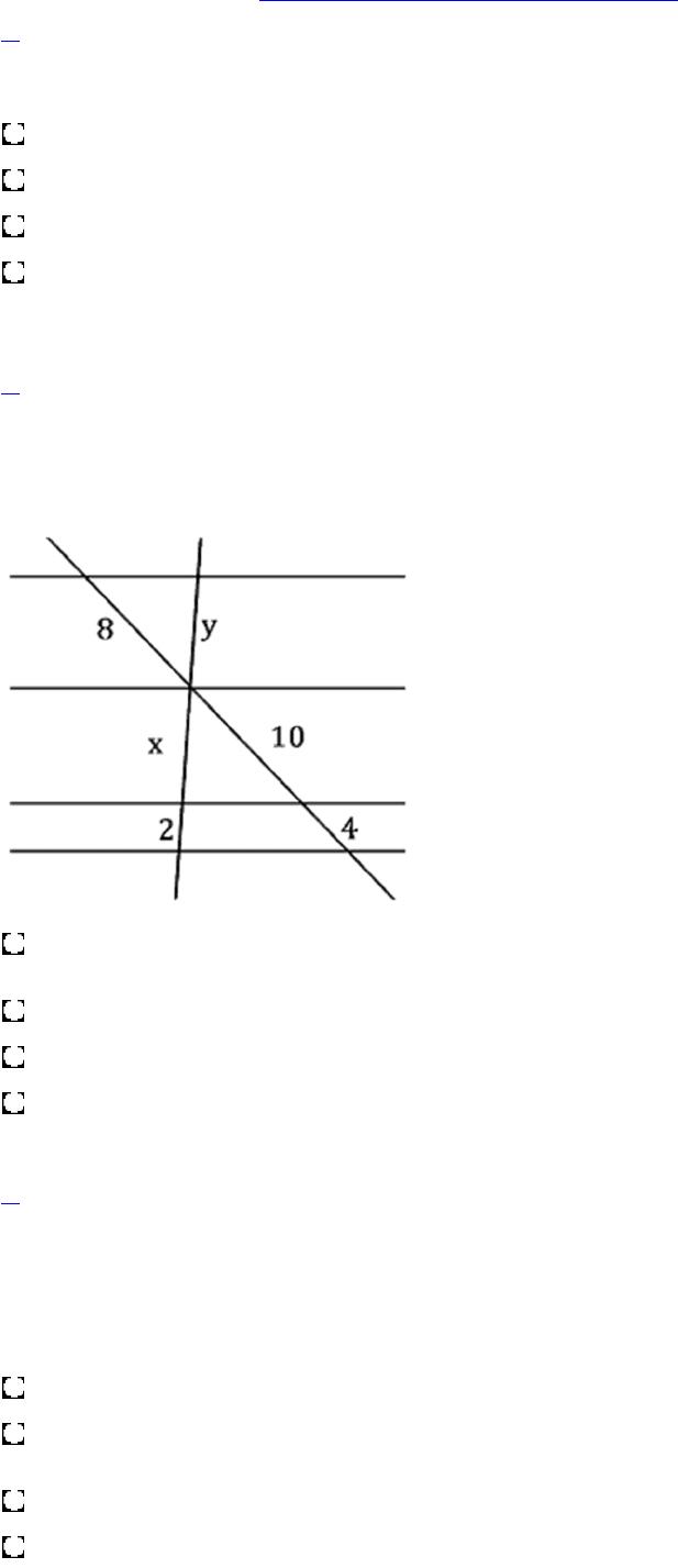 Disciplina: Geometria (MAT50) Avaliação: Avaliação I - Individual FLEX ( Cod.:455490) ( peso.:1,50) Prova Objetiva: 12140882 Anexos: FORMULÁRIO: GEOMETRIA - 2019 1. São vários os conceitos sobre ângulos. Um destes diz respeito a ângulos chamados de complementares e suplementares. Com base neste conceito e sua definição, qual é o ângulo que possui medida de 1/3 do seu suplemento mais 40 graus? a) 85 graus. b) 75 graus. c) 80 graus. d) 120 graus. 2. Um dos grandes nomes da matemática grega é o de Tales de Mileto (aproximadamente 623 a.C. a 547 a.C.). Sua contribuição na geometria é importante e relembrada até os dias de hoje, em que estudamos seu teorema mais conhecido "O Teorema de Tales", que estabelece a proporcionalidade apresentada por retas transversais que cortam um feixe de retas paralelas, sendo os segmentos delimitados nas transversais proporcionais. Com relação à ilustração a seguir, assinale a alternativa CORRETA que apresenta o valor de x e y, respectivamente: a) 20 e 16. b) 5 e 4. c) 20 e 4. d) 5 e 16. 3. O grau surge com os babilônios cerca de 4000 a.C. por influência do movimento solar. Naquela época, acreditava-se que, num período de 360 dias, o Sol realizava um movimento completo. Assim, tomaram a circunferência e a dividiram em 360 trechos, ou melhor, 360 graus. Hoje em dia, damos nomes a alguns ângulos que possuem medidas especiais e pares de ângulos que, somados, resultam em uma destas medidas especiais como complementares. A medida de um ângulo é igual ao quádruplo da medida do seu complemento. Qual é a medida desse ângulo? a) Esse ângulo mede 72º. b) Esse ângulo mede 120º. c) Esse ângulo mede 60º. d) Esse ângulo mede 36º. 4. Além do complementar e suplementar de um ângulo, existe o replementar de ângulo, que corresponde ao ângulo que somado ao primeiro resulta em 360°. Com base nas definições de complementar e suplementar, analise as afirmativas a seguir: I- A medida de um ângulo é igual à metade da medida de seu complemento menos a sua metade. Logo, este ângulo corresponde a 22,5 graus. II- Certo ângulo tem como medida 1/3 de seu replemento mais 40 graus. Portanto, este ângulo mede 75 graus. III- Um ângulo é igual a 3 vezes o seu complemento menos 23 graus. Este ângulo é o de 60 graus e 45 minutos. IV- O menor ângulo marcado pelo relógio ás 5 horas é 150º. Assinale a alternativa CORRETA: a) As afirmativas II e III estão corretas. b) As afirmativas I e IV estão corretas. c) As afirmativas II e IV estão corretas. d) As afirmativas I e III estão corretas. 5. As medidas de comprimento, área, volume, massa, tempo, entre outras, possuem símbolos próprios para facilitar a escrita e a leitura. O ml é o símbolo usado para abreviação de: a) Milha. b) Mililitro. c) Metro. d) Milímetro. 6. Com o desenvolvimento dos axiomas, surgem os postulados que, se provados verdadeiros, são considerados teoremas. "Por dois pontos distintos passa apenas uma reta". Este é o primeiro postulado do livro de Euclides, "Os Elementos". Considere os vértices do cubo a seguir. Qual a posição relativa entre a reta que passa pelos vértices E e F, e a reta que passa pelos vértices D e F? a) Reversas. b) Paralelas. c) Concorrentes. d) Coincidentes. 7. Na matemática existem os axiomas, que são verdades que não necessitam ser provadas. Com relação aos axiomas, temos os que dizem respeito às retas e idealizam a classificação de segmentos de retas. A ilustração a seguir apresenta um prisma trapezoidal com vários segmentos de retas. Assinale a alternativa CORRETA que apresenta somente segmentos que são reversos ou consecutivos ao segmento AB: a) CD, EH, AD e DE. b) BG, EF, AD e CH. c) AF, CH, BC e FG. d) DE, AD, BG e CD. 8. Um quadrilátero é chamado reverso se, e somente se, não existe um plano que contenha seus vértices. Na ilustração a seguir temos um destes quadriláteros com os vértices A, B e C sobre o plano alfa e D não pertencente a este plano. Com base em uma ilustração como a apresentada, classifique V para as sentenças verdadeiras e F para as falsas: ( ) As retas definidas por AB e AD podem ser perpendiculares. ( ) As retas definidas por BC e AD podem ser paralelas. ( ) É possível determinar no máximo dois planos com estes pontos. ( ) Seja D' a projeção ortogonal do ponto D no plano alfa. É possível que ABCD' proporcione um triângulo. Assinale a alternativa que apresenta a sequência CORRETA: a) V - F - F - V. b) F - F - V - V. c) F - V - V - F. d) V - V - F - F. 9. Graus, o Radiano e o Grados são unidades angulares que possivelmente você já ouviu falar. No caso dos dois primeiros, estes aparecem com mais frequência em problemas matemáticos. No caso isolado do grau, este apresenta como submúltiplos os minutos e o segundos. Especificamente sobre este conceito, assinale a alternativa CORRETA que apresenta um valor correspondente à 180°, em graus, minutos e segundos: a) 178 graus, 60 minutos e 60 segundos. b) 178 graus, 199 minutos e 100 segundos. c) 178 graus, 119 minutos e 60 segundos. d) 179 graus, 60 minutos e 60 segundos. 10. Quando duas retas concorrentes formam entre si ângulos retos, dizemos que formam um tipo especial de concorrência. Como elas são chamadas? a) Paralelas. b) Perpendiculares. c) Reversas. d) Concorrentes.