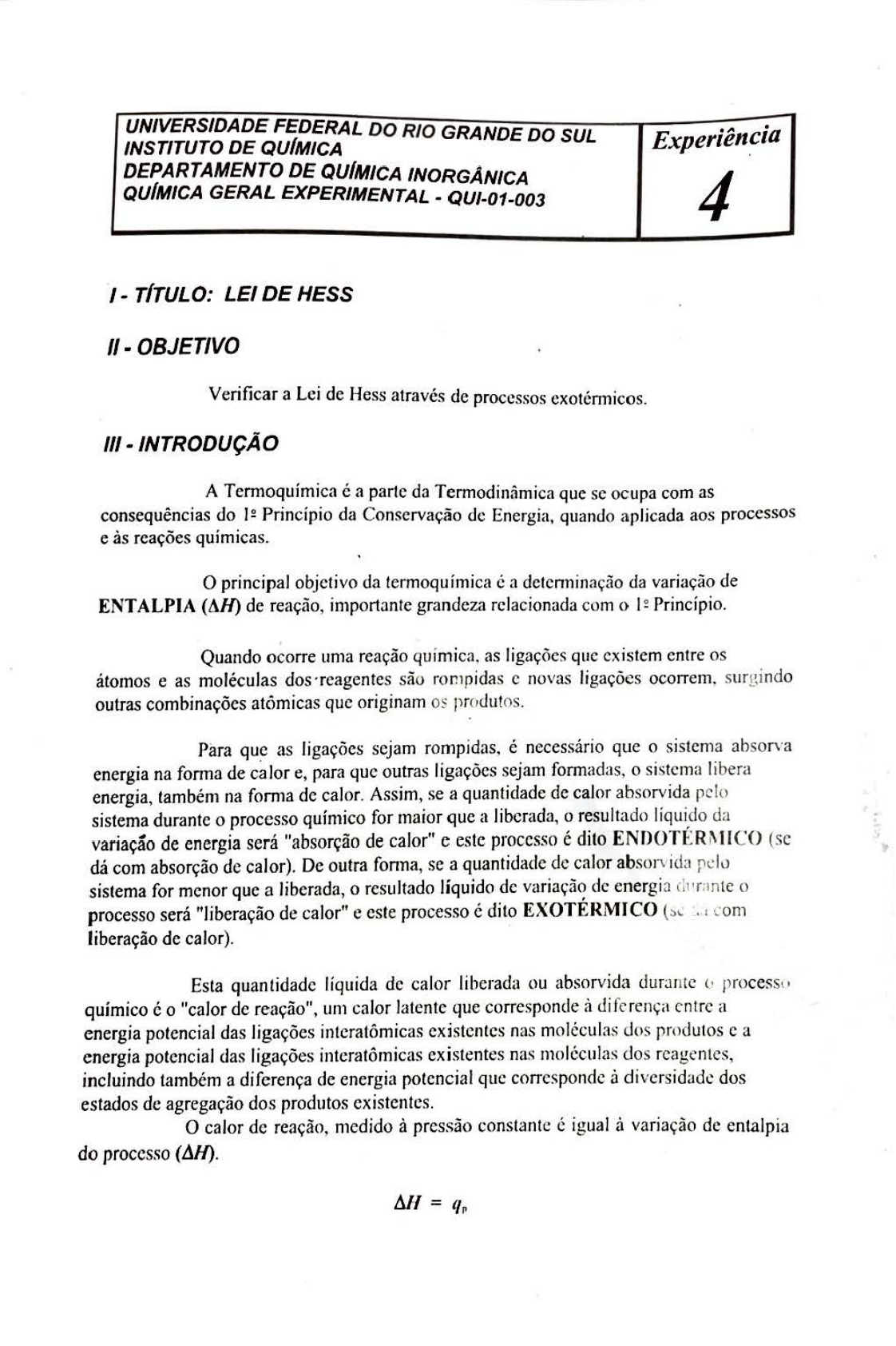 Nesta experiência, você vai verificar a validade da Lei de Hess através de