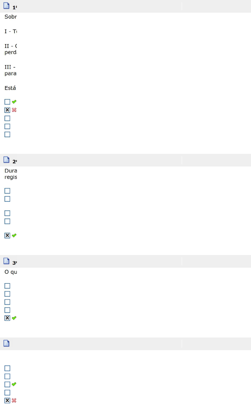 1a Questão (Ref.: 201904447289) Pontos: 0,0 / 0,4 Sobre os fundamentos do gerenciamento de riscos foram feitas as seguintes afirmações: I - Todos os projetos têm algum risco, ou não seriam projetos. II - O risco pode ou não ocorrer e, se ele torna-se realidade, consequências indesejadas e perdas poderão ocorrer. III - um evento de risco, é uma ocorrência discreta ou distinta que pode afetar o projeto para melhor ou pior. Está (ão) correta (s): I, II e III somente I e III somente II somente I somente III 2a Questão (Ref.: 201905025777) Pontos: 0,4 / 0,4 Durante a execução do projeto, um membro da equipe identifica um risco que não consta no registro dos riscos. O que você deve fazer? Imediatamente elaborar resposta para o risco. Obter informações adicionais sobre como o membro da equipe identificou o risco, pois você já fez uma análise detalhada e não identificou este risco. Informar o cliente sobre o risco. Desconsiderar o risco, pois os riscos foram identificados durante o planejamento do projeto. Analisar o risco. 3a Questão (Ref.: 201905365750) Pontos: 0,4 / 0,4 O que é uma probabilidade de evento do risco? O valor utilizado e mitigação e deflexão de riscos. A probabilidade do risco não ocorrer neste momento. Uma estimativa da probabilidade de um evento incontrolável ocorrer. Descreve quando o risco não vai ocorrer. Uma estimativa de probabilidade de um dado evento de risco ocorrer. 4a Questão (Ref.: 201904941805) Pontos: 0,0 / 0,4 De acordo com o PMI (PMBOK), o processo de análise qualitativa de risco tem por objetivo: Tratar os riscos que não podem ser quantificados. Identificar novos riscos e assegurar a execução dos planos. Priorizar o tratamento dos riscos identificados. Eliminar riscos qualitativamente. Analisar os riscos a partir de técnicas numéricas. 5a Questão (Ref.: 201904930544) Pontos: 0,4 / 0,4 Segundo o PMBOK,: o risco de um projeto cai ao longo de sua execução. a incerteza é constante ao longo da execução do projeto. o custo de mudanças cai ao longo de todo o projeto. o custo de mudanças é constante ao longo de todo o projeto. o risco de um projeto aumenta exponencialmente ao longo de sua execução.