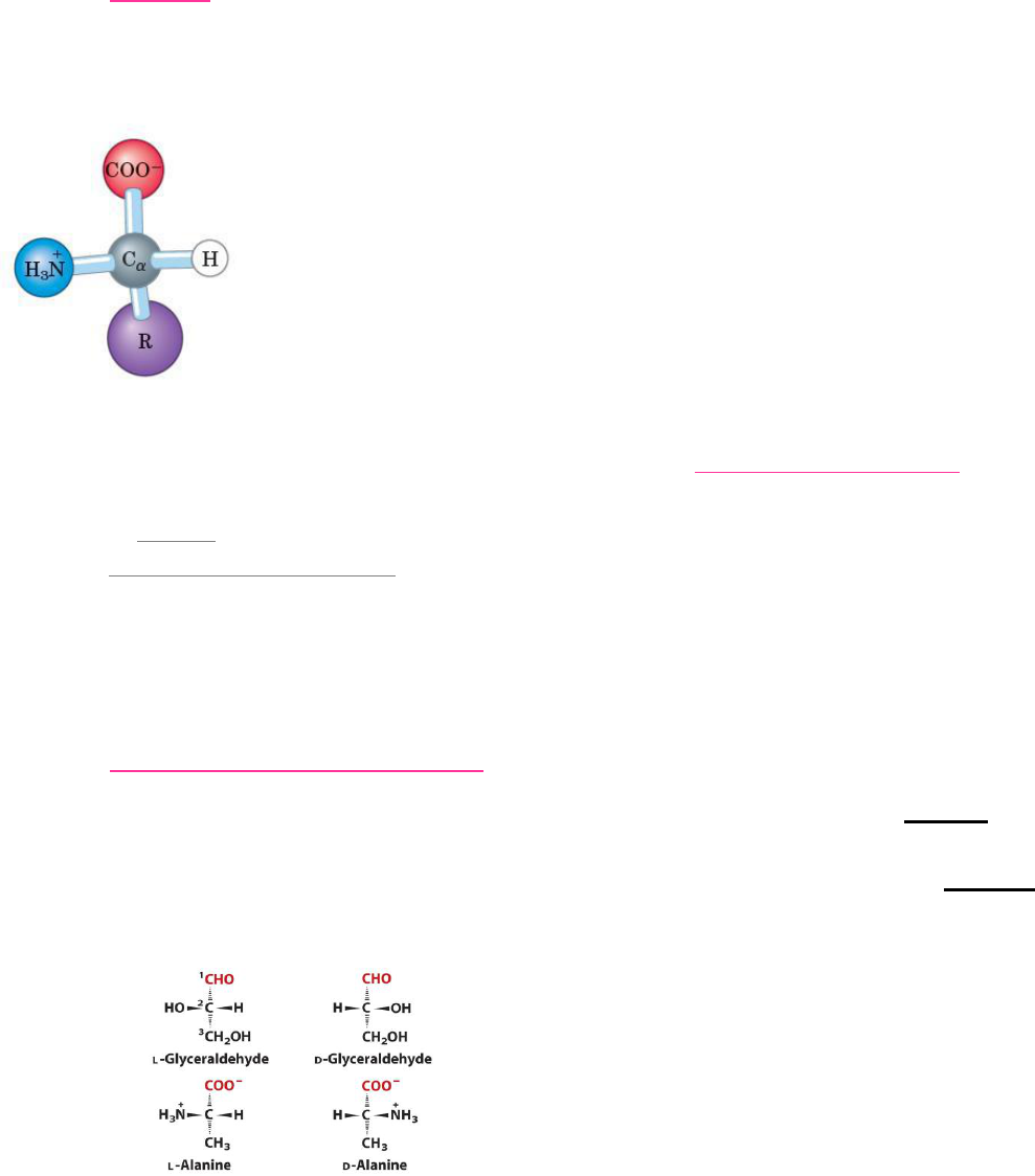 Aminoácidos Ana beatriz Lopes - 2019.2 Características Ligações covalentes entre os aminoácidos Tradução: União, através da leitura de uma fita de mRNA, de aminoácidos (ligação peptídica) para formação das proteínas. É uma polimerização mediada por enzimas. Cα = C quiral 20 aminoácidos comuns nas proteínas, que se diferem pelo radical. A glicina é o mais simples, pois o radical é um hidrogênio e é o único com carbono simétrico. Todos os demais possuem carbono quiral e isometria óptica.. Relação estérica dos estereoisômeros A maioria dos aminoácidos humanos são levógenos (L), enquanto que os destrógenos (D) são comuns em bactérias. Eles são classificados em L ou D em relação à classificação absoluta do gliceraldeido (açúcar de três carbonos), em que a carboxila do aminoácido ocupa a mesma posição em relação ao carbono quiral que o aldeído no gliceraldeido, assim como o H. Classificação dos aminoácidos Em pH 7, segundo seus radicais, de acordo com seus tamanhos, estrutura, polaridade e reatividade química. De acordo com os radicais - É importante para a conformação da proteína e sua solubilidade, em razão de suas interações com o meio. Ex: as proteínas da membrana celular precisam ser apolares por encontrar-se num meio apolar. Apolares com radical alifático Cadeia aberta, como glicina (por causa de sua pequena estrutura, geralmente associada a flexibilidade) e prolina (sua cadeia fechada faz com que ela geralmente esteja associada a rigidez). Aromáticos Seus aneis aromáticos os dão a capacidade de absorver a luz ultravioleta (abaixo de 240 nm). Triptofano e Tirosina são os mais polares, apesar de sua cadeira apolar. Polares com radical não carregado cisteina, por causa de seu grupamento sulfidrina (SH), quando próxima a outro aminoácido com grupamento sulfidrinaa, sofre oxidação (perde o H+) e forma pontes dissulfeto. Quanto mais pontes dissulfeto, mais rígida é a proteína. Duas cisteinas unidas por pontes dissulfeto formam uma cistina. Ex: queratina. Com radical carregado positivamente A histidina, quando desprotonada, não esta carregada (carga nula). Mas como ela protona em pH 6, é considerada positivamente carregada. É importante no tamponamento sanguíneo. Com radical carregado negativamente Aspartato e glutamato possuem carboxila sem H+ Aminoácidos essenciais: Arginina Histidina Isoleucina Lisina Metionina Fenilalanina Treonina Triptofano Valina Aminoácidos modificados São aminoácidos que sofrem reações de acordo com sua necessidade. Hidroxilação da prolina. Hidroxiprolina: presente no colágeno. Aminoácidos não encontrados em proteínas mas presentes vias metabólicas Ornitina e citrulina – ciclo da ureia Ionização de aminoácidos O grupamento amina pode atuar como acido doando próton e a carbonila (quando em formato –COO-) como base recebendo próton. Zwitteríon – é o estágio do aminoácido com carga positiva e negativa na mesma estrutura, mas com carga total nula. Pode atuar tanto como base ou acido, dependendo da constante de desprotonação (pH) do meio. Ordem de desprotonação A carboxila é o primeiro grupamento a perder H+. Só quando não houver mais hidroxilas para serem desprotonadas e o pH continuar aumentando é que a amina perde seu H+. Em pH baixos, o aminoácido encontra-se totalmente protonado. Já em pH básico, os grupamentos tendem a perder H+. pKa é a medida da tendência de um grupo de oferecer um próton. Acima desse valor, o aminoácido perde próton e abaixo ganha. Titulação de um aminoácido Zona de tamponamento: é a região de uma unidade de pH a mais e uma a menos do valor do pKa, nela, o pH não altera muito apesar da alteração na concentração de H+. Ponto isoelétrico (pI): é o pH em que a carga líquida (soma das cargas negativas e positivas) é igual a zero. É medido pela média aritmética entre o pKa imediatamente posterior à forma neutra e o pKa anterior à desprotonação da forma neutra. Abaixo do pI o aminoácido possui carga positiva e, acima do pI, possui carga negativa.. Tabela de pKa dos aminoácidos: