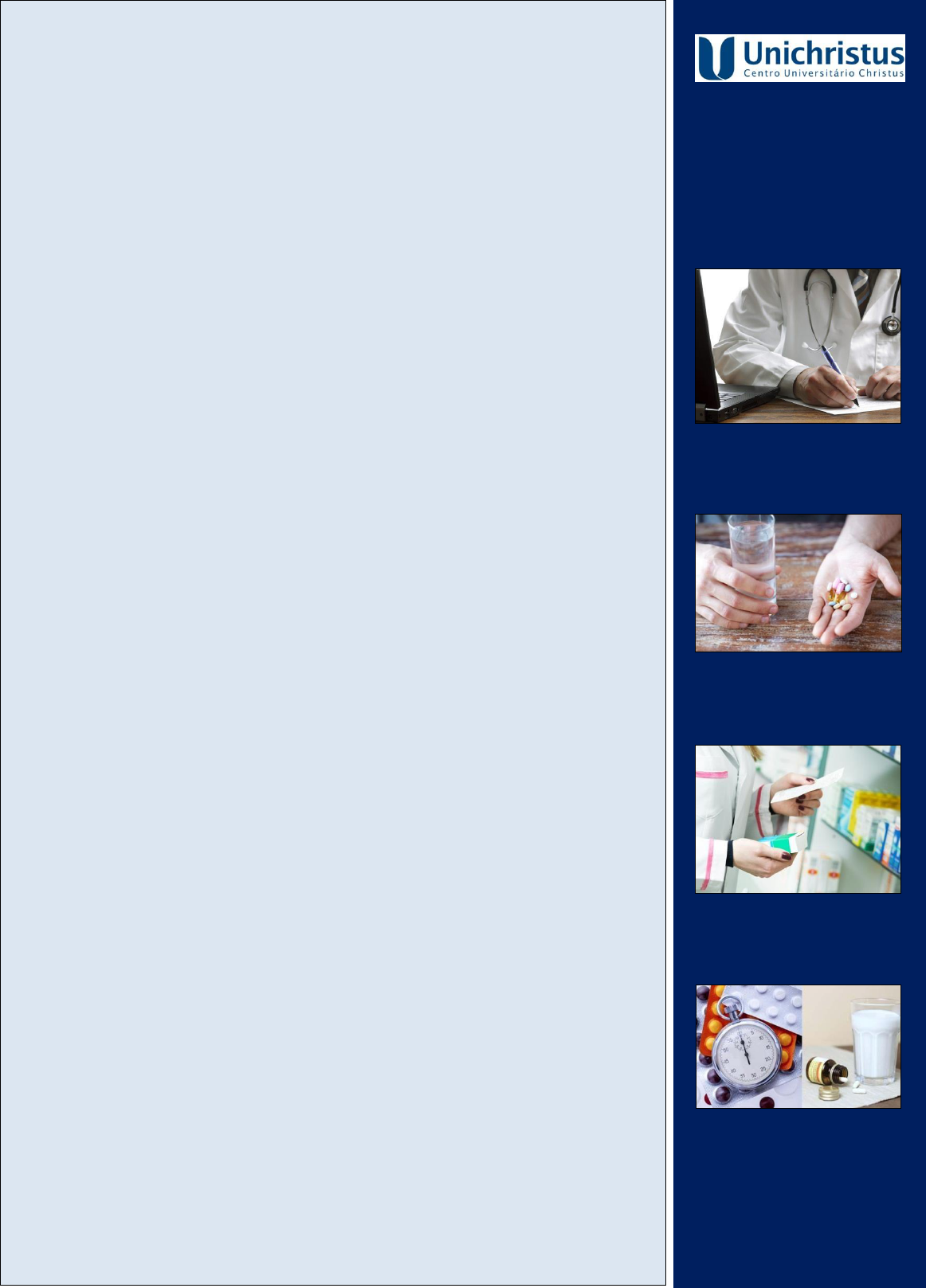 FACILITANDO O APRENDIZADO DO ESTUDANTE DE MEDICINA AO PRESCREVER Prof. Vicente de Paulo Medeiros Soares Profa. Cláudia Maria Costa de Oliveira Janeiro 2017 Curso de Medicina Curso de Medicina SUMÁRIO 1. INTRODUÇÃO ............................................................................................................................................. 2. COMPONENTES GENÉRICOS COMUNS DA PRESCRIÇÃO MÉDICA HOSPITALAR (PMH) ................... 3. COMPONENTES GERAIS FARMACOLÓGICOS / NÃO FARMACOLÓGICOS DA PMH ............................ 3.1. Algumas fórmulas e dados úteis para a PMH ............................................................................ ................. 3.2. Algumas drogas frequentemente usadas em UTI, como proceder e administrar em bomba de infusão contínua (BIC)............................................................................................................................................... 4. ERROS/EQUÍVOCOS DA PMH ................................................................................................................... Curso de Medicina Curso de Medicina 4 1. INTRODUÇÃO No contexto da complexa assistência clínica ao paciente hospitalizado, a construção da prescrição médica representa o passo inicial e mais importante, e onde estatisticamente ocorrem os principais erros da administração de medicamentos. Todos os itens são inscritos e ordenados para a terapêutica, em qualquer esfera de atuação profissional, tendo o prescritor o dever do conhecimento ético e científico adequados, a fim de evitar erros e levar a cabo a recuperação total ou a melhor possível para o doente, dependendo logicamente do tipo de enfermidade de que seja portador. A prescrição médica hospitalar (PMH) inicia uma cadeia de etapas que termina na administração do medicamento e outras diversas ordens nela prescritos. Observando-se a figura 1 abaixo, percebemos sua complexidade, com possibilidades de erros ou equívocos causadores de danos variados ao paciente. Por estas razões, serão abordados neste manual apenas os detalhes mais importantes da elaboração da PMH. Este trabalho visa deixar algumas orientações básicas e iniciais aos estudantes do Curso de Medicina do Centro Universitário Christus, ficando as demais dúvidas e outros assuntos para serem discutidos durante as sessões de tutoria. Os objetivos deste manual são os seguintes: Conhecimento e memorização dos componentes de uma PMH Noções básicas sobre como prescrevê-los corretamente, visando tentar evitar ao máximo os erros, enfocando os seguintes detalhes: - Concentração, apresentação, doses, intervalos, gotejamento, diluição, formas de administração das drogas e soluções mais usadas a nível hospitalar. - Outros itens da PMH, como os diversos tipos de dietas, hidratação, atendimento fisioterápico e outros constituintes comuns ao paciente internado. Nesta ocasião, congratulamo-nos com a oportuna iniciativa dos Coordenadores do curso de medicina do Centro Universitário Christus em trabalhar mais profundamente este tópico da assistência integral ao paciente, tendo como alvo sempre a otimização do conhecimento científico e prático de seus alunos. Figura 1 – Passos no processo terapêutico do paciente em regime hospitalar. PRESCRIÇÃO: realizada pelo médico, com os diversos itens a serem realizados no paciente (medicamentosos e não medicamentosos); PRESCRIÇÃO TRANSCRIÇÃO DISPENSAÇÃO ADMINISTRAÇÃO Curso de Medicina 5 TRANSCRIÇÃO: neste passo a prescrição é transcrita em formulário próprio (em caso de prescrições eletrônicas a segunda via destas pode ser utilizada para este propósito), a fim de ser encaminhada à farmácia para liberação dos medicamentos; DISPENSAÇÃO: nesta fase as drogas são escolhidas, separadas e remetidas à unidade onde o paciente está internado; ADMINISTRAÇÃO: após receber os medicamentos e soluções, a enfermagem administra-os ao paciente. 2. COMPONENTES GENÉRICOS COMUNS DA PMH A prescrição hospitalar ideal, ética e legal deve conter três componentes principais (A, B, C): Componente A: compreende o CABEÇALHO DA PRESCRIÇÃO. É composto dos seguintes dados: nome e logotipo da instituição onde o paciente está internado, nome do paciente, número do seu leito e da respectiva unidade, data e hora da sua confecção, o número do prontuário no caso de pacientes internados em algumas unidades hospitalares. OBS: Esses itens evitam equívocos na checagem que deve ser feita pela enfermagem no momento da dispensação e administração das drogas e outros itens constantes na PMH. Componente B: é constituído pelas ORDENS DE QUAIS DROGAS E OUTROS PROCEDIMENTOS DEVEM SER ADMINISTRADOS E REALIZADOS NO PACIENTE. Neste passo, consideramos importante a observação de que do ponto de vista prático e de administração pela enfermagem, a prescrição dos itens deva ser agrupada por vias de administração, ou seja, listar todas as medicações injetáveis seguidamente e o mesmo fazendo com as medicações orais, as de uso tópico etc. (veja exemplo na figura 2). Esse detalhe facilita a memorização dos itens a prescrever, podendo, entretanto e obviamente, o prescritor escolher iniciar a ordem segundo sua preferência pessoal. Componente C: contém a OS DADOS DE IDENTIFICAÇÃO DO PROFISSIONAL, os quais englobam a assinatura e identificação legíveis do profissional responsável pela mesma. Embora não haja recomendação obrigatória para o uso de carimbo, a grande maioria das instituições hospitalares exige sua aposição. 3. COMPONENTES GERAIS FARMACOLÓGICOS / NÃO FARMACOLÓGICOS DA PMH São os seguintes: 1) Tipos de dietas, se por via oral (VO), sondas, etc. Curso de Medicina 6 2) Hidratação, se endovenosa (EV) ou VO. Prescrição de sangue e/ou seus componentes.1 3) Drogas endovenosas. 4) Drogas por via oral. 5) Drogas por outras vias de administração. 6) Cuidados específicos. 7)