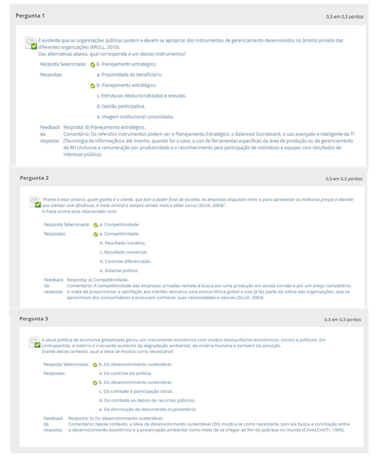 E evidente que as organizacoes publicas podem e devem se apropriar dos instrumentos de gerenciamento desenvolvidos no ambito privado das diferentes organizacoes (KRULL 2010). Das alternativas abaixo, qua corresponde a um desses instrumentos? a. Proximidade do beneficiario. b. Planejamento estrategico. c. Estruturas desburocratizadas e enxutas. d. Gestao participativa. e. Imagem institucional consolidada.