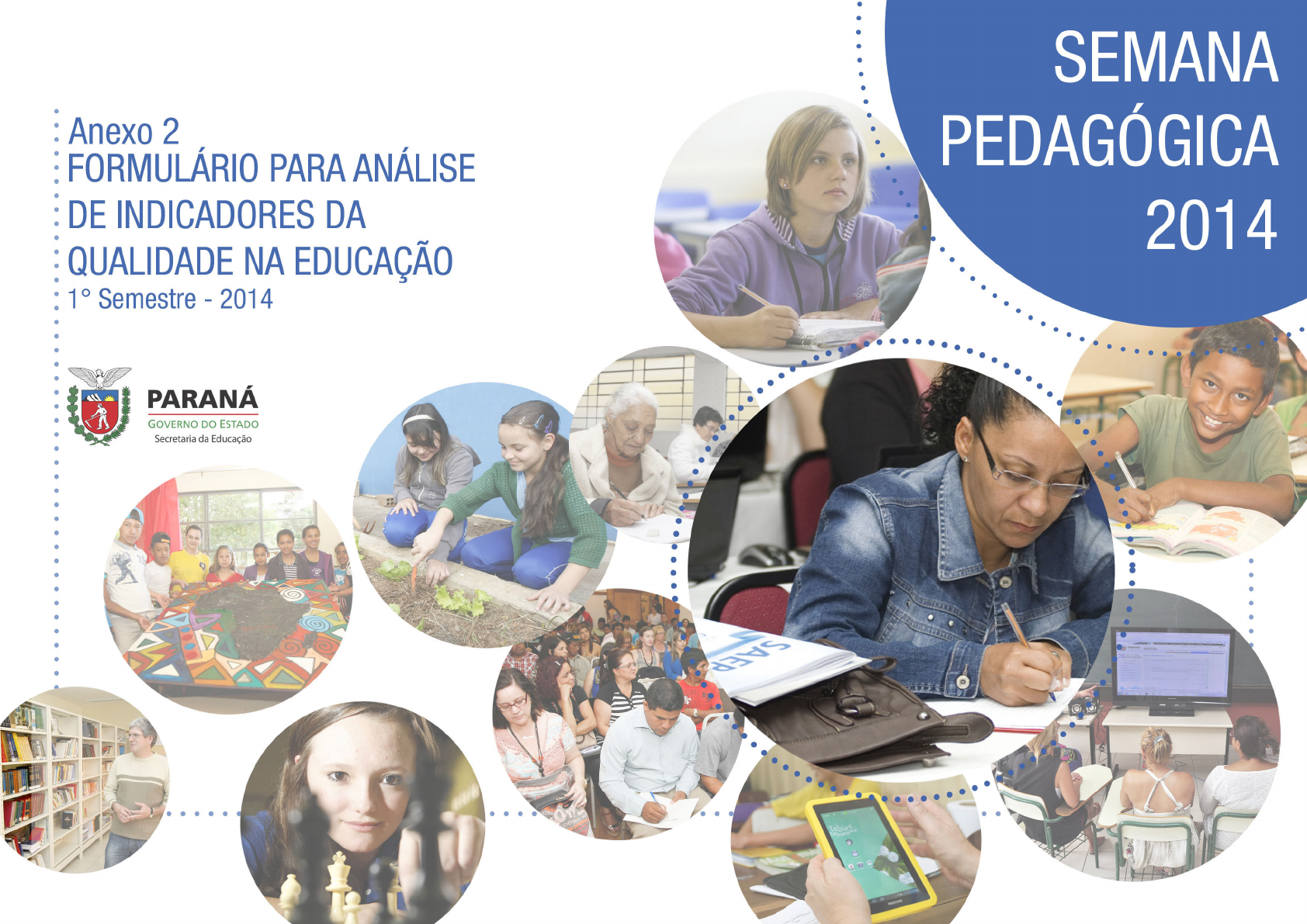 2 SEMANA PEDAGÓGICA 2014 "Repensar o Currículo na perspectiva dos Sujeitos da Escola e da Prática Pedagógica" ANEXO 2 – FORMULÁRIO PARA ANÁLISE DE INDICADORES DA QUALIDADE NA EDUCAÇÃO Identificar o grupo de trabalho (segmento): _____________________________________________________________ Texto abaixo transcrito do documento: UNICEF; PNUD; INEP-MEC (Coord.). Indicadores da qualidade na educação. Ação Educativa. São Paulo: Ação Educativa, 2004. Disponível em: <http://portal.mec.gov.br/seb/arquivos/pdf/Consescol/ce_indqua.pdf>. Acesso em: 6 jan. 2014. INDICADORES DA QUALIDADE NA EDUCAÇÃO Como todos vivemos num mesmo país, num mesmo tempo histórico, é provável que compartilhemos muitas noções gerais sobre o que é uma escola de qualidade. A maioria das pessoas certamente concorda com o fato de que uma escola boa é aquela em que os alunos aprendem coisas essenciais para sua vida, como ler e escrever, resolver problemas matemáticos, conviver com os colegas, respeitar regras, trabalhar em grupo. Mas quem pode definir bem e dar vida às orientações gerais sobre qualidade na escola, de acordo com os contextos socioculturais locais, é a própria comunidade escolar. Não existe um padrão ou uma receita única para uma escola de qualidade. Qualidade é um conceito dinâmico, reconstruído constantemente. Cada escola tem autonomia para refletir, propor e agir na busca da qualidade da educação. A reflexão sobre indicadores da qualidade na educação ajuda a comunidade escolar na avaliação e na melhoria da qualidade da escola. E este é nosso objetivo principal. Ao identificar os seus pontos fortes e fracos, a escola cria condições de intervir para melhorar sua qualidade de acordo com seus próprios critérios e prioridades. Neste diagnóstico, identificamos quatro elementos fundamentais ao processo de ensino e aprendizagem – aqui nomeados de dimensões – que devem ser considerados pela escola na reflexão sobre sua qualidade: • Dimensão 1 - Gestão escolar democrática • Dimensão 2 - Prática pedagógica • Dimensão 3 - Avaliação • Dimensão 4 - Acesso, permanência e sucesso na escola Para avaliar essas dimensões, foram criados alguns sinalizadores de qualidade de importantes aspectos da realidade escolar: os indicadores. 3 SEMANA PEDAGÓGICA 2014 "Repensar o Currículo na perspectiva dos Sujeitos da Escola e da Prática Pedagógica" LEGENDA: As atitudes ou situações estão consolidadas na escola. Um bom caminho no constante processo de melhoria da qualidade. As atitudes, práticas ou situações ocorrem, mas não podem ser consideradas recorrentes ou consolidadas. Elas merecem cuidado e atenção. As atitudes, situações ou práticas são inexistentes ou quase inexistentes. Nesses casos, a intervenção precisa ser imediata. O que são indicadores? Indicadores são sinais que revelam aspectos de determinada realidade e que podem qualificar algo. Por exemplo, para saber se uma pessoa está doente, usamos vários indicadores: febre, dor, desânimo. Para saber se a economia do país vai bem, utilizamos como indicadores a inflação e a taxa de juros. A variação dos indicadores nos possibilita constatar mudanças (a febre que baixou significa que a pessoa está melhor; a inflação mais baixa no último ano indica que a economia está melhorando). Aqui, os indicadores apresentam a qualidade da escola em relação a importantes elementos de sua realidade: as dimensões. Instrumento de análise adaptado do documento: UNICEF; PNUD; INEP-MEC (Coord.). Indicadores da qualidade na educação. Ação Educativa. São Paulo: Ação Educativa, 2004. Disponível em: <http:// portal.mec.gov.br/seb/arquivos/pdf/Consescol/ce_ indqua.pdf>. Acesso em: 6 jan. 2014. Orientações para a análise Cada grupo representando os vários segmentos da comunidade escolar deve eleger um coordenador. Este coordenador cuidará para que todas as perguntas sejam respondidas, buscando chegar a consensos sobre a situação da escola em relação aos indicadores. As perguntas referem-se a práticas, atitudes ou situações que qualificam o indicador. Cada pergunta será discutida pelo grupo e receberá uma cor: verde, amarela ou vermelha. Caso o grupo avalie que essas práticas, atitudes ou situações estão consolidadas na escola, deverá atribuir-lhes cor verde. Um bom caminho no constante processo de melhoria da qualidade. Se na escola essas atitudes, práticas ou situações ocorrem, mas não podem ser consideradas recorrentes ou consolidadas, o grupo lhes atribuirá cor amarela. Elas merecem cuidado e atenção. Caso o grupo avalie que na escola essas atitudes, situações ou práticas são inexistentes ou quase inexistentes, irá atribuir-lhes cor vermelha. Nesses casos, a intervenção precisa ser imediata. As cores atribuídas às perguntas ajudarão o grupo a ponderar e decidir sobre qual das três cores reflete com mais precisão a situação da escola em relação a cada indicador. Não se trata de gerar uma média das respostas para se chegar às cores dos indicadores. Diante do que foi atribuído para as perguntas, o grupo avalia qual cor que melhor qualifica o indicador. 4 SEMANA PEDAGÓGICA 2014 "Repensar o Currículo na perspectiva dos Sujeitos da Escola e da Prática Pedagógica" Algumas características da gestão escolar democrática são: o compartilhamento de decisões e informações, a preocupação com a qualidade da educação e com a relação custo-benefício, a transparência, fatores que são operacionalizados por instâncias colegiadas, tais como os conselhos escolares. Como mecanismos de participação da comunidade na escola, eles já estão presentes em muitas escolas do país. A função dos conselhos é orientar, opinar e decidir sobre tudo o que tem a ver com a qualidade da escola (como participar da construção do projeto político-pedagógico e dos planejamentos anuais, avaliar os resultados da administração e ajudar na busca de meios 