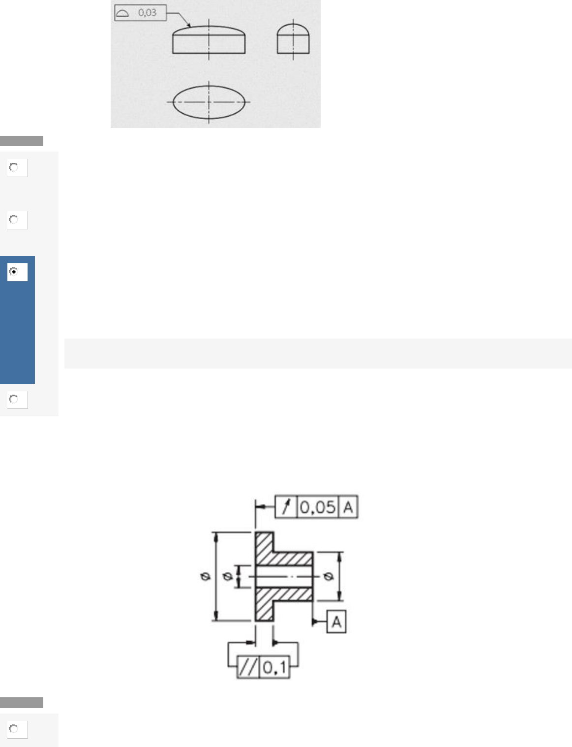 APOL 4 – DESENHO TÉCNICO MECÂNICO – NOTA 100 Questão 1/5 - Desenho Técnico Mecânico Analise o desenho técnico a seguir e marque a alternativa que apresente a resposta correta para a simbologia utilizada. Nota: 20.0 A Indica que o diâmetro do círculo esférico é de 0,03 mm B Indica que o raio do círculo da esfera é igual a 0,03 mm C Indica que o erro de forma permitido nessa superfície é de no máximo 0,03 mm Você acertou! Resposta: rota de aprendizagem da aula 5. D Indica que o erro de forma permitido nessa superfície é de no mínimo 0,03 mm Questão 2/5 - Desenho Técnico Mecânico Analisando o desenho a seguir, assinale a alternativa que apresenta corretamente os tipos de tolerâncias indicadas no desenho. Nota: 20.0 A Posição – paralelismo B Batimento – perpendicularidade C Paralelismo – batimento Você acertou! Resposta: rota de aprendizagem aula 5 D Perpendicularidade – diâmetro Questão 3/5 - Desenho Técnico Mecânico O chefe da ferramentaria de sua empresa recebeu o desenho de uma peça onde havia a indicação de dois furos com as seguintes tolerâncias: diâmetro 73 H10 e diâmetro 185 J5, verificando a tabela de tolerâncias da ISO (rota de aprendizagem da aula 5), determine os valores dos diâmetros máximo e mínimo de cada furo, para informar ao operador de máquina que irá fabricar essa peça. Veja cópia da tabela: Nota: 20.0 A 73, 12 – 73,00 / 185, 070 – 184,098 B 73,00 – 72,88 / 185, 007 – 184,987 Você acertou! Resposta: rota de aprendizagem aula 5 C 72,88 – 73,12 / 184,007 – 185,987 D 73,00 – 73,02 / 185,007 – 184,993 Questão 4/5 - Desenho Técnico Mecânico O engenheiro de produto ao idealizar um novo produto deve prever no desenho da peça o tipo de ajuste que julgue necessário para se aplicar em certos tipos de montagem e para isso existem tabelas que o auxiliam nessa decisão. Por exemplo: se tivermos na peça um furo com precisão H7, e quisermos montar nesse furo um eixo com ajuste rotativo livre, que tipo de precisão deverá ter esse eixo? Nota: 20.0 A d9 B E8 C F7 D e8 Você acertou! Reposta: rota de aprendizagem aula 5 Questão 5/5 - Desenho Técnico Mecânico Analisando as dimensões do conjunto eixo/furo a seguir, determine que tipo de ajuste ocorrerá nessa união e assinale a alternativa correta: Nota: 20.0 A Ajuste com folga Você acertou! Resposta: rota de aprendizagem aula 5 B Ajuste com interferência C Ajuste incerto D Faltam dados no desenho para se determinar o tipo de ajuste