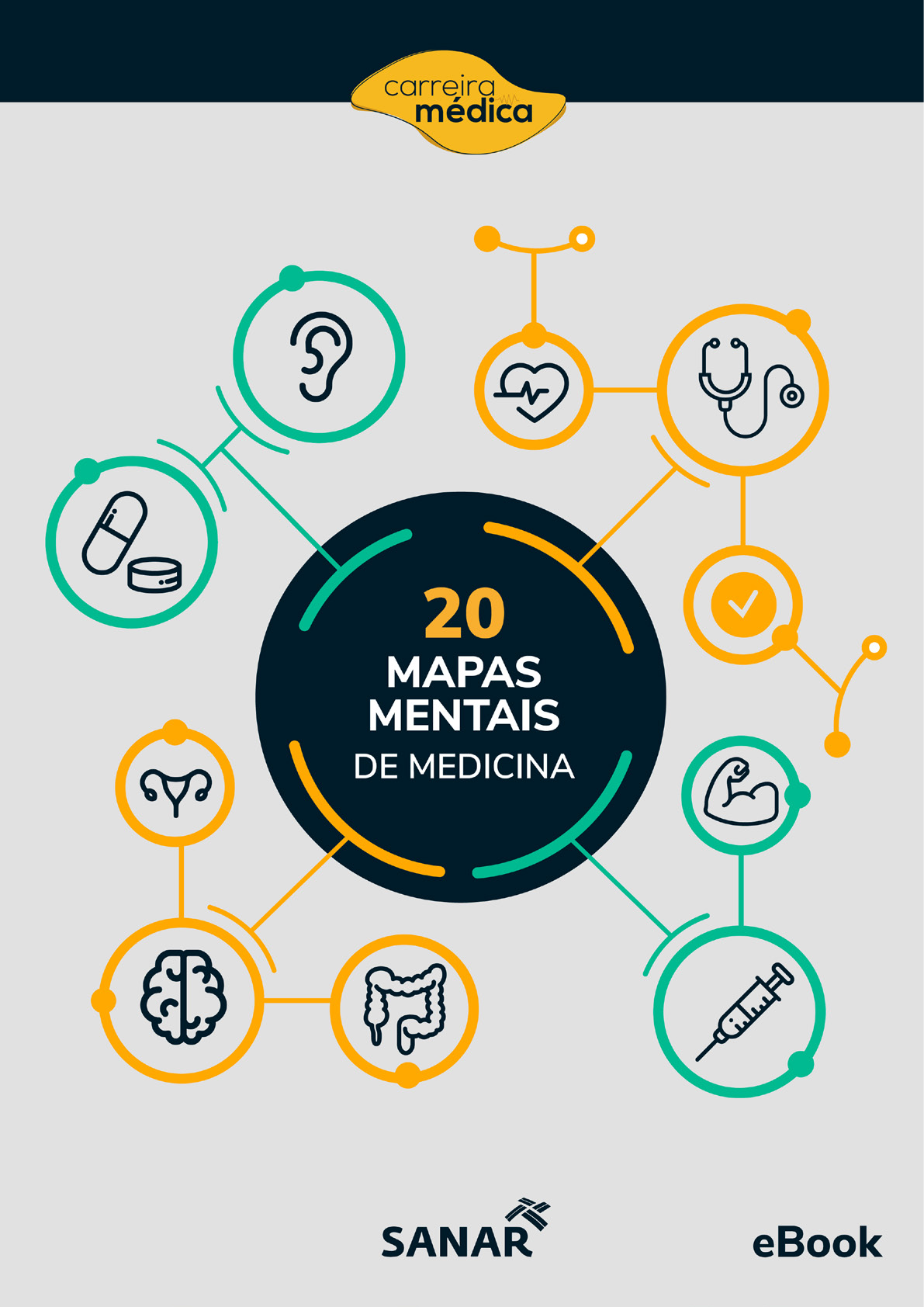 2e Book | 20 MAPAS MENTAIS DE MEDICINA SUMÁRIO Introdução A importância dos mapas mentais no estudo Como montar seu MM? Como e quando utilizá-lo? Mapa mental de anemia Mapa mental de abdome agudo Mapa mental de hipertensão arterial sistêmica Mapa mental de vacinas Mapa mental de vulvovaginites Mapa mental de câncer colorretal Mapa mental de sepse Mapa mental de diabetes mellitus tipo 2 Mapa mental de injúria renal aguda Mapa mental de asma Mapa mental de complicações ferida pós operatória Mapa mental de trabalho de parto prematuro Mapa mental de dor torácica Mapa mental de trauma torácico Mapa mental de resposta endócrino, metabólica e imunológica ao trauma Mapa mental de avaliação pós operatória Mapa mental de insuficiência cardíaca descompensada clas. hemodinâmica Mapa mental de câncer de ovário Mapa mental de endocardite infecciosa Mapa mental de ATLS Confira mais mapas mentais 03 04 06 07 08 09 10 11 12 13 14 15 16 17 18 19 20 21 22 23 24 25 26 27 28 3 Book | 20 MAPAS MENTAIS DE MEDICINA SUMÁRIOe INTRODUÇÃO Olá, Tudo bom? Se você baixou esse e-book é porque quer estudar melhor ou está em busca de conteúdo de qualidade e – provavelmente – ama mapas mentais assim como a gente. Neste e-book você vai encontrar: 1 Artigo sobre a importância de estudar por mapas mentais; 2 Dicas para fazer o seu próprio mapa mental; 3 20 mapas mentais de medicina no padrão Carreira Médica. Bons estudos! @carreira_med 4 Book | 20 MAPAS MENTAIS DE MEDICINA SUMÁRIOe A IMPORTÂNCIA DOS MAPAS MENTAIS NO ESTUDO Se você se interessa por formas de estudo mais produtivas e como reter melhor o conhecimento adquirido, já sabe que a revisão é de extrema importância! Muitas vezes é mais válido apenas revisar o assunto já estudado para fixá-lo corretamente, do que estudar um novo conteúdo. A grande verdade é que o paciente e a prova, não querem saber quantos capítulos você leu, mas o que você realmente fixou para pôr em prática. Imagina essa cena: você chega cansado(a) em casa e vai reler o assunto aprendido recentemente. Folhas e mais folhas de um resumo que você acha que já decorou. Às vezes até pula uns parágrafos porque sabe que ali não tem nada muito importante. Isso já aconteceu com você antes? Acontece bastante. Infelizmente, os resumos escritos não são a melhor forma de revisar, apesar de ser a mais comum entre os estudantes. Aqui estão os 2 motivos principais para você deixar de lado as páginas de resumo: 1. Resumo é uma forma PASSIVA de revisar. Como assim? Existem 2 formas de aprendizado: A passiva e a ativa. Na primeira, você só reler o que foi estudado e tem a falsa sensação de estar aprendendo. Quando você reler, as mesmas inferências são feitas ou algumas poucas novas. Quantas vezes você já leu sobre antibióticos mas sempre esquece? Pois é. A segunda forma de aprendizado, faz com que você “busque ativamente” esse conhecimento no seu cérebro. Alguns exemplos são: fazer questões, flashcards (FC), dar aulas e mapas mentais (MM). O interessante do mapa mental é que você também vai 5 Book | 20 MAPAS MENTAIS DE MEDICINA SUMÁRIOe ler, porém, por ele te dar apenas poucas palavras, você precisa forçar sua mente a lembrar o raciocínio completo que aquela palavra ou imagem querem trazer. 2. Resumos são cansativos. O que te interessa mais: um resumo cheio de palavras ou um mapa co- lorido, com imagens e simples? Se você revisa com frequência (O que é o certo), em algum momento você terá que revisar diversos assuntos no mesmo dia, e olhar para aquele resumo cheio de palavras não parece motivador, não é? Além de que, costuma demorar muito mais. Caso você já esteja vendo o MM pela quarta ou quinta vez, tente relembrar as informações que ele traz sem olhar para ele. Você vai ver como já tem a imagem dele certinha na cabeça. Mas calma! Eu não estou dizendo que os resumos devem ser comple- tamente deixados de lado. Eles tem sim o seu papel como um material de apoio. Durante o seu estudo, ele te auxilia a criar uma linha de raciocínio. Escreva o que entendeu do trecho lido e vá fazendo associações. Importante se atentar para o tempo que utiliza para fazer esse resumo. Muitas vezes as pessoas perdem muito tempo para construí-lo Quando estiver fazendo questões, caso apareça uma dúvida, volte para seu resu- mo para entender melhor o conceito. Ademais, caso tenha muito tempo que não estude o assunto, aconselho ler o resumo primeiro. Porém, mais uma vez, como material de revisão ele não é eficaz. Bem, agora que você entendeu que o melhor “combo” para o seu estu- do envolve uma revisão frequente através de formas ativas de estudo, vamos abordar a que costuma causar mais estranhamento: O MAPA MENTAL (figura 1). 6 Book | 20 MAPAS MENTAIS DE MEDICINA SUMÁRIOe COMO MONTAR SEU MM? 1. Comece pelo centro. O mapa sempre deve partir do núcleo e ir se expandindo para as bordas, com os ramos cada vez mais finos. 2. Use imagens para sua ideal central. Lembre que uma imagem vale mais que mil palavras. A dica é colocar figuras nos sinais e sintomas ou até mesmo nos medicamentos. 3. Use e abuse das cores. Junto com as imagens, ajuda a criar mais interesse pelo material de revisão. Além, de ajudar no processo de retenção das informações Figura 1 - Mapa Mental AVC Carreira Médica 7 Book | 20 MAPAS MENTAIS DE MEDICINA SUMÁRIOe 4) Use linhas curvas. São mais interessantes para o cérebro, segundo estudos. 5) Usar poucas palavras. O ideal seria apenas uma, mas em alguns momentos é difícil ser tão conciso. Mas lembre de evitar escrever frases extensas. 6) Menos é mais. Dê preferência por menos informações por página. Isso quer dizer que muitos assuntos podem ter mais do que um mapa, mas é importante que você evite colocar muita informação em um mesmo mapa, por deixá-lo extenso e cansativo. COMO E QUANDO UTILIZÁ-LO? A frequência da revisão é algo que varia de acordo com autor. Me b