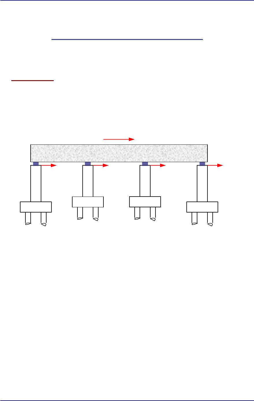 Pontes – “Esforços Horizontais” Engenharia Civil - Prof. Aiello Giuseppe Antonio Neto 1 H H1 H2 H3 H4 EESSFFOORRÇÇOOSS HHOORRIIZZOONNTTAAIISS 1. Introdução Suponhamos que seja aplicada uma força “H” em uma ponte, conforme indica a figura abaixo: Para a análise da infraestrutura precisamos saber subdividir o esforço “H” em parcelas (H1, H2, H3 ........) que vão atuar no topo dos pilares, além das cargas verticais, sejam elas permanentes ou acidentais, levando-se em consideração o conceito de coeficiente de impacto. Neste capítulo trataremos somente do estudo das cargas horizontais, sejam elas longitudinais (na direção do tráfego) ou transversais que deverão ser levadas em conta no projeto e execução de uma ponte. Esse estudo envolve a relação dos esforços horizontais bem como a quantificação de cada um deles. Pontes – “Esforços Horizontais” Engenharia Civil - Prof. Aiello Giuseppe Antonio Neto 2 2. Esforços Horizontais Os esforços horizontais em análise são: 2.1. Frenagem ou Aceleração 2.2. Variação de Temperatura 2.3. Retração 2.4. Efeito do Vento 2.5. Impacto Lateral 2.6. Força Centrífuga 2.7. Empuxo de Terra 2.8. Empuxo de Água 2.9. Atrito nos Apoios Móveis 2.10. Impacto nos Pilares 2.11. Deslocamento das Fundações Observação: A análise da deformação lenta não faz parte do objetivo deste estudo. 2.1. FRENAGEM OU ACELERAÇÃO: Para podermos frear ou acelerar um veículo dependemos do atrito entre as rodas e a superfície de rolamento, seja o pavimento no caso de pontes rodoviárias, ou os trilhos no caso de pontes ferroviárias. A força gerada deste atrito provoca esforços horizontais longitudinais apreciáveis na infraestrutura. Pontes – “Esforços Horizontais” Engenharia Civil - Prof. Aiello Giuseppe Antonio Neto 3 1,50 11,00 1,50 A Norma Brasileira recomenda avaliar as forças longitudinais de frenagem ou aceleração como sendo uma porcentagem da carga móvel. Pontes Rodoviárias: H1 = 5% da carga uniforme total sobre a ponte, excluindo-se os passeios. ou H2 = 30% do veículo-tipo Exemplo 1: L = 40 m Classe 45 H1 = 5 x (0,5 x 8 + 0,5 x 3) x 40 = 11 tf 100 ou H2 = 30 x 45 = 13,50 tf 100 No caso da Classe 36 (Norma anterior) teremos: H1 = 5 x (0,5 x 3 + 0,3 x 8) x 40 = 7,80 tf 100 ou H2 = 30 x 36 = 10,80 tf 100 Obs.: A escolha de H1 ou H2 será estudada em capítulo posterior. Pontes – “Esforços Horizontais” Engenharia Civil - Prof. Aiello Giuseppe Antonio Neto 4 Exemplo 2: 6,00 6,00 L = 40 m irremovível Classe 45 H1 = 5 x (0,5 x 9 + 0,5 x 3) x 40 = 12 tf 100 ou H2 = 30 x 45 = 13,50 tf 100 Pontes Ferroviárias: - frenagem 15% da carga móvel total sobre a ponte. - aceleração 25% do peso total dos eixos motores sobre a ponte. Exemplo 1: 36tf 36tf 36tf 36tf 2,0 2,0 2,0 1,0 12 tf/m L= 42 m T.B. 360 L= 42,0 m - frenagem FF = 15 x (36 x 4 + 12 x 35) = 84,60 tf 100 - aceleração Fa = 25 x (36 x 4) = 36 tf 100 Pontes – “Esforços Horizontais” Engenharia Civil - Prof. Aiello Giuseppe Antonio Neto 5 Exemplo 2: 16tf 36tf = = = 21tf = = = 16tf 36tf = = = 21tf = = = 2,4 1,5 = = 2,7 1,5 1,8 1,5 2,4 2,4 1,5 = = 2,7 1,5 1,8 1,5 1,5 10 tf/m L = 45,0 m Fp = 15 x (32 x 8 + 21 x 8 + 16 + 10 x 14,7) = 88,05 tf 100 Fa = 25 x (32 x 8) = 64 tf 100 Observações: a.) Para avaliação dos esforços de frenagem ou aceleração, as cargas móveis são consideradas sem impacto. b.) Para pontes rodoviárias, não existe distinção entre frenagem e aceleração. c.) No caso de pontes ferroviárias, no cálculo de esforço de frenagem devemos considerar que toda a carga móvel sobre a ponte, intervém nesse processo e que no caso de aceleração devemos levar em conta somente os eixos motores (mais pesados) situados na ponte. d.) Essas forças longitudinais são aplicadas na superfície de rolamento (pavimentação ou topo dos trilhos). 2.2. TEMPERATURA: As variações térmicas causam deslocamentos nas estruturas. Quando esses deslocamentos são impedidos, há o aparecimento de esforços justamente devidos a essa restrição. Pontes – “Esforços Horizontais” Engenharia Civil - Prof. Aiello Giuseppe Antonio Neto 6 Quando do dimensionamento dos aparelhos de apoio essas variações de temperatura já foram consideradas. A Norma Brasileira supõe que essas variações térmicas sejam uniformes ao longo da estrutura, prevendo em função da localização da ponte, variações de 10oC a 15oC, em torno da média. Quando, porém, a menor dimensão da peça da estrutura for igual ou maior que 70 cm, a Norma Brasileira permite fazer uma redução das oscilações térmicas de 5oC a 10oC. Procura-se com isso levar em conta que, para peças relativamente grandes é freqüente anular-se essa variação de temperatura, antes que esta tenha atingido todos os pontos da estrutura. Observação: No estudo da distribuição longitudinal dos esforços, será dada ênfase para este item de variação de temperatura. 2.3. RETRAÇÃO: Valem para a retração, todas as considerações feitas no item 2.2. Os efeitos da retração equivalem a uma queda de temperatura de 15oC e como foi observado no caso de variação de temperatura, serão levados em conta na seqüência do curso. 2.4. VENTO: A ação do vento corresponde a uma carga uniformemente distribuída perpendicular ao eixo da ponte. Pontes – “Esforços Horizontais” Engenharia Civil - Prof. Aiello Giuseppe Antonio Neto 7 Deveremos analisar duas situações: - ponte descarregada, - ponte carregada. Ponte Descarregada: Consideramos como superfície de incidência do vento, a projeção da estrutura sobre o plano normal à direção do vento. Admitimos que a pressão do vento seja de 150 Kgf/m2 tanto para pontes ferroviárias, rodoviárias ou passarelas. Ponte Carregada: A projeção à ação do vento deve ser acrescida de uma faixa limitada superiormente por uma linha paralela ao estrado, distante da superfícis de rolamento: - ponte ferroviária ......................... 3,5 m -