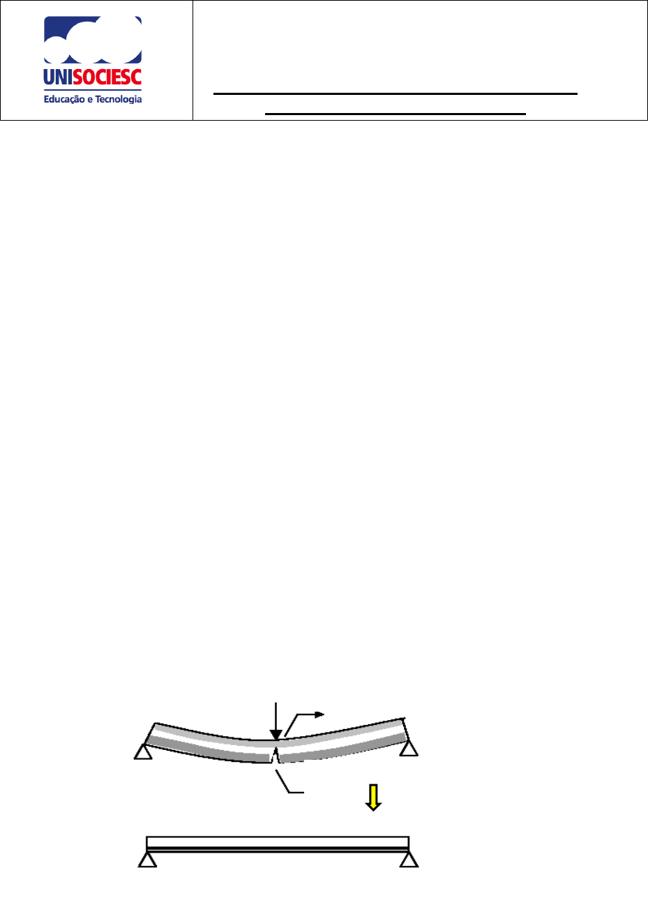 Prof. Luiz Algemiro Cubas Guimarães (MIRO) ESTRUTURA DE CONCRETO ARMADO II (CV 072) Notas de Aula - 1 DIMENSIONAMENTO E DETALHAMENTO DE VIGAS DE CONCRETO ARMADO Página 1 de 10 1. Introdução Nas Notas de Aula 1 de Estrutura de Concreto Armado 1, através de seus itens foi visto a definição acerca do Elemento Estrutural - VIGA. Também, lá fora mencionado e reafirma-se agora, que quando dispomos de um elemento estrutural projetado para suportar diversas cargas em sua extensão, este elemento recebe o nome de viga. Estas vigas são normalmente sujeitas às cargas dispostas verticalmente à sua linha/eixo, o que resultará na combinação de esforços de cisalhamento e flexão. É importante então ser ressaltado, que quando se fala em dimensionamento de uma viga, seja ela de qualquer material, como: aço, madeira, concreto, duas fases são definidas distintamente. A primeira fase é o cálculo dos esforços da estrutura, ou seja, o cálculo de momentos fletores (Flexão) e forças cortantes (Cisalhamento), ao qual a viga está submetida aos vários tipos de carregamento, o que fora visto em outras Disciplinas (Resistência dos Materiais, Teoria das Estruturas e a própria Estruturas de Concreto Armado 1). A segunda fase é o dimensionamento da peça propriamente dito, onde são verificadas quais as dimensões necessárias da peça estrutural, conjuntamente com a quantidade de aço incorporado (no caso do Concreto Armado), que irão resistir aos esforços solicitados. Quando se fala em Flexão, induz também à ideia da combinação dos esforços de Tração e Compressão nas regiões da seção entre os apoios, segundo segue nas figuras a seguir. E como é sabido, de forma simplista o Concreto é Armado para que a armadura (aço) possa ele suportar os esforços de Tração, uma vez que, o Concreto é péssimo material para resistir à Tração. Viga bi-apoiada. Região Comprimida Região Tracionada Concreto Fissurado Armadura (ferro) incorpora-se ao concreto na região tracionada Página 2 de 10 Viga bi-apoiada com balanço Viga contínua Falou-se em Esforços de Flexão e Cisalhamento (Esforços Cortantes) e, quanto aos Esforços Cortantes sabe-se tratar de Esforços Internos devido à combinação de ações externas Verticais ao eixo da Peça e de sentidos Contrários (Ações de Cargas e Reações de Apoio). Neste ponto também há a necessidade da incorporação do aço ao concreto, para que este auxilie na transmissão interna dos Esforços Cisalhantes. Mais adiante será visto os Esforços Cisalhantes e o dimensionamento da Armadura de Cisalhamento. Região Tracionada Concreto Fissurado Região Tracionada Concreto Fissurado Armadura (ferro) incorpora-se ao concreto na região tracionada Região Tracionada Concreto Fissurado Região Tracionada Concreto Fissurado Armadura (ferro) incorpora-se ao concreto na região tracionada Prof. Luiz Algemiro Cubas Guimarães (MIRO) ESTRUTURA DE CONCRETO ARMADO II (CV 072) Notas de Aula - 1 DIMENSIONAMENTO E DETALHAMENTO DE VIGAS DE CONCRETO ARMADO Página 3 de 10 Logo; pode-se sintetizar como: uma viga reta, desde que não possua carregamentos horizontais ou inclinados, será solicitada por Momentos Fletores e Esforços Cortantes, como mostrado na Figura 1. Nas vigas de concreto armado, os momentos fletores e os esforços cortantes são responsáveis pela existência de dois tipos de armadura (Figura 2): Até o momento falou-se em viga sofrendo esforços de Flexão e Cisalhamento, isto se considerando vigas isostáticas e/ou vigas contínuas sofrendo a ação de cargas verticais ao eixo da viga; porém, existe a possibilidade de uma viga sofrer uma torção ao longo de um (ou mais) de seus vãos; ou seja, existir um momento torçor, isto devido a ação de cargas verticais a um eixo perpendicular e/ou paralelo ao eixo de uma viga em questão (ex: viga que nasce/engastada em outra viga; marquise). 2. Flexão Simples e os Estádios de Deformação Passa-se a seguir, a se estudar o que acontece quando ocorrem cargas verticais perpendiculares ao eixo, proporcionando a FLEXÃO de um elemento estrutural, no caso, uma viga. DEC DMF A B Figura 1 – Diagramas de Esforço Cortante e Momento Fletor CORTE AA A A Armadura devido ao Esforço Cortante Armadura devido ao Momento Fletor Página 4 de 10 A flexão simples é definida como a flexão sem força normal (normal à seção transversal = axial ao eixo longitudinal). Quando a flexão ocorre acompanhada de força normal tem-se a flexão composta. Salientando então, solicitações normais são aquelas cujos esforços solicitantes produzem tensões normais (perpendiculares) às seções transversais dos elementos estruturais. Os esforços que provocam tensões normais são o momento fletor (M) e a força normal (N). As lajes e as vigas são submetidas à flexão normal simples, embora possam também, eventualmente, estarem submetidas à flexão composta. De modo que o estudo da flexão simples é muito importante. O estudo da flexão normal simples tem como objetivo proporcionar ao aluno o correto entendimento dos mecanismos resistentes proporcionados pelo concreto sob compressão e pelo aço sob tração, em seções retangulares e T, visando levá-lo a bem dimensionar ou verificar a resistência dessas seções. O equacionamento para a resolução dos problemas da flexão simples é deduzido em função de duas equações de equilíbrio da estática, e que proporciona as aqui chamadas “equações teóricas”, que podem ser facilmente implementadas para uso em programas computacionais. Também é apresentado o equacionamento com base em coeficientes tabelados tipo K, largamente utilizado no Brasil. É importante esclarecer o aluno que no estudo deste material didático ele aprenderá a dimensionar as seções transversais das vigas aos momentos fletores máximos, e fazer o detalhamento das armaduras de flexão apenas na seção transversal correspondente. O procedimento para se caracterizar o dese