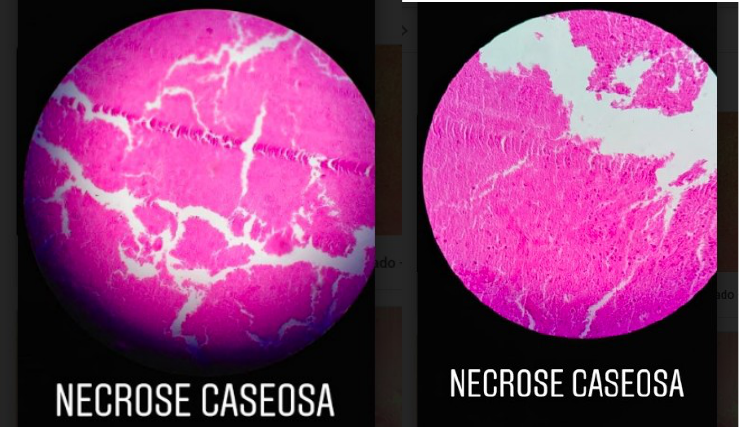 André Luiz Ribeiro (FF/UFG) Prova prática 1 de Patologia Geral – Farmácia (06/10/19) 1 SUMÁRIO: • Necrose caseosa • Esteatose • Degeneração hidrópica • Aterosclerose • Calcificação distrófica • Amiloidose + Antracose • Edema pulmonar • Trombose hemorroidária • NECROSE CASEOSA: Característica de focos de tuberculose, amostra de um órgão linfóide (Baço) não preservado, corado em HE, evidenciado pela presença de linfócitos na periferia. Observa-se a presença de massa amorfa eosinofílica, de aspecto de fundo de lagoa seca, com células em alterações celulares em fase de picnose, cariorrexe e cariólise. São fatores os quais evidenciam o diagnóstico patológico de necrose caseosa, com distribuição difusa e intensidade acentuada. André Luiz Ribeiro (FF/UFG) • ESTEATOSE HEPÁTICA Observa-se uma amostra de fígado, corado em HE, o qual é evidenciado pela presença de ducto biliar, artéria hepática e veia porta. Nota-se alterações celulares citoplasmáticas, com acúmulo de lipídios (triglicerídios) no citoplasma, com aspecto óptico vazio e núcleo excêntrico, como forma de microvacúolos e macrovacúolos, lesão de distribuição difusa, intensidade acentuada, de caráter eosinofílica. Processo patológico característico de Esteatose Hepática. • DEGENERAÇÃO HIDRÓPICA André Luiz Ribeiro (FF/UFG) Observa-se uma amostra de Rim parcialmente preservado, identificado pelos glomérulos, corado em HE, com presença de alterações celulares nucleares e citoplasmáticas. Células tumefeitas devido ao acúmulo de água e eletrólitos, com presença de grânulos citoplasmáticos e formação de vacúolos. Lesão celular de coloração basofílica, amorfa, distribuição difusa e intensidade acentuada, caracterizando processo patológico de Degeneração Hidrópica. • ARTEROSCLEROSE Amostra de Artéria, parcialmente preservado, corado em HE, identificado pelas túnicas (íntimas, média e adventícia). Túnica íntima em processo de espessamento, observa-se a presença de células espumosas com depósito de lipídios no interstício, com aspecto de grão de arroz, caracterizando o processo patológico de aterosclerose. Lesão intersticial, coloração eosinofílica, distribuição multifocal e intensidade acentuada. André Luiz Ribeiro (FF/UFG) • CALCIFICAÇÃO DISTRÓFICA Lâmina de Glúteo com fibras musculares parcialmente preservadas, corado em HE, com presença de lesão intersticial de coloração basofílica, distribuição multifocal e intensidade acentuada. Observa-se pontos de fibrose (eosinofílica) próximos ao processo inflamatório, presença de cristais de hidroxiapatita, de aspecto quebradiço, caracterizando processo patológico de calcificação distrófica. • AMILOIDOSE + ANTRACOSE Lâmina de Pulmão, parcialmente preservado, identificado pela presença dos alvéolos pulmonares, corado em HE. Lesão intersticial, coloração eosinofílica, morfologia amorfa, distribuição multifocal e intensidade acentuada. Observa-se a presença de substância amiloide e de depósitos de material proteico fibrilar, com processo de infiltrado inflamatório associado a hiperemia ativa e presença de pontos de antracose (pigmento exógeno de cor enegrecida, oriundos do carvão). Caracterizando o processo patológico de Amiloidose. André Luiz Ribeiro (FF/UFG) • EDEMA PULMONAR Lâmina de pulmão, identificado pela presença de alvéolos, corado em HE. Lesão intersticial, coloração eosinofílica com aspecto amorfo opticamente vazio, distribuição difusa, com intensidade acentuada. Observa-se uma massa fracamente eosinofílica do tipo transudato e espessamento dos septos alveolares, além da presença de pigmentos exógenos enegrecidos de antracose e depósito de pigmento derivado da hemoglobina (hemossiderina). Caracterizando o processo patológico de Edema. • TROMBOSE HEMORROIDÁRIA Lâmina do plexo hemorroidário, corado em HE, identificado pela presença de mucosa. Lesão intravascular, coloração mais eosinofílica, com aspecto amorfo, distribuição multifocal e intensidade acentuada. Observa-se a presença de trombos brancos – já organizados (vasta rede de fibrinas e poucas hemácias) e trombos vermelhos – trombos recentes (vasta quantidade de hemácias e aspecto recorrente) e trombos mistos – trombos em organização (fibrinas com aspecto mais claro), além de congestão (hiperemia passiva) em alguns vasos. Caracterizando o processo patológico de trombose. André Luiz Ribeiro (FF/UFG) OBSERVAÇÕES GERAIS PELO AUTOR: - As lâminas utilizadas foram oriundos de Baço, Fígado, Pulmão, Glúteo (músculo estriado esquelético) e Plexo hemorroidário. - Reconhecer conceitos de eosinofilia e basofilia são essenciais para não se perder durante a prova. - Associar a prática com a teórica ajuda na memorização. - Lembrar-se de conceitos como “aspecto fundo de lagoa seca” e “aspecto quebradiço” é essencial para conseguir distinguir lâminas que, por vezes, são facilmente confundíveis. - Passar o material para frente para ajudar outros coleguinhas. Seja um bom veterano! REFERÊNCIAS - Livros textos presentes na ementa da disciplina - atlas patológico da UFG: https://patologia.iptsp.ufg.br/p/697-atlas - atlas patológico da UEL: http://www.uel.br/ccb/patologia/atlas/Atlas-de-Patologia.pdf