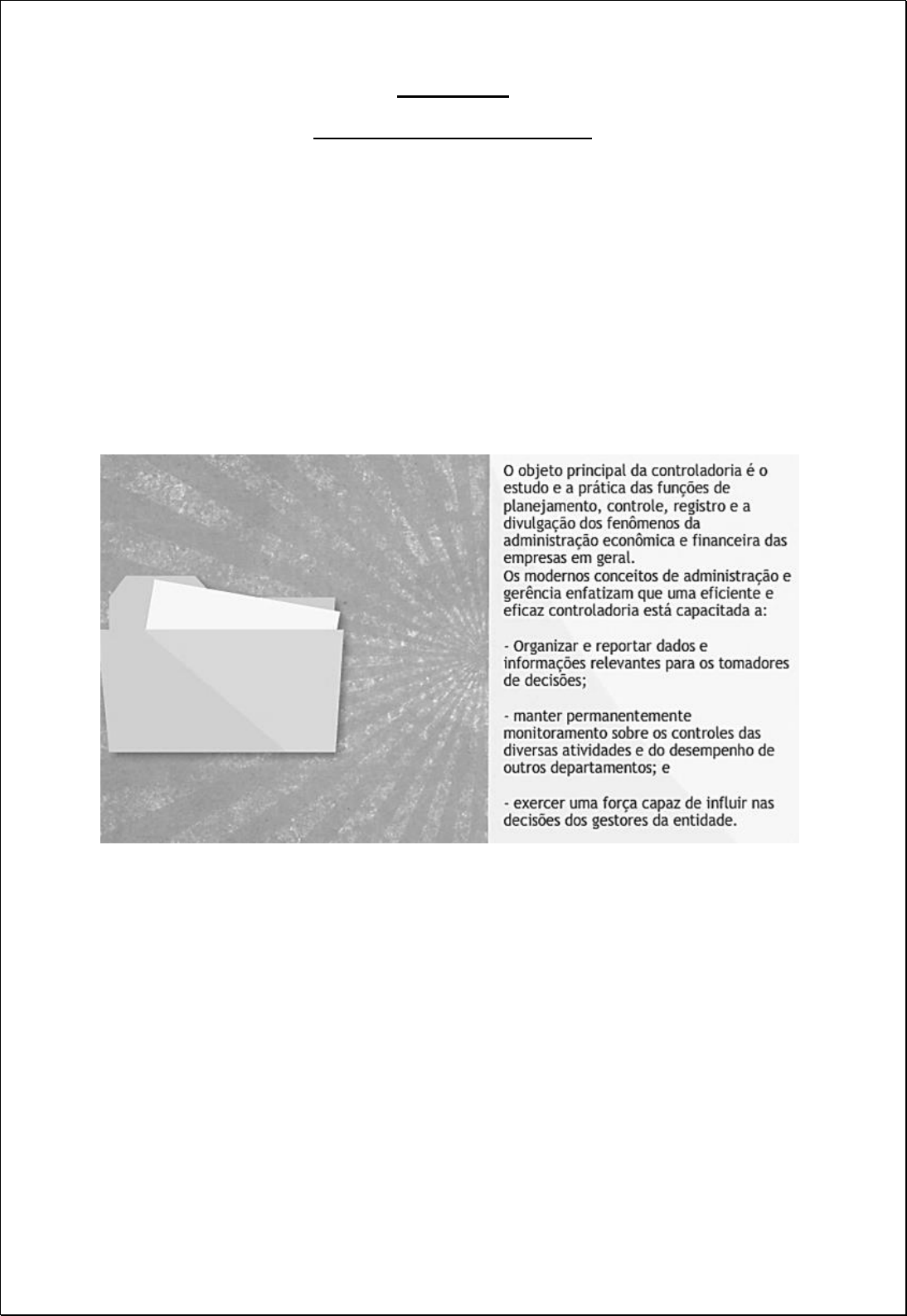 1 Controladoria Aula 1: Introdução à Controladoria Segundo Mosimann e Fisch (1999, p.88), a Controladoria consiste em um corpo de doutrinas e conhecimentos relativos à gestão econômica. Pode ser visualizada sob dois enfoques: a) como um órgão administrativo com missão, funções e princípios norteadores definidos no modelo de gestão do sistema empresa; e b) como uma área do conhecimento humano com fundamentos, conceitos, princípios e métodos oriundos de outras ciências. A controladoria como unidade administrativa é responsável pelo projeto, elaboração, implementação e manutenção do sistema integrado de informações operacionais, financeiras e contábeis de determinada entidade, com ou sem finalidades lucrativas. Já como ramo do conhecimento humano, é responsável pelo estabelecimento das bases teóricas e conceituais necessárias para a modelagem, construção e manutenção dos sistemas de informações, no sentido de suprir, adequadamente, as necessidades informativas dos gestores e os induzir durante o processo de gestão, quando requerido, a tomarem decisões ótimas. Pode-se ressaltar a importância da controladoria como unidade organizacional orientada para o efetivo suporte ao processo decisório, por meio da proposição de seus objetivos de atuação: 1. Subsídio, de forma ampla e incondicional, ao processo de gestão, propiciando aos diversos gestores as condições necessárias ao planejamento, acompanhamento e controle dos resultados dos negócios, de forma detalhada e global; 2. Contribuição para que os gestores ajam no sentido de otimizar os recursos, sempre lembrando que essas pessoas devem ‘vestir a camisa’ de gestores da organização e, por baixo dela, a camisa de especialistas em suas áreas de responsabilidade. Os gestores passam a atuar da maneira aqui preconizada, tendo em vista, propiciar à empresa a melhor contribuição em suas áreas de atuação, considerando os efeitos das decisões de áreas anteriores e posteriores às suas dentro do sistema empresa, na medida em que compreendam que o resultado ótimo da organização depende do perfeito conhecimento da atividade empresarial e de suas inter-relações; 3. Certificação de que os sistemas de informação, para apoio ao processo de gestão, gerem informações adequadas aos modelos decisórios dos principais usuários na organização. Esse objetivo é atingido, à medida que, se identificam, de forma clara e estruturada, as necessidades informativas dos principais usuários e se delineiam seus modelos 2 decisórios, permitindo introduzir, nos sistemas de informação, as regras sobre como deveriam ser as decisões, como também, o registro dos impactos causados pelas decisões realizadas; 4. Certificação da padronização, homogeneização de instrumentos (políticas, normas, procedimentos e ações) e informações (sobre desempenhos e resultados planejados e realizados) em todos os níveis de gestão da organização; 5. Desenvolvimento de relações com os agentes de mercado, que interagem com a empresa, no sentido de identificar e atender às demandas impostas à organização. Segundo Del Valle, Bezerra e Tamura: Os títulos de controller, como o de tesoureiro, tiveram sua origem no governo, na Inglaterra. No século XV o título foi usado em vários cargos da “English Royal Household”, como comptroller das contas na repartição Lord Chamberlain. O Continental Congress nomeou um comptroller em 1778; o Departamento de Tesouraria estabeleceu a função de comptroller em 1789; a função foi sendo estendida para as agências e repartições federais, estaduais e municipais. O título e função do comptroller foram estendidos para corporações de negócio através das estradas de ferro, nos Estados Unidos. (apud ARAGAKI, 2003 p.1) O profissional que desenvolve as atividades da controladoria vem se destacando, cada vez mais, como peça-chave para interpretar e comunicar dados e informações, no sentido de assessorar os gestores, com elevado envolvimento no processo decisório. 3 As raízes da teoria contábil estão relacionadas com as teorias da decisão, da mensuração e da informação. • Teoria da decisão: É tida como o esforço para explicar como as decisões realmente acontecem; para a tomada de decisões, ela objetiva solucionar problemas e manter o caráter preditivo através de um modelo de decisão. A tomada de decisões racionais depende de informações ou dados. • Teoria da mensuração: Trabalha com o problema de avaliação dos dados e por isso é importante que esta seja estabelecida corretamente. • Teoria da informação: Vem de acordo com o seu propósito, que é possibilitar a uma organização alcançar seus objetivos pelo eficiente uso de seus outros recursos. Em um sentido muito abrangente, a ideia de eficiência é expressa na relação entre entradas e saídas. Assim, podemos observar que a Contabilidade saiu, nas últimas décadas, da teoria do lucro (mensuração, comunicação da informação) para a teoria da decisão (modelos de decisão e produtividade). Com isso, unindo esses conceitos, pode-se entendê-la (a Controladoria) como a forma de acontecer a verdadeira função contábil. A Controladoria, assim como todas as áreas de responsabilidade de uma empresa, deve esforçar- se para garantir o cumprimento da missão e a continuidade da organização. Seu papel fundamental nesse sentido consiste em coordenar esforços para conseguir um resultado global sinérgico, isto é, superior à soma dos resultados de cada área. A Controladoria desempenha um importante papel no êxito empresarial, tendo como missão primordial a geração de informações relevantes para a tomada de decisão no âmbito da organização. Dessa forma, a missão da Controladoria é otimizar os resultados econômicos da empresa, para garantir sua continuidade, por meio da integração dos esforços das diversas áreas. A Controladoria serve como órgão de