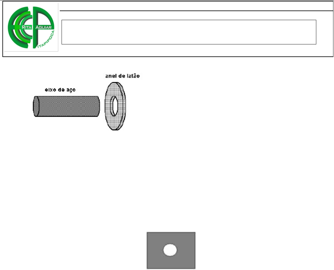 ATIVIDADE DO 1º BIMESTRE 2º ANO EMERSON ROCHA 1. João, chefe de uma oficina mecânica, precisa encaixar um eixo de aço em um anel de latão, como mostrado nesta figura: À temperatura ambiente, o diâmetro do eixo é maior que o do orifício do anel. Sabe-se que o coeficiente de dilatação térmica do latão é maior que o do aço. Diante disso, são sugeridos a João alguns procedimentos, descritos nas alternativas a seguir, para encaixar o eixo no anel. Assinale a alternativa que apresenta um procedimento que NÃO permite esse encaixe. a) Resfriar apenas o eixo. b) Aquecer apenas o anel. c) Resfriar o eixo e o anel. d) Aquecer o eixo e o anel. 2. Uma chapa de alumínio tem um furo central de 100cm de raio, estando numa temperatura de 12°C. Sabendo-se que o coeficiente de dilatação linear do alumínio equivale a 22.10-6°C-1, a nova área do furo, quando a chapa for aquecida até 122°C, será equivalente a qual valor em metros? 3. Um quadrado de lado 2m é feito de um material cujo coeficiente de dilatação superficial é igual a 1,6.10-4. Determine a variação de área deste quadrado quando aquecido em 80°C. 4. Uma placa apresenta inicialmente uma área de 1,0 m2 a 0°C. Ao ser aquecida até 50°C, sua área aumenta 1,0 cm2. Determine o coeficiente de dilatação superficial do material que constitui a placa. 5. Em uma placa de cobre existe um furo circular que, a 20°C, apresenta área igual a 200 mm2. Qual o acréscimo de área que o furo sofre quando se eleva a temperatura da chapa para 220°C? Dado: coeficiente de dilatação linear do cobre igual a 17.10-6 ºC-1 6. Uma placa retangular de coeficiente de dilatação linear 4.10-6ºC-1 e dimensões 30cm de comprimento por 20cm de largura é aquecida da temperatura de 20ºC para 70ºC. Determine: a) o aumento de área sofrido pela placa; b) a área da placa à 70ºC 7. (MACK-SP) Uma chapa de alumínio (α = 2,2.10-5ºC-1), inicialmente a 20ºC, é utilizada numa tarefa doméstica no interior de um forno aquecido a 270ºc. determine, após o equilíbrio térmico, sua dilatação superficial percentual em relação a área inicial. 8. Um trilho de ferro com 20 m de comprimento a 10°C é aquecido até atingir 110°C, sofrendo um acréscimo de 2,2 cm em seu comprimento. Qual é o valor do coeficiente de dilatação linear do ferro? EEEP RITA AGUIAR BARBOSA ALUNO(A) ________________________________________________________________________ Nº ___________ EXERCÍCIOS DE DILATAÇÃO SUPERFÍCIAL Ermerson Rocha Comentário do texto 2º