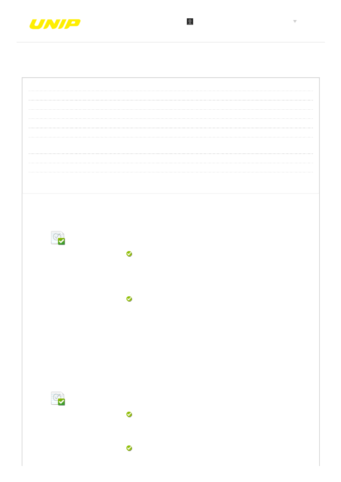 09/10/2019 Revisar envio do teste: ATIVIDADE TELEAULA I – 6551-20_... https://ava.ead.unip.br/webapps/assessment/review/review.jsp?attempt_id=_25014504_1&course_id=_41334_1&content_id=_651439_1&return_… 1/2 Revisar envio do teste: ATIVIDADE TELEAULA I INTRODUÇÃO À EDUCAÇÃO A DISTÂNCIA 6551-20_55801_R_20192 CONTEÚDO Usuário fabiane.sturm @unipinterativa.edu.br Curso INTRODUÇÃO À EDUCAÇÃO A DISTÂNCIA Teste ATIVIDADE TELEAULA I Iniciado 09/10/19 20:39 Enviado 09/10/19 20:41 Status Completada Resultado da tentativa 0 em 0 pontos Tempo decorrido 1 minuto Autoteste O aluno responde e o resultado do aluno não é visível ao professor. Resultados exibidos Todas as respostas, Respostas enviadas, Respostas corretas, Comentários, Perguntas respondidas incorretamente Pergunta 1 Resposta Selecionada: d. Respostas: a. b. c. d. e. Feedback da resposta: Em ____, a Universidade de Berlim acabou por se tornar modelo e exemplo de universidade moderna. Seu principal objetivo era opor-se aos moldes anteriores. 1808. 1310. 1418. 1753. 1808. 1914. Resposta: d) Pergunta 2 Resposta Selecionada: c. Respostas: a. b. c. d. Morin elaborou um conjunto de saberes necessários para a nova sociedade. Quantos seriam? 07. 12. 10. 07. 05. UNIP EAD BIBLIOTECAS MURAL DO ALUNO TUTORIAISCONTEÚDOS ACADÊMICOS 0 em 0 pontos 0 em 0 pontos fabiane.sturm @unipinterativa.edu.br 09/10/2019 Revisar envio do teste: ATIVIDADE TELEAULA I – 6551-20_... https://ava.ead.unip.br/webapps/assessment/review/review.jsp?attempt_id=_25014504_1&course_id=_41334_1&content_id=_651439_1&return_… 2/2 Quarta-feira, 9 de Outubro de 2019 20h41min08s BRT e. Feedback da resposta: 03. Resposta: c) Pergunta 3 Resposta Selecionada: e. Respostas: a. b. c. d. e. Feedback da resposta: O Instituto Universal Brasileiro (IUB) foi criado em: 1941. 1918. 1924. 1931. 1938. 1941. Resposta: e) Pergunta 4 Resposta Selecionada: a. Respostas: a. b. c. d. e. Feedback da resposta: Qual é o signi�cado da sigla TIC? Tecnologia da Informação e Comunicação. Tecnologia da Informação e Comunicação. Técnicas Informativas e Comunicacionais. Teorias da Integração e Cooperação. Terminologia da Inspeção e Colaboração. Tecnologia da Interpretação e Compreensão. Resposta: a) ← OK 0 em 0 pontos 0 em 0 pontos