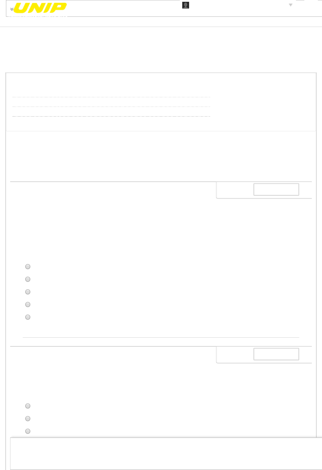 Fazer teste: QUESTIONÁRIO UNIDADE I MONITORAMENTO E CONTROLE DE POLUIÇÃO AMBIENTAL 6852-30_58010_R_20192 CONTEÚDO Informações do teste Descrição Instruções Várias tentativas Este teste permite 3 tentativas. Esta é a tentativa número 1. Forçar conclusão Este teste pode ser salvo e retomado posteriormente. a. b. c. d. e. PERGUNTA 1 A destruição da camada de ozônio pelos gases do efeito estufa (GEE) tem como consequência o aquecimento da temperatura global. Ainda que o aquecimento global veri�cado no último século consista em uma discreta elevação na temperatura atmosférica, ele tem sido su�ciente para provocar alterações signi�cativas em algumas dinâmicas naturais, como as datas de migração de determinadas espécies de aves, as épocas de reprodução de animais e de �oração das plantas, o crescimento e a despigmentação das formações de corais, entre outras. Essas alterações são indícios de que os aumentos na temperatura média do planeta: Não afetam os ecossistemas; Resultarão na extinção da humanidade em algumas décadas; Causarão uma terceira guerra mundial; Não causam grandes impactos nos ecossistemas; Poderão acarretar no desaparecimento de ecossistemas inteiros. 0,5 pontos Salvar resposta a. b. c. d. e. PERGUNTA 2 A poluição atmosférica pode desencadear desde fenômenos em escala local e regional, como a formação de microclimas nas grandes cidades, formados por episódios críticos de poluição, até fenômenos em escala global, como o aquecimento atmosférico. Do ponto de vista espacial, dividimos as fontes de poluição em: Altas e baixas; Claras e escuras; Móveis e �xas; Quentes e frias; Boas e ruins. 0,5 pontos Salvar resposta ? Estado de Conclusão da Pergunta:UNIP EAD BIBLIOTECAS MURAL DO ALUNO TUTORIAIS Clique em Salvar e Enviar para salvar e enviar. Clique em Salvar todas as respostas para salvar todas as respostas. CONTEÚDOS ACADÊMICOS vitor.silva39 @unipinterativa.edu.br 1 a. b. c. d. e. PERGUNTA 3 A pressão atmosférica, além de variar de acordo com a altitude, assume características diferentes conforme a temperatura do ar. As diferenças de pressão entre as zonas térmicas do planeta originam dois fenômenos fundamentais da dinâmica terrestre: a circulação atmosférica global e o deslocamento das massas de ar. Estes eventos na atmosfera interferem diretamente na concentração ou dispersão dos poluentes do ar. Assinale a alternativa correta quanto à classi�cação dos poluentes. Fonte de origem ou composição química. Fonte enérgica ou composição química. Fonte enérgica ou composição física. Fonte de origem ou composição física. Fonte enérgica ou composição biológica. 0,5 pontos Salvar resposta a. b. c. d. e. PERGUNTA 4 Alguns fenômenos podem ser identi�cados no processo de danos da poluição do ar sobre materiais. Entre eles, destacam-se a abrasão, a deposição e a remoção, o ataque químico direto e indireto e a corrosão eletroquímica. A umidade relativa, temperatura, luz solar, velocidade do ar, a posição no espaço do material são alguns fatores que in�uenciam os danos aos materiais em atmosferas poluídas. Assinale a alternativa que identi�ca corretamente o poluente causador deste fenômeno. Ar sem poluentes. Dióxido de enxofre. Dióxido de oxigênio. Glicose. Hemácias. 0,5 pontos Salvar resposta a. b. c. d. e. PERGUNTA 5 Como sabemos, grande parte da energia solar que atinge nosso planeta é absorvida pela superfície. Essa energia é transformada em calor, o qual aquece a atmosfera terrestre. Parte desse calor desprende-se no espaço sideral, o restante �ca aprisionado por uma camada de gases que mantêm a temperatura da atmosfera em uma média ideal para a existência de uma enorme biodiversidade de espécies no planeta. Assinale a alternativa correta, que traz o nome que os cientistas deram para este acontecimento. Efeito estufa arti�cial. Efeito estufa natural. Efeito joule. Efeito Doppler. Efeito borboleta. 0,5 pontos Salvar resposta PERGUNTA 6 Estudos mostram que houve períodos em que o ambiente terrestre apresentou temperaturas razoavelmente mais altas que as atuais e houve fases em que as temperaturas foram extremamente baixas, como nas chamadas eras glaciais. Estas mudanças de temperatura e seus re�exos na crosta terrestre in�uenciaram a formação da atmosfera como a conhecemos hoje. Com base neste contexto, assinale a alternativa que preencha corretamente a lacuna. Os especialistas atribuem essas mudanças no clima sobretudo por 0,5 pontos Salvar resposta Estado de Conclusão da Pergunta: Clique em Salvar e Enviar para salvar e enviar. Clique em Salvar todas as respostas para salvar todas as respostas. a. b. c. d. e. Os especialistas atribuem essas mudanças no clima sobretudo por _________________________. Oscilações da atividade solar; Atividades vulcânicas; Tsunamis; Ação do efeito estufa; Furacões. a. b. c. d. e. PERGUNTA 7 Nas últimas décadas, o acelerado processo de urbanização aumentou o número de grandes cidades em todo o planeta. O adensamento de construções, pessoas, meios de transportes e atividades fabris em centros urbanos veio interferir diretamente nas características climáticas em escala local e regional, dando origem ao que especialistas denominam microclima urbano. Entre as particularidades que mais se destacam no microclima dessas cidades estão as variações térmicas e a alteração da composição do ar atmosférico. No que se refere a este microclima urbano, assinale a alternativa correta. Formação de radionuclídeos. Formação de ilhas de calor. Formação de termoclima. Formação de metalímnio. Formação termodinâmica. 0,5 pontos Salvar resposta a. b. c. d. e. PERGUNTA 8 O grande problema na poluição atmosférica é o excesso, a alta concentração, pois a maioria dos poluentes também são componentes naturais do ar que respiramos. Para que a análise, controle e monitoramento das cond