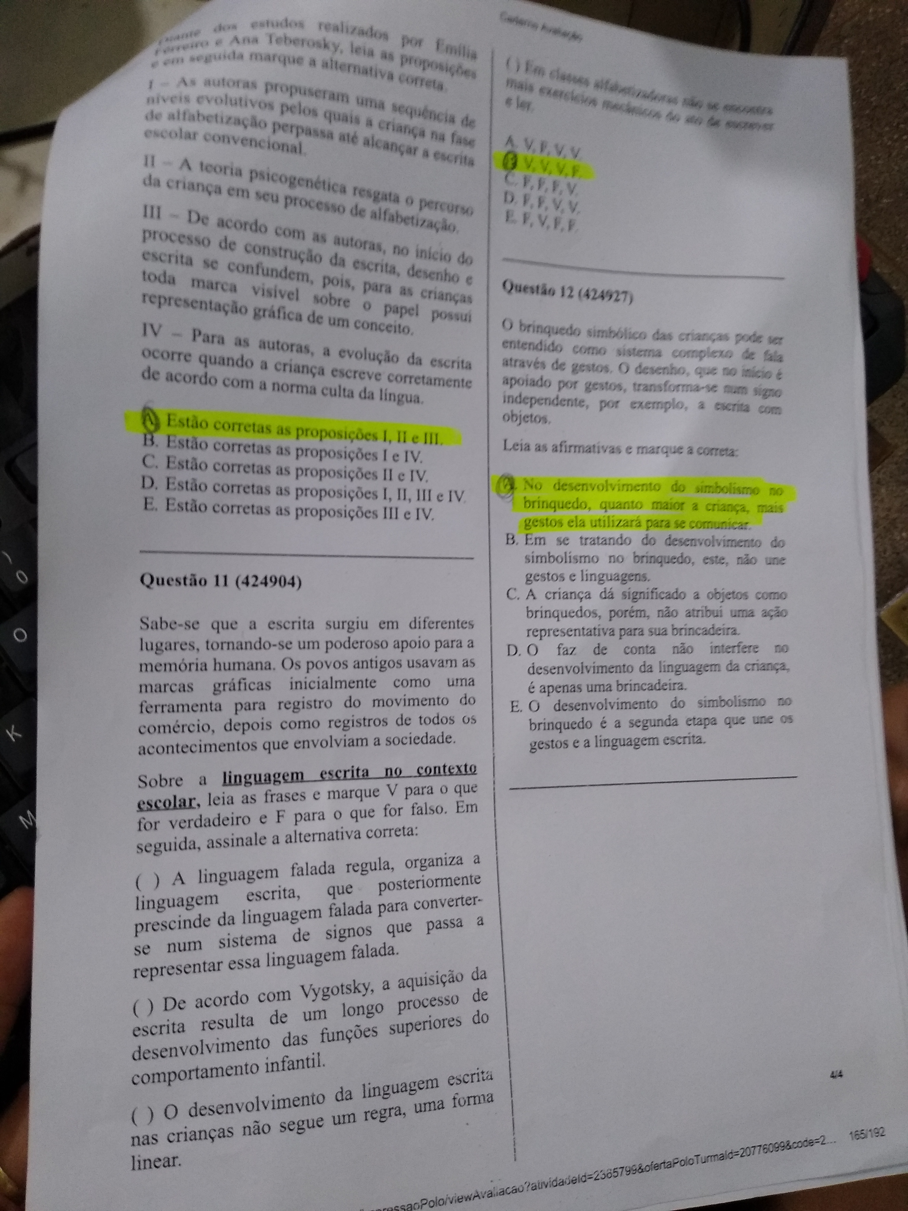 PROVA PRESENCIAL - OBS: AS PROVA VEIO TODAS IGUAS, MAIS COM A ORDE DAS QUESTÃO E RESPOSTA TUDO FORA DA ORDEM. CHEGAMOS APENSAR QUE TINHA 5 PROVA DIFERENTE NA SALA .
