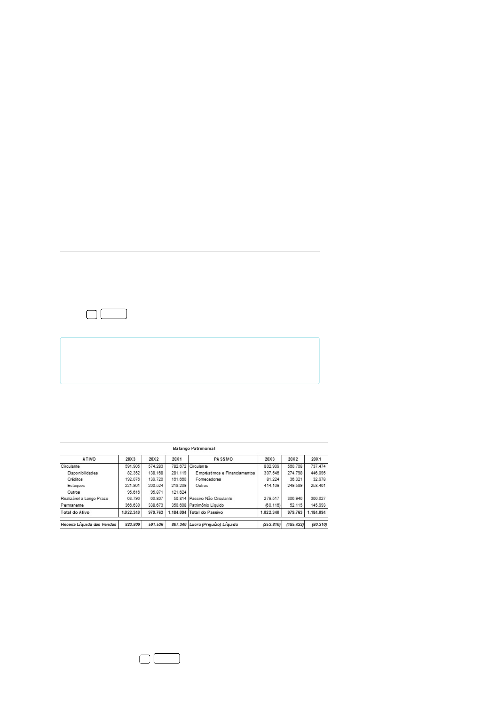 A empresa XYZ apresentou as seguintes informações, dos exercícios 20X1, 20X2 e 20X3: