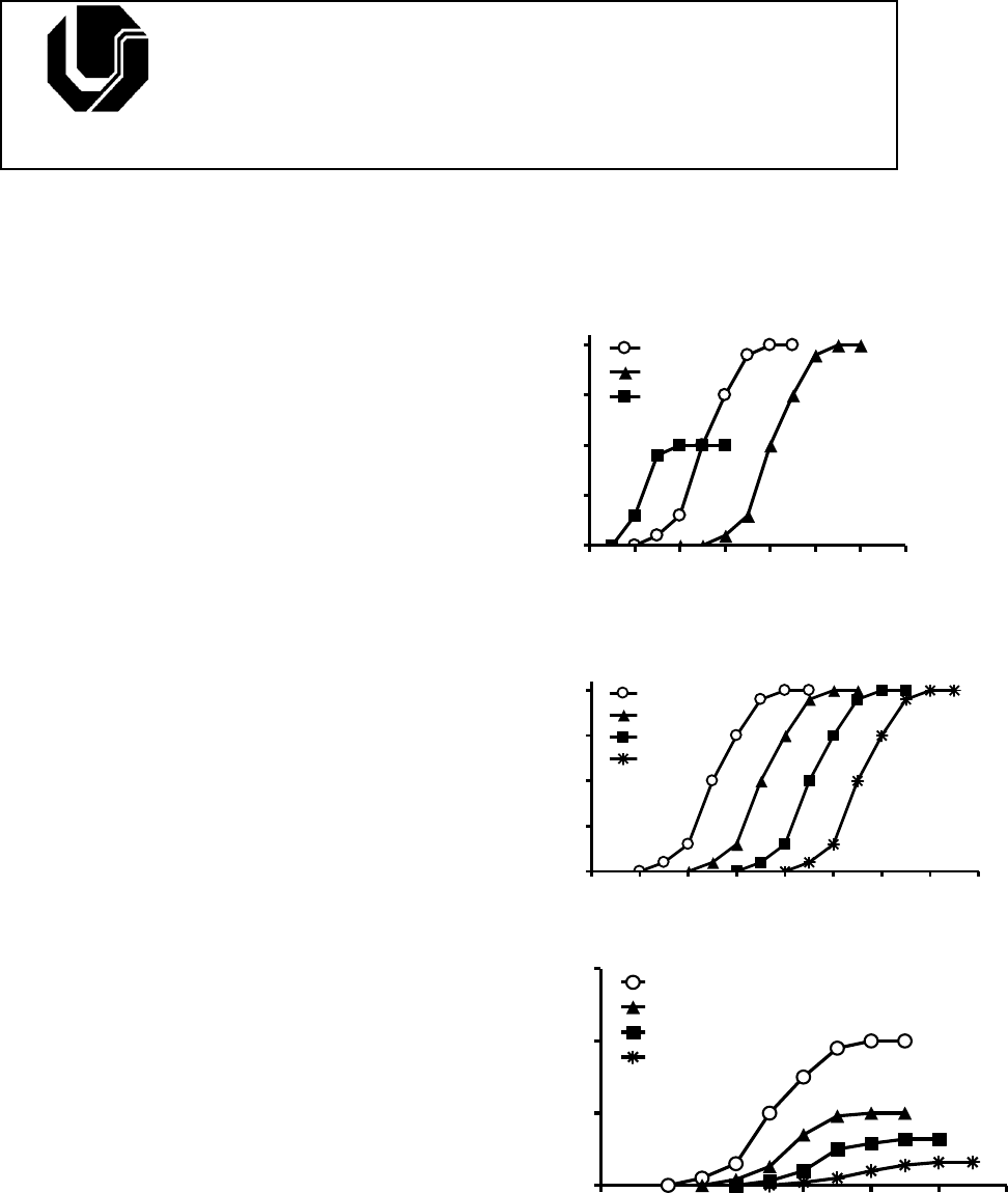 UNIVERSIDADE FEDERAL DE UBERLÂNDIA – UFU INSTITUTO DE CIÊNCIAS BIOMÉDICAS – ICBIM Disciplina de Farmacologia Estudo Dirigido (ED) 2: Farmacodinâmica – Curva Dose-Resposta e Antagonismo Docente: Dr. Luiz Borges Bispo-da-Silva 1. O que são agonista e antagonista? 2. Cite e explique os diferentes tipos de antagonismos discutidos em sala de aula. 3. A figura mostra a relação entre a concentração e a magnitude do efeito de 3 drogas diferentes (A, B e C), as quais produzem contrações de um músculo isolado por atuarem em um mesmo receptor. Descreva as diferenças entre elas e discuta possíveis explicações para essas diferenças. 4. A figura mostra a relação entre a concentração de uma droga A e a magnitude de seu efeito, na ausência e na presença da droga X em concentrações crescentes (X3>X2>X1). Descreva o efeito da droga X e discuta possíveis mecanismos envolvidos nesse efeito. OBS: a droga X não produz efeito quando administrada isoladamente e na ausência de mediadores endógenos. 5. A figura mostra a relação entre a concentração de uma droga A e a magnitude de seu efeito na ausência e na presença da droga Y em concentrações crescentes (Y3>Y2>Y1). Descreva o efeito da droga Y e discuta os possíveis mecanismos envolvidos nesse efeito. OBS: a droga Y não produz efeito quando administrada isoladamente e na ausência de mediadores endógenos. -11 -10 -9 -8 -7 -6 -5 0 50 100 150 A A + Y1 A + Y2 A + Y3 Concentração (Log Molar) Mag nitu de d o E feit o (% do Efe ito Máx imo ) -10 -9 -8 -7 -6 -5 -4 -3 0 25 50 75 100 Droga A Droga B Droga C Concentração (Log Molar) C on tr aç ão (% d o ef ei to m áx im o) -11 -10 -9 -8 -7 -6 -5 -4 -3 0 25 50 75 100 A A + X1 A + X2 A + X3 Concentração (Log Molar) Ma gn itu de d o Ef eit o (% d o Ef eit o Má xim o) 6. A figura mostra a relação entre a concentração e a magnitude do efeito de uma droga A, capaz de produzir dois efeitos diferentes (Efeito 1 e Efeito 2), na ausência e na presença da droga X. Descreva o efeito da droga X e discuta as possíveis explicações para esse efeito. OBS: a droga X não produz efeito quando administrada isoladamente e na ausência de mediadores endógenos. As 3 primeiras curvas do gráfico não diferem com relação a suas EC50. 7. Considere os seguintes dados dos agonistas A, B e C: Efeito máximo – A = 100%, B = 50% e C = 25%. EC50 - A = 10-7M, B = 10-10M e C = 10-4M. Efeito máximo na presença de W – A= 50%, B =50% e C= 5%. EC50 – A = 10-4M, B = 10-10M e C = 10-2M. Os efeitos descritos nesse exercício foram avaliados em tecidos diferentes para cada droga, isto é, A atuando no tecido A, B atuando no tecido B e C atuando no tecido C. A. Construa as curvas dose-efeito de A, B e C (em um mesmo gráfico). B. Discuta os efeitos da droga W sobre os efeitos das drogas A, B e C. A droga W não apresenta efeito nos diferentes tecidos quando administrada isoladamente e na ausência de mediadores endógenos. Orientação: utilizem a bibliografia sugerida abaixo para a realização do presente ED. Bibliografia: Mecanismo de ação dos medicamentos. In_Farmacologia moderna. Graig, C.R.; Stitzel, R.E. 6º Ed. Guanabara Koogan, 2004. Bom Estudo! -10 -9 -8 -7 -6 -5 -4 -3 0 5 10 15 A+X-Efeito 1 A-Efeito 1 A-Efeito 2 A+X-Efeito2 Concentração de A ou B (Log Molar) M ag ni tu de d o Ef ei to 1 o u 2