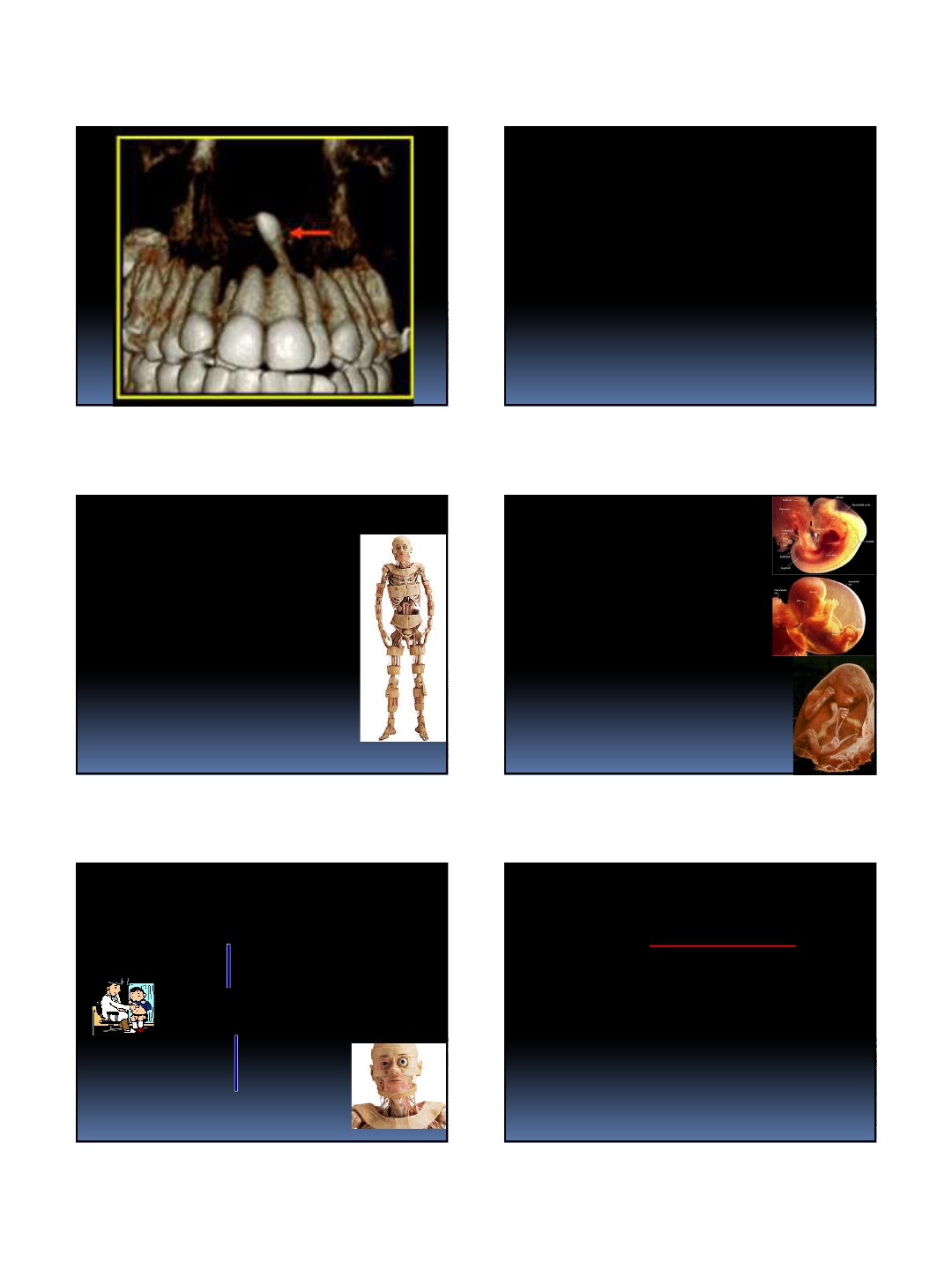 30/05/2018 1 ANOMALIAS DENTÁRIAS E DO COMPLEXO MAXILO-MANDIBULAR ANOMALIAS DENTÁRIAS E DO COMPLEXO MAXILO-MANDIBULAR ALVARES, L. C.; TAVANO, O. Curso de Radiologia em Odontologia. 5ed. São Paulo: Santos, 2009. 274p. IANNUCCI, J. M.; HOWERTON, L. J. Radiografia Odontológica - Princípios e Técnicas. 3ed. São Paulo: Santos, 2010. 526 p. WHAITES, E. Princípios de Radiologia Odontológica. 4 ed. Churchill Livingstone, inc., 2009. FREITAS, A.; ROSA, J. E.; SOUZA, I. F. Radiologia Odontológica. 5ed. São Paulo: Artes. Médicas, 2000. 776 p. NEVILLE, B. W. et al Patologia oral e maxilofacial. 2. ed. Rio de janeiro: Guanabara Koogan, 2002. 798 p. PANELLA, J. P. Fundamentos de Odontologia: Radiologia Odontológica e Imaginologia. Rio de Janeiro: Guanabara Koogan, 2006. 378 p. PASLER, F. A; VISSER, H. Radiologia odontológica: procedimentos ilustrados. 2. ed. Poto Alegre: Artmed, 2000. 332 p. WHITE, S. C.; PHAROAH, M. J. Radiologia Oral - fundamentos e interpretação. 5. Ed. Mosby-Elsevier, 2007. 744 p. ANOMALIAS - desvios da normalidade. ANOMALIAS DENTARIAS - dentes com desvios de normalidade durante a fase de desenvolvimento e erupção. • Causas locais (ambientais), hereditárias ou sistêmicas. • Grande maioria das vezes a etiologia é desconhecida (idiopática). ANOMALIAS - desvios da normalidade. ANOMALIAS DENTARIAS - dentes com desvios de normalidade durante a fase de desenvolvimento e erupção. • Causas locais (ambientais), hereditárias ou sistêmicas. • Grande maioria das vezes a etiologia é desconhecida (idiopática). CONCEITO Anomalias são distúrbios do Desenvolvimento CONCEITO Anomalias são distúrbios do Desenvolvimento ORIGEM Hereditária - fatores etiológicos atuam na fase de informação genética, promovendo alterações nas estruturas dentárias antes ou depois do nascimento. Congênita - fatores etiológicos atuam na fase de formação intra uteriana. Adquirida - fatores etiológicos atuam na fase de formação pós natal. ORIGEM Hereditária - fatores etiológicos atuam na fase de informação genética, promovendo alterações nas estruturas dentárias antes ou depois do nascimento. Congênita - fatores etiológicos atuam na fase de formação intra uteriana. Adquirida - fatores etiológicos atuam na fase de formação pós natal. CONCEITO Anomalias são distúrbios do Desenvolvimento CONCEITO Anomalias são distúrbios do Desenvolvimento FATORES ETIOLÓGICOSFATORES ETIOLÓGICOS GENÉTICOS Gênicos Cromossômicos GENÉTICOS Gênicos Cromossômicos AMBIENTAISAMBIENTAIS Físicos Químicos Biológicos Físicos Químicos Biológicos ALTERAÇÕES DENTÁRIAS POR FATORES AMBIENTASIS ALTERAÇÕES DENTÁRIAS POR FATORES AMBIENTASIS Efeitos Ambientais no Desenvolvimento das Estruturas Dentárias: • Hipoplasia de Turner • Hipomineralização das Cúspides dos molares • Hipoplasia causada por terapia anti-neoplásica • Fluorose Dentária • Hipoplasia Sifilítica Efeitos Ambientais no Desenvolvimento das Estruturas Dentárias: • Hipoplasia de Turner • Hipomineralização das Cúspides dos molares • Hipoplasia causada por terapia anti-neoplásica • Fluorose Dentária • Hipoplasia Sifilítica 30/05/2018 2 HIPOPLASIA DE TURNERHIPOPLASIA DE TURNER • Dente permanente com defeito hipoplásico na coroa • Causa: Infecção periapical do dente decíduo, trauma mecânico transmitido através do dente decíduo • Mais comum nos pré-molares inferiores – maior probabilidade de cárie nos molares decíduos • Gravidade do efeito proporcional à gravidade da infecção ou trauma e do estágio de desenvolvimento do dente permanente • Alteração do contorno normal do dente afetado é visível na radiografia HIPOPLASIA DE TURNERHIPOPLASIA DE TURNER • Pequenos defeitos podem ser confundidos com cárie, mas são facilmente diferenciados no exame clínico TRATAMENTO • Restauração HIPOPLASIA DE TURNERHIPOPLASIA DE TURNER HIPOPLASIA DE TURNERHIPOPLASIA DE TURNER HIPOPLASIA DE TURNERHIPOPLASIA DE TURNER HIPOPLASIA DE TURNERHIPOPLASIA DE TURNER 30/05/2018 3 • Hipomineralização molar-incisivo – HMI • Defeito do esmalte dentário de origem sistêmica que atinge os primeiros molares e incisivos permanentes. • Vários fatores etiológicos são citados como causa das alterações, mas sua etiologia ainda permanece desconhecida. • Esmalte de um ou mais primeiro molar permanente. • Cor branca, amarela ou marrom – nítida diferença entre o esmalte defeituoso e o normal. • Esmalte macio e poroso semelhante a giz ou queijo holandês velho – fratura –sensib. frio calor e trauma mecânico – dificuldade escovação – cárie. • incisivos afetados com frequência – defeitos menos graves. HIPOMINERALIZAÇÃO DAS CÚSPIDES DOS MOLARES HIPOMINERALIZAÇÃO DAS CÚSPIDES DOS MOLARES FONTE: Sâmila Gonçalves Barra et al. Hipomineralização molar-incisivo: relato de caso clínico. • Faculdade de Odontologia de Lins/Unimep • 24(1) 64-68 • jan.-jun. 2014. HIPOMINERALIZAÇÃO DAS CÚSPIDES DOS MOLARES HIPOMINERALIZAÇÃO DAS CÚSPIDES DOS MOLARES FONTE: Sâmila Gonçalves Barra et al. Hipomineralização molar-incisivo: relato de caso clínico. • Faculdade de Odontologia de Lins/Unimep • 24(1) 64-68 • jan.-jun. 2014. HIPOMINERALIZAÇÃO DAS CÚSPIDES DOS MOLARES HIPOMINERALIZAÇÃO DAS CÚSPIDES DOS MOLARES •Alteração de desenvolvimento secundária à radioterapia ou quimioterapia. • Alterações clínicas – paciente abaixo dos 12 anos- mais grave em pacientes abaixo dos 5 anos. • Grau e gravidade – relacionada com idade, tipo de tratamento, dose e campo de radiação. • Hipodontia, microdontia, hipoplasia do esmalte e radicular, pigmentações. • Quimioterapia isolada – alterações mais leves. HIPOPLASIA TERAPIA ANTI-NEOPLÁSICA HIPOPLASIA TERAPIA ANTI-NEOPLÁSICA Radiografia panorâmica alterações dentofaciais: agenesias, rizogênese incompleta, dentes retidos, perdas dentárias precoces. Fonte: GIANNINI A. Man