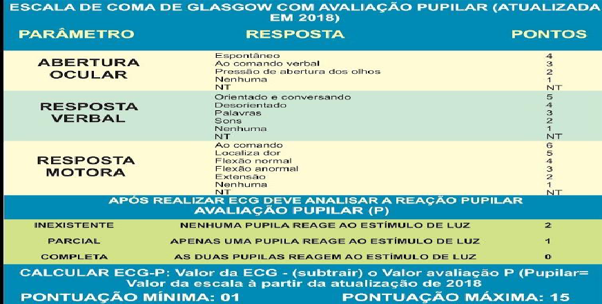Classificação do TCE Para a classificação de gravidade do TCE utiliza-se a Escala de Coma de Glasgow – ECG (TEASDALE; JENNETT, 1974). Esta é uma escala mundialmente aceita, já que constitui um método fácil para avaliar não só a gravidade do TCE, mas também da deterioração do quadro neurológico à medida que se deve repetir a aplicação da escala ao longo do atendimento clínico. Permite, portanto, a construção de um parâmetro mensurável sobre a evolução do quadro clínico do paciente. Além disso, esta escala uniformiza o atendimento, dando aos profissionais uma maneira simples e rápida de comunicação ao citar a “nota” dada ao paciente após cada avaliação. Seguindo esta escala, o TCE pode ser classificado como leve (13 a 15 pontos), moderado (9 a12 pontos) ou grave (3 a 8 pontos). Pela gradação obtida com a aplicação da Escala de Glasgow, pode-se ter uma indicação dos cuidados assistenciais requeridos pela pessoa com TCE. Assim, sabe-se, por exemplo, que todo o paciente com ECG < 8 deve ser intubado para proteção de vias aéreas e manutenção da ventilação. Os demais cuidados preconizados serão descritos mais detalhadamente no item de cuidados à pessoa com TCE. Principais sequelas do TCE das incapacidades resultantes do TCE podem ser divididas em três categorias: físicas, cognitivas e emocionais/comportamentais. As físicas são diversificadas, podendo ser motoras, visuais, táteis, entre outras. As cognitivas frequentemente incluem principalmente problemas de atenção, memória, e funções executivas. As incapacidades são, em geral, as perdas de autoconfiança são, em geral, a perda de autoconfiança, motivação diminuída, depressão, ansiedade, dificuldade de autocontrole, esta representada mais comumente por desinibição, irritabilidade e agressão. A lesão do TCE pode comprometer todos os membros ocorrendo, concomitantemente, alterações de tônus e de postura. Inicialmente o tônus encontra-se reduzido e mais usualmente evolui para um quadro de espasticidade, podendo levar à instalação de um quadro que contribui para a ocorrência de contraturas e deformidades. A presença de ataxia, com dificuldade para coordenação de movimentos, também pode ocorrer em decorrência de lesões ao nível do cerebelo. Assim como pode haver a presença de tremores involuntários, resultante da lesão do sistema extrapiramidal, mais especificamente nos núcleos da base (CAVALCANTI; GALVÃO, 2007). Após o TCE, o indivíduo também pode apresentar distúrbios no planejamento de funções expressivas voluntárias – apraxias, tais como falar, escrever e desenhar, manipular, realizar gestos físicos, expressões faciais e movimentos, constituindo todos esses, comportamentos observáveis. Na presença da apraxia, a pessoa pode ter dificuldade de imitar um movimento, mas ser capaz de executar o mesmo movimento em outro contexto. Por exemplo, a solicitação de se imitar como trancar uma porta é incapaz de realizar a tarefa, mas ao ser solicitado para abrir a porta é capaz de fazê-la – apraxia ideomotora; pode ter dificuldade no uso de objetos comuns devido à perda da capacidade de executar uma sequência complexa de movimentos coordenados, mas a capacidade de imitação é preservada – apraxia ideativa; ou ainda, perde a capacidade de desenhar ou copiar uma figura geométrica ou ordenar blocos de determinadas maneira – apraxia construtiva. Contudo, considerando que uma comunicação eficiente não depende apenas das habilidades linguísticas, mas da interação dessas com outras habilidades cognitivas, geralmente comprometidas no TCE, a alteração da comunicação desses indivíduos pode ser decorrente de distúrbios linguístico-cognitivos, sendo esses quadros mais frequentes que as afasias clássicas. FATORES DE RISCO Mecanismos de lesão Traumatismos penetrantes têm pior prognóstico do que aqueles sem lesão penetrante. Pacientes com lesão penetrante são mais propensos a apresentar nível na escala de coma de Glasgow (ECG) mais baixo, indicando pior prognóstico e morte precoce. Pedestres e ciclistas sofrem piores lesões do que em acidentes por veículos a motor, e a ejeção do veículo causa maior risco de lesão intracraniana. Outros dados são levados em conta quando há trauma craniano, como a idade do paciente, influenciando no tipo de seu mecanismo e no prognóstico da lesão sofrida, tanto primária quando secundária ao trauma. O TRAUMATISMO CRÂNIO-ENCEFÂLICO (TCE) é a lesão mais frequente e a principal causa de morte nos pacientes vítimas de causas externas-acidentes de trânsito, homicídios, suicídios e demais acidentes 11, 14, 36. Porém estas vítimas podem apresentar lesões em diferentes regiões corporais, caracterizando-se como POLITRAUMATIZADAS. Tratamento O tratamento a este paciente deve ser feito em três fases. A primeira compreende o atendimento correto no local do acidente e remoção adequada ao hospital. Cabendo a segunda abordagem ao atendimento inicial na sala de emergência para avaliação diagnóstica e terapêutica com a finalidade de estabilização da função ventilatória e de estabilização hemodinâmica do paciente. Para que possa ser instituída a segunda etapa do tratamento o tratamento clínico e/ou cirúrgico com medidas de suporte básico e específicos. (GREENBERG, 1996). Outra medida adotada é a Manutenção da pressão de perfusão cerebral a todos os tecidos. PPC = PAM-PIC. Em todo paciente com Traumatismo Crânio Encefálico (TCE) que apresenta HIC deve-se manter a pressão arterial média moderadamente elevada, pois se a pressão de perfusão cerebral for menor que 60mmHg ocorre perda do mecanismo da auto-regulação cerebral e o leito vascular fica totalmente passivo em relação às variações pressóricas (GREENBERG, 1996). Avaliação do trauma A estratificação depende de fatores de risco e da avaliação clínica do paciente. Podemos estratificar o grau de risco