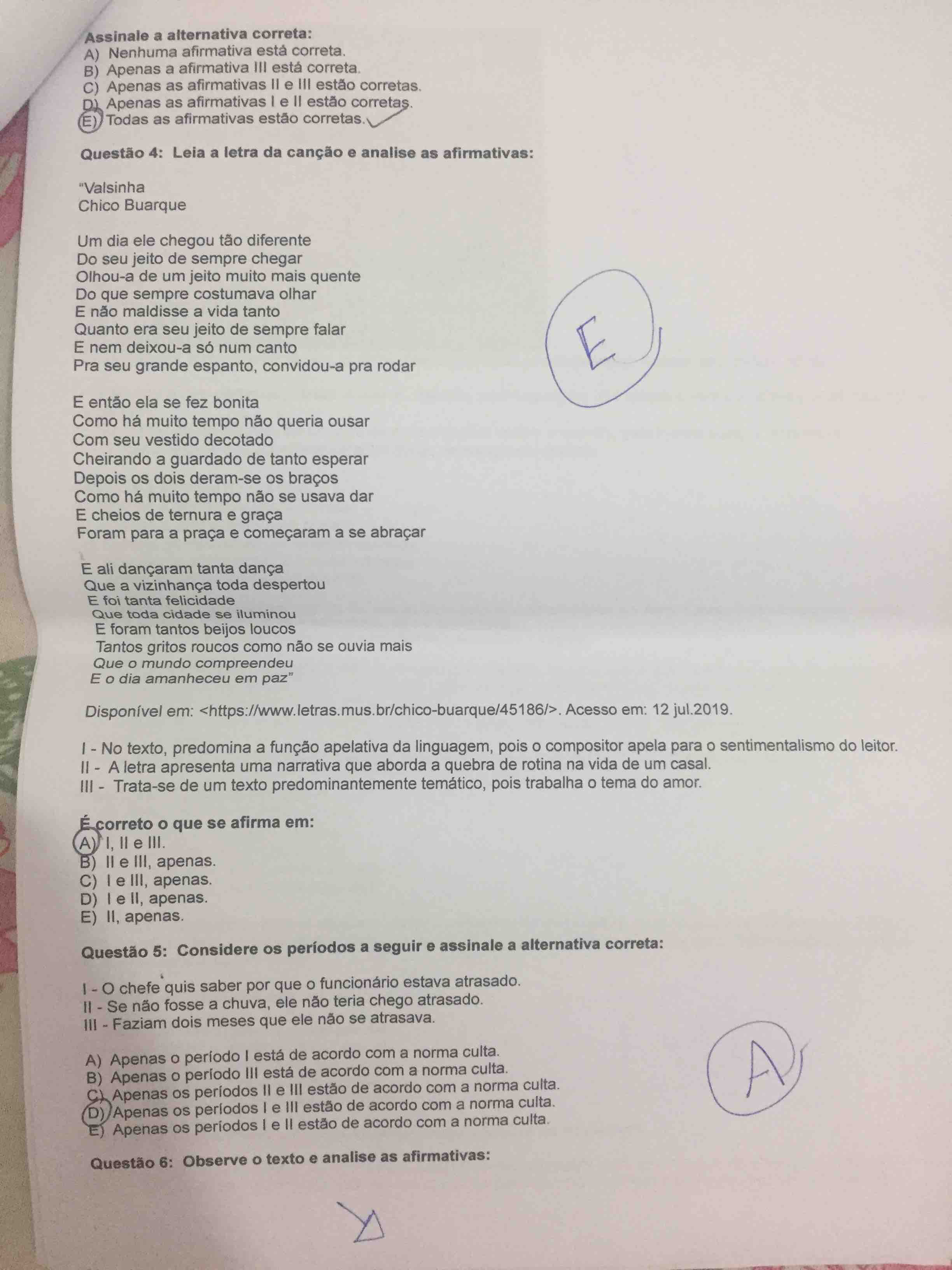 Considere os períodos a seguir e assinale a alternativa correta: O chefe quis saber por que o funcionário estava atrasado. Se não fosse a chuva, ele não teria chegado atrasado. Faziam dois meses que ele não se atrasava. A) Apenas o período I está de acordo com a norma culta. B) Apenas o período III está de acordo com a norma culta. C) Apenas os períodos I e III estão de acordo com a norma culta. D) Apenas os períodos II e III estão de acordo com a norma culta. E) Apenas os períodos I e II estão de acordo com a norma culta.