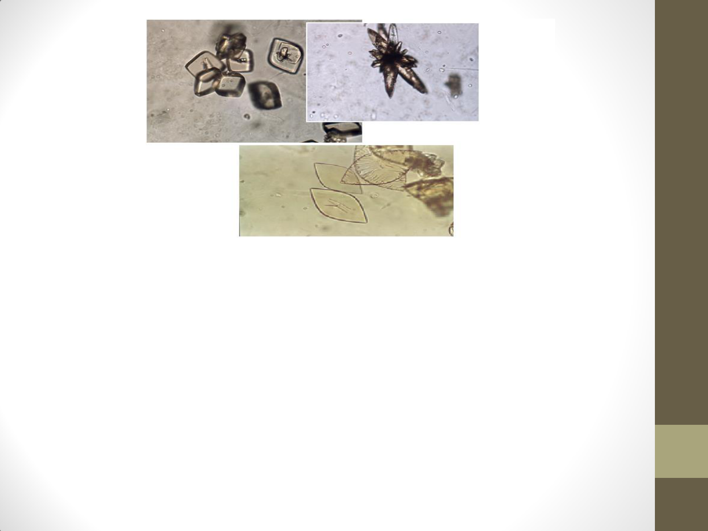 EAS – Elementos Anormais e Sedimentoscopia Renata Jarach Exame físico Resultado Valores ref referenciais Cor Amarelo Citrino Cheiro “Sui generis” Aspecto Límpido Depósito Ausente Densidade 1015 a 1025 Exame químico Resultado Valores referenciais Proteínas mg/dL < 30mg/dL Glicose mg/dL Ausente Corpos Cetõnicos Ausente Bilirrubina Ausente Urobilinogênio < 1mg/dL Sg: Hb Ausente Sg: Hms Ausente pH 5 a 6 (ácida) Nitrito Negativo Leucócito Negativo Exame microscópico Resultado Valores referenciais Leucócitos /mL ≤ 10000/mL Hms Isomórficas /mL ≤ 10000/mL Hms Dismórficas /mL ≤ 1% do total de Hm Células Tubulares /mL ≤ 1500/mL Células Uroteliais /mL ≤ 10000/mL Cilindros /mL ≤ 1750/mL (hialinos) Filamentos de muco Ausente Cristais Ausente Fungos Ausente Parasitas Ausente Exame Microscópico EAS: Sedimento Há duas estratégias propostas para o estudo do sedimento urinário (estruturas particuladas): • Qualitativo e semi- quantitativo • Quantitativo (padronização) Exame microscópico Exame microscópico Resultado VR Leucócito /mL ≤ 10.000/mL Sangue (Hm) /mL ≤ 10.000/mL Hm isomórfica ≤ 10.000/mL Hm dismórfica < 1% Hm total Sangue (Hb) Ausente Células epiteliais /mL ≤ 10.000/mL Cilindros /mL ≤ 1750/mL (hialinos) Filamento de muco Ausente Cristais Ausente EAS – sedimento Sedimento Qualitativo e semi-quantitativo Filamento de Muco Cristais Parasitas Fungos Não se deve fazer citação de microbiota no EAS EAS – sedimento Existem vários sistemas comerciais manuais ou semi-automáticos para o exame semi-quantitativo: UriSystem (Fisher Scientific, Pittsburgh, PA) KOVA System (ICL Scientific, Fountam Valley, CA) Count-6 or Count-10 systems (V-Tech, Inc. Palm Desert, CA) Cen-Slide 1500 System (Urohealth, formely DA VSTAR, Costa Mesa, CA) R/S 2000 (DiaSys, Waterbury, CT) Há sistemas totalmente automáticos (resultados quantitativos): International Remote Imaging Systems, Inc. (Yellow IRIS - morfometria) Model 300 or 500 Urinalysis Workstation 900 Dx Urine Pathology System Sysmex F100 (citometria de fluxo-imunoaspectors) EAS – sedimento Optamos por um sistema manual, controlado e com alto nível de segurança, que oferece resultados semi- quantitativos e quantitativos. A escolha teve a intenção de aproximar o mais possível aos resultados dos equipamentos automáticos, dando a importância que o líquido merece e oferecendo confiabilidade ao processo. EAS – sedimento É uma metodologia proposta na década de 40 por Thomaz Addis, utilizando a câmara de Neubauer e que originalmente trabalhava com amostra de urina de 12 horas – Contagem de Addis O método foi modificado para trabalhar com amostra isolada (EPM 1981) EAS – sedimento – preparação/metodologia • Amostra: • isolada de jato médio após higiene da vulva ou glande do pênis com sabão e água abundante (não enxugar). Manter a amostra sob refrigeração (4-8oC) até o exame • Material: • Tubo cônico • Centrífuga • Bomba de vácuo (não obrigatório) • Pipeta automática • Câmara de Neubauer • Microscópio • Condensador de microscopia simples • Condensador de contraste de fase (não obrigatório) EAS – Estudo sistematizado da urina EAS – Estudo sistematizado da urina EAS – Estudo sistematizado da urina EAS – Estudo sistematizado da urina Bomba de vácuo (obrigatório) EAS – Estudo sistematizado da urina Fonte: www.pathology.washington.edu EAS – Estudo sistematizado da urina Contraste de Fase EAS – Estudo sistematizado da urina Câmara de Suta EAS – Estudo sistematizado da urina Câmara de Neubauer EAS – sedimento – preparação/metodologia Técnica/amostra centrifugada: • Homogenizar bem a amostra e colocar 10ml em tubo cônico; • Centrifugar por 5 minutos a 1500-2500 rpm (750g); • Decantar o sobrenadante para 1 ml de sedimento; • Homogenizar bem o sedimento; • Encher a câmara de Neubauer; • Aguardar 30 segundos; • Levar ao microscópio e verificar a distribuição das estruturas na área da câmara em aumento de 100x (10 x 10); • Passar para o aumento de 400x (10 ocular e 40 na objetiva) e contar leucócitos, hemácias, células epiteliais e cilindros nos 4 quadrantes laterais. As outras estruturas devem ser observadas em toda a extensão da câmara. EAS – Estudo sistematizado da urina Fonte: Divisão de Líquidos Corporais e Coordenação de Qualidade do Padrão Laboratório Clínico. Método: Thomaz Addis modificado para amostra isolada EAS – sedimento A câmara de Neubauer e outros instrumentos de contagem (Nageotti, Fuchs Rosenthal) tem área e volume conhecidos e controlados, sendo crítico a homogeinização da amostra em todas as etapas do procedimento. Neubauer 0.1mm3/quadrante (0.0001ml) Fonte: LIMA, O – Estudos de Laboratório Aplicado à Clínica. Guanabara Koogan, 1981 EAS – sedimento – preparação/metodologia Cálculos/amostra centrifugada: • Somar as estruturas contadas no 4 quadrantes laterais (leucócitos, hemácias, células epiteliais e cilindros) cada tipo por vez e multiplicar pelo fator de 250, conforme fórmula abaixo. Fator = volume final vol. inicial x vol. contado-Câmara Fator = 1 = 250 10 x 0,0004 EAS – Estudo sistematizado da urina Método: Thomaz Addis modificado para amostra isolada Fonte: Divisão de Líquidos Corporais e Coordenação de Qualidade do Padrão Laboratório Clínico. (?) 1 mm 1 mm •Área=1x1=1mm2 0,1 mm •Volume=1x1x0,1=0,1mm3 3 hm ? 0,1mm3x10→1mm3 3x10hm/0,1 →30/mm3 1mm3x1000→1ml 30 x 1000/ml →30000/ml /0,1mm3 6 x 10000=30000/ml 2 (quadrantes) Câmara de Neubauer CRÍTICO 1. Homogenizar bem e encher a câmara 2. Aguardar 30 segundos 3. Observar distribuiçao das estruturas na extensão da câmara LEUCÓCITOS (≤ 10000/mL) Sedimento Quantitativo Leucócitos (≤ 10000/ml) Leucócitos são esferas granulosas, com cerca de 12 u m de diâmetro, que normalmente apresenta-se morfologicamente esférico ou oval, muito semelhantes às células tubulares C