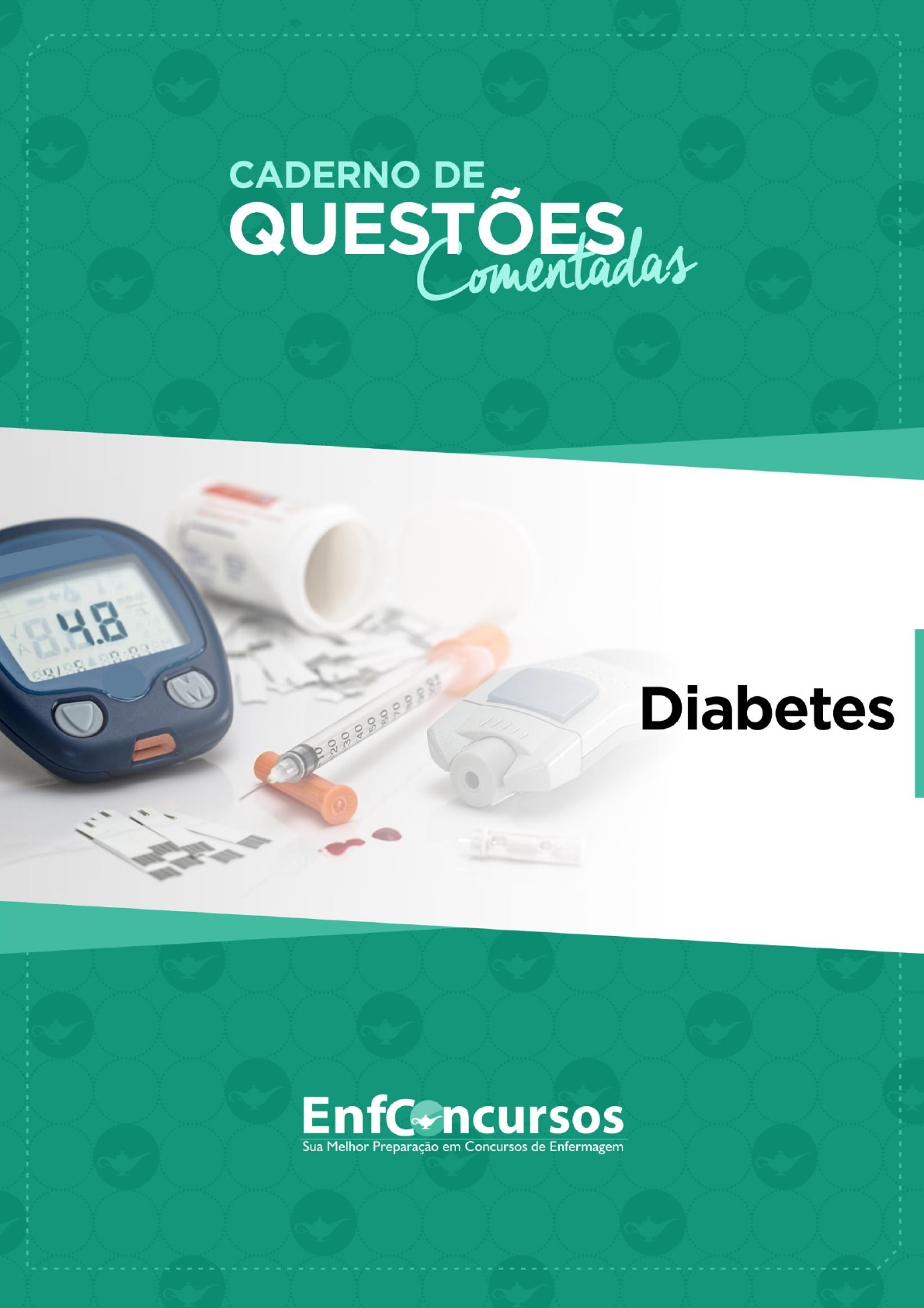 INSTRUÇÕES Olá, Família! Bem-vindo ao nosso caderno de questões comentadas. Você sabe que uma das partes importantes do nosso ciclo E3R de preparação para Concursos de Enfermagem é a resolução de questões e simulados. Já sabe também que o ideal é que essas questões estejam separadas por disciplina e estejam distribuídas por todo o conteúdo. Nós, do EnfConcursos, sabemos que seu tempo é mais que importante durante o processo de preparação; por isso, preparamos este caderno. Nele, você tem questões distribuídas por todo o conteúdo cobrado em provas de enfermagem, dentro dessa disciplina. Ele está dividido em 3 partes: 1. Simulado 2. Gabarito 3. Questões Comentadas É importante que, primeiramente, você tente resolver o simulado sem consultar o gabarito, só então leia o comentário das questões. Agora vem a grande dica! Aquilo que diferencia os aprovados de todo o resto: Quando estiver conferindo o gabarito, marque o seu desempenho/impressão em cada questão: Siga a seguinte regra: • Tenho domínio do assunto: se você domina o assunto e acerta todas as questões; • Reler o comentário: se, apesar de ter resolvido corretamente, precisar fixar algum ponto; • Refazer essa questão: se você precisa voltar a estudar o assunto e volta à questão; • Encontrei dificuldade para responder: se você não sabia como responder ou não estudou este assunto. Isso vai dar a você uma ideia do que já sabe e o que precisa melhorar na disciplina! Sucesso! E bons estudos. Hugo Valentim Editor Chefe e instrutor de técnicas de estudos SIMULADO 1. (2015/INSTITUTO AOCP/EBSERH). O diabetes mellitus é: a) uma alteração da produção de insulina, com deficiência da mesma. b) um grupo de distúrbios metabólicos resultantes de defeito da ação da insulina, na secreção de insulina ou em ambas. c) uma deficiência na ação da insulina. d) uma resistência à ação da insulina em nível periférico. e) uma falência completa do pâncreas exócrino. 2. (2015/CONSULPLAN/HOB). Acerca do Diabetes mellitus, assinale a alternativa correta. a) É uma doença metabólica de etiologia variada. b) Uma das suas causas é a destruição de células do fígado. c) O Diabetes mellitus tipo 1 é a forma mais prevalente na população. d) A prevalência da doença na população está diminuindo devido ao diagnóstico cada vez mais precoce. 3. (2013/FUNCAB/SESACRE). A doença caracterizada por uma deficiência absoluta de insulina causada pela destruição das células β pancreáticas é denominada: a) hipoparatireoidismo. b) pancreatite. c) bósio. d) diabetes do tipo 1. e) diabetes do tipo 2. 4. (2013/IBFC/ILSL). Em relação ao Diabetes, assinale a alternativa correta: a) O Diabetes Mellitus do tipo 1 é consequente à destruição de células beta do pâncreas, o que leva à deficiência absoluta de insulina e tendência à cetoacidose. Geralmente, tem seu início na infância ou na adolescência. b) A insulina regular tem ação de 1 a 3 horas, com pico de ação de 5 a 7 horas, sendo utilizada para manutenção da glicemia. c) A insulina regular deve ser aplicada exclusivamente por via subcutânea e a insulina NPH pode ser aplicada por diferentes vias (subcutânea, intramuscular e endovenosa). d) Os rodízios de locais de aplicação devem ser recomendados apenas para a insulina NPH, que é utilizada para manutenção diária. 5. (2012/UFPB/UFPB). Um adolescente de 13 anos entrou em coma cetoacidótico. Considerando esse caso, julgue cada uma das assertivas abaixo: O indivíduo tem diabetes tipo I. A. Certo B. Errado 6. (2014/FUNDEP (Gestão de Concursos). Os tipos de diabetes mellitus estão apresentados a seguir, EXCETO: a) Tipo 1. b) Tipo 2. c) Gestacional. d) Insípidos. 7. (AOCP/EBSERH/HDT-UFT-TO/2015). Uma mulher, professora universitária, tem uma filha de 6 anos que é portadora de diabetes tipo 1. Ela pesquisou em sites da internet orientações para entender a patologia de sua filha. Referente ao assunto, assinale a alternativa que NÃO se enquadra como Diabetes tipo 1. A) O termo diabetes tipo 1, indica o processo de destruição da células alfa que leva ao estágio de deficiência absoluta de insulina. B) A administração de insulina é necessária para prevenir cetoacidose. C) A destruição das células beta é geralmente causada por um processo autoimune. D) O processo autoimune pode ser detectado por autoanticorpos circulantes, como antidescarboxilase do ácido glutâmico, antiilhotas e anti-insulina. E) A destruição das células beta, em geral, é rapidamente progressiva, ocorrendo principalmente em crianças e adolescentes, mas pode ocorrer também em adultos. 8. (2014/FUNDEP (Gestão de Concursos). Com relação à prevenção de Diabetes Mellitus, assinale a alternativa CORRETA. a) Em indivíduos com alto risco (com tolerância à glicose diminuída), pode-se prevenir, ou ao menos retardar o aparecimento do diabetes tipo 2. b) Dietas precárias de glicose associadas a exercícios físicos podem prevenir diabetes tipo 1. c) Durante a gravidez, o controle pressórico é essencial para a prevenção de diabetes gestacional. d) Para a prevenção de diabetes insípidos, é necessária baixa ingestão de carboidratos. 9. (2016/COPESE – UFPI). NÃO constitui um fator de risco para a doença Diabetes Mellitus: a) Desnutrição. b) História familiar. c) Não praticar atividade física – sedentarismo. d) Hipertensão arterial. e) Colesterol e triglicerídeos elevados. 10. (2016/FCC/TRT - 23ª REGIÃO (MT). Constitui fator de risco não modificável para Diabetes Melito: a) obesidade central. b) antecedente familiar de diabetes. c) hipertensão arterial. d) diabetes gestacional prévio. e) dislipdemia. 11. (2016/FUNIVERSA/IF-AP). Os principais sinais clínicos de um paciente com diabetes mellitus são: a) polifagia, disquesia, poliúria e polidipsia. b) poliúria, perda de peso, polidipsia e epistaxe. c) polifagia, coprofagia, poliúria e andar plantígrado