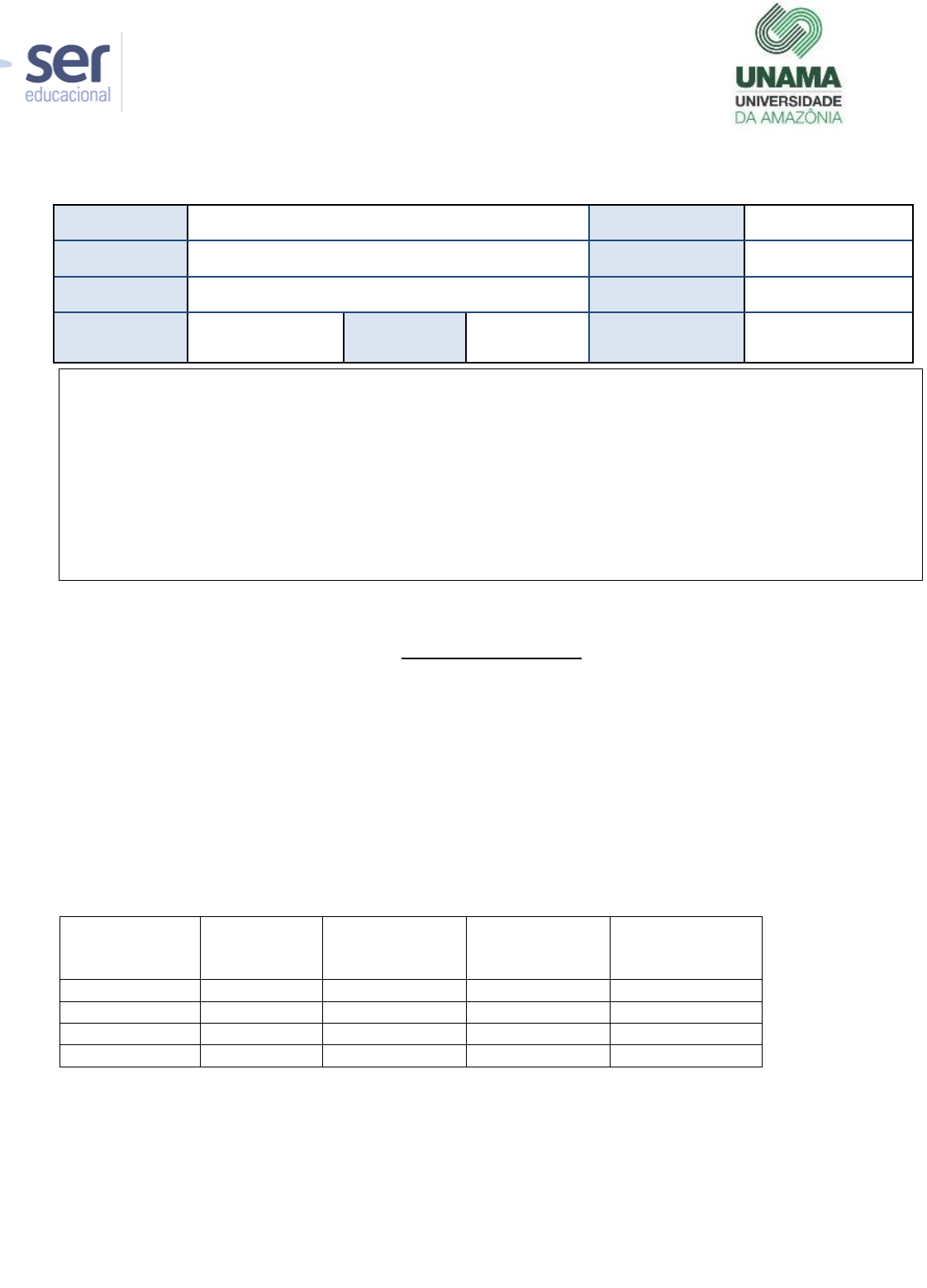 UNIVERSIDADE DA AMAZÔNIA CURSO DE GRADUAÇÃO EM FARMÁCIA DISCIPLINA : BIOQUIMICA CLINICA PROVA PRÁTICA ALUNO MATRÍCULA DISCIPLINA BIOQUIMICA CLINICA DATA DA PROVA 25/11/19 PROFESSOR CINTHYA QUARESMA TIPO DE PROVA PROVA PRÁTICA TURMA FARMACIA CÓDIGO DA TURMA 7NMA NOTA CASOS CLINICOS CASO CLÍNICO 01 – Paciente de 76 anos de idade, sexo masculino, branco, com falência renal crônica e hipertensão de longa data, foi internado para realização de cirurgia não-cardíaca. O paciente passou por um período de hipotensão intraoperatória que se estendeu para o período pós-operatório e necessitou de tratamento com agentes pressóricos. Várias horas depois a rotina do pós-operatório mostrou alterações no eletrocardiograma (ECG) entretanto o paciente não tinha nenhuma dor no peito, dispnéia ou qualquer outro sintoma. O primeiro resultado de dosagem de enzimas cardíacas (CK, CK-MB, troponina I) foi consistente com um novo infarto do miocárdio. O paciente permaneceu assintomático e seu ECG continuou a apresentar as mesmas alterações. Dosagens repetidas das enzimas cardíacas confirmaram a presença de infarto do miocárdio. DIA | HORA CK (normal 0- 200 IU/L) CK-MB (Normal <7 IU/L Troponina I (Normal <1,5ng/ml) 1 00:15 1494 33,9 66,6 2 10:40 1544 54,2 83,1 3 17:24 2286 64,5 125,7 4 23:40 2536 65,4 141,7 Questões 1)Qual a importância do uso de marcadores bioquímicos no diagnóstico do IAM em relação ao eletrocardiograma e aos sinais clínicos? 1. Comente sobre as isoenzimas da creatino-quinase. 2. Explique como a análise de uma isoenzima da creatino-quinase poderia ser útil no diagnóstico desta doença. ATENÇÃO: - A avaliação somente poderá ser entregue depois de decorridos 50min de seu início. - Utiliz - Caneta esferográfica azul ou preta. Provas entregues escritas a lápis NÃO serão corrigidas. - Será atribuída nota zero ao aluno que devolver sua prova em branco, independentemente de ter assinado a Ata de Prova. - Ao aluno flagrado utilizando meios ilícitos ou não autorizados pelo professor para responder a avaliação será atribuída nota. zero e, mediante representação do professor, responderá a Procedimento Administrativo Disciplinar, com base no Código de Ética. UNIVERSIDADE DA AMAZÔNIA CURSO DE GRADUAÇÃO EM FARMÁCIA DISCIPLINA : BIOQUIMICA CLINICA PROVA PRÁTICA 3. Qual a relação do aumento da concentração da creatino-quinase e da lactato- desidrogenase com o dano causado ao miocárdio? 4. Comente sobre a importância da troponina no diagnóstico e acompanhamento do IAM, comparando com outros marcadores bioquímicos. 5. O que seria um marcador bioquímico ideal do IAM? CASO CLÍNICO 02 J.A.M., 37 anos, masculino, deu entrada na emergência do Hospital Universitário sentindo dor precordial de forte intensidade, com irradiação para o membro superior esquerdo e região mandibular esquerda. O exame eletrocardiográfico foi sugestivo de infarto agudo do miocárdio (IAM). Ao entrevistar o paciente, você pode constatar que havia história importante de cardiopatia na família (pai e um irmão com história de IAM e dislipidemia). Durante o exame físico você observou xantomas nos tendões de Aquiles e nos tendões extensores da mãos; xantelasmas ao redor das pálpebras, além da presença de arco corneal senil bilateralmente. Os exames laboratoriais solicitados apresentaram os seguintes resultados: triglicerídeos -> 150 mg/dl (normal: até 200 mg/dl) colesterol total -> 550 mg/dl (normal: até 200 mg/dl) HDL – colesterol -> 32 mg/dl (normal: 35 – 55 mg/dl) LDL – colesterol -> 488 mg/dl (normal: até 159 mg/dl) VLDL – colesterol -> 40 mg/dl (normal: até 36 mg/dl) Aspecto do soro -> límpido (normal: límpido) CK-MB (creatino kinase) -> muito aumentada 01.Explique a possível causa da hipercolesterolemia neste caso. 02.Qual tipo de diabetes mellitus tem maior chance de evoluir com um quadro semelhante ao do paciente em questão (dislipidemia)? Por quê? 1. Este paciente apresentou infarto agudo do miocárdio (IAM)? Se afirmativo, correlacione o desenvolvimento do IAM com o quadro de hipercolesterolemia. UNIVERSIDADE DA AMAZÔNIA CURSO DE GRADUAÇÃO EM FARMÁCIA DISCIPLINA : BIOQUIMICA CLINICA PROVA PRÁTICA