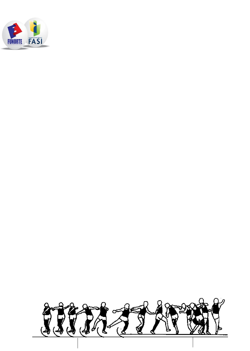 Faculdades Integradas do Norte de Minas - FUNORTE Curso de Educação Física - Prof. Me. Walter Moura ATLETISMO O LANÇAMENTO DO DISCO Ao que parece, o lançamento do disco foi descoberto pelos pescadores que lançavam placas chatas de pedras sobre a superfície da água, para que estas deslizassem. Ainda hoje, é bastante comum ver crianças praticarem esta brincadeira. A popularidade do lançamento do disco na antiga Grécia, com a variedade de posições que adota o corpo em seus movimentos, serviu de inspiração para os artistas da época. Foram criadas obras maravilhosas, como por exemplo, o discóbolo calculando seu lançamento, de Alcamenes, que até hoje se encontra no Museu do Louvre, de Paris. Antigamente o arremesso do disco era praticado de uma forma muito diferente, da que é utilizada atualmente. A plataforma de arremesso era denominada Balbis e, se o disco caísse da mão no momento em que ia ser lançado, o atleta era desclassificado. Partindo daí, o desenvolvimento da técnica do arremesso do disco tem consistido em recorrer a técnicas antigas, já obsoletas, para torná-las efetivas. No princípio dos Jogos Olímpicos modernos (Atenas, 1896), a forma de arremessar o disco pouco tem em comum a atual. O atleta se colocava sobre um pedestal, não permitia nenhuma volta e era obrigado a saltar deste pedestal após o lançamento. O americano Garret resolveu poucos dias antes dos Jogos Olímpicos participar da prova, uma vez que faltava um elemento na equipe e marcou o recorde mundial da época com 29,15 metros. Foi estabelecida uma nova regra logo depois (1897) na qual o atleta poderia usar um círculo de 2,13m de distância e daí começaram a surgir os grandes nomes que marcaram época. A primeira grande estrela foi um vigoroso policial nova-iorquino, de origem irlandesa que em apenas 10 anos (1901/1911) quebrou sete recordes mundiais sendo que sua máxima distância alcançada foi de 43,08m. Porém, o maior herói olímpico do lançamento do disco, ainda é Al Oerter. Este atleta, um gigante de 1,93m e 125 quilos era famoso por seus nervos de aço. Recordista mundial, venceu quatro olimpíadas (Melbourne, Roma, Tóquio e Cidade do México). Embora a sua vitória em Tóquio não fosse uma grande surpresa, pelo sucesso repetido em 1966, foi emocionante. Considerado “velho” conseguiu no entanto 64,78m e novo recorde mundial. Melhores implementos e instalações, bem como um treinamento, tem melhorado bastante o índice técnico desta prova. TÉCNICA DO LANÇAMENTO DO DISCO Uma análise dos movimentos do lançamento do disco, mostra as seguintes fases: LANÇAMENTO BALANÇOS VOLTA Faculdades Integradas do Norte de Minas - FUNORTE Curso de Educação Física - Prof. Me. Walter Moura ATLETISMO a) EMPUNHADURA: O disco deve ser seguro de uma maneira bem descontraída, ficando apoiado pelas falanges distais e afastamento dos dedos(1), com exceção do polegar, que não participa desta sustentação, mas, ajuda no seu equilíbrio(3). O indicador se posiciona aproximadamente sobre o seu diâmetro, enquanto existe uma ligeira flexão do pulso, permitindo que a parte superior toque o antebraço(2). Assim se obtém a conveniente descontração e evita que o disco caia da mão do atleta, durante os movimentos seguintes. b) POSIÇÃO INICIAL: O atleta toma a posição na parte posterior do setor de lançamento, de costas voltadas para o sentido que este vai se realizar. O afastamento dos pés, formando a base, é igual à largura dos ombros. O peso é eqüitativamente distribuído em ambas as pernas, com o disco ao lado do corpo. (Figura 1a e 122, 1) Após a colocação do corpo nessa posição, inicia-se os balanceamentos preparatórios (três geralmente), onde o disco é levado de um lado para o outro do corpo, que o acompanha descontraidamente com participação total. Estes balanceios, além da quebra da inércia, têm por objetivo concentrar o atleta para a realização do arremesso e também auxiliar a impulsão favorecendo a velocidade do giro. (Fig. acima) Faculdades Integradas do Norte de Minas - FUNORTE Curso de Educação Física - Prof. Me. Walter Moura ATLETISMO c)BALANÇOS Balançar o disco tão longe quanto possível à direita, rodando simultaneamente o tronco (1). Posição inicial com pernas separadas à largura dos ombros, costas voltadas para a direção do lançamento; flexionar ligeiramente os dois joelhos (2). d) GIROS OU DESLOCAMENTO: A finalidade do giro é acelerar o disco de forma continuada ao longo de um percurso tão extenso quanto possível, anteriormente aos movimentos do lançamento propriamente dito. Uma das principais forças atuantes no lançamento é a força centrífuga, que é aumentada durante o giro, pois o caminho que o disco percorre em torno do eixo representado pelo lançador, é bem maior. O giro é iniciado com as pernas. A esquerda começa a girar sobre a planta para se dirigir ao sentido do lançamento, neste exato instante, o corpo começa a se deslocar e o arremessador leva, então, o seu peso sobre o pé esquerdo, que será o eixo do giro. O pé direito permanece no solo até o momento em que o lançador se encontre equilibrado sobre o pé esquerdo. Após perder o contato com o chão, é lançado em direção ao centro do círculo. No momento em que o pé direito se aproxima do seu objetivo o esquerdo perde o contato com o solo, havendo assim uma fase de suspensão. Este movimento é na realidade um salto rasante e veloz. Quando a perna direita fletida tiver o contato com o solo, ao centro do círculo e sobre a planta do pé, passa a ser o pivô. A perna esquerda é conduzida adiante, na parte anterior do círculo, formando assim a posição de lançamento. Como sempre acontece durante todo o giro, o braço de lançamento continua atrasado, com relação ao eixo da linha dos ombros. (Figura abaixo) Faculdades Integradas do Norte de Minas - FUNORTE Curso de Educação Física - Prof. Me. Walter Moura ATLETISMO e) POSIÇÃO FINAL O