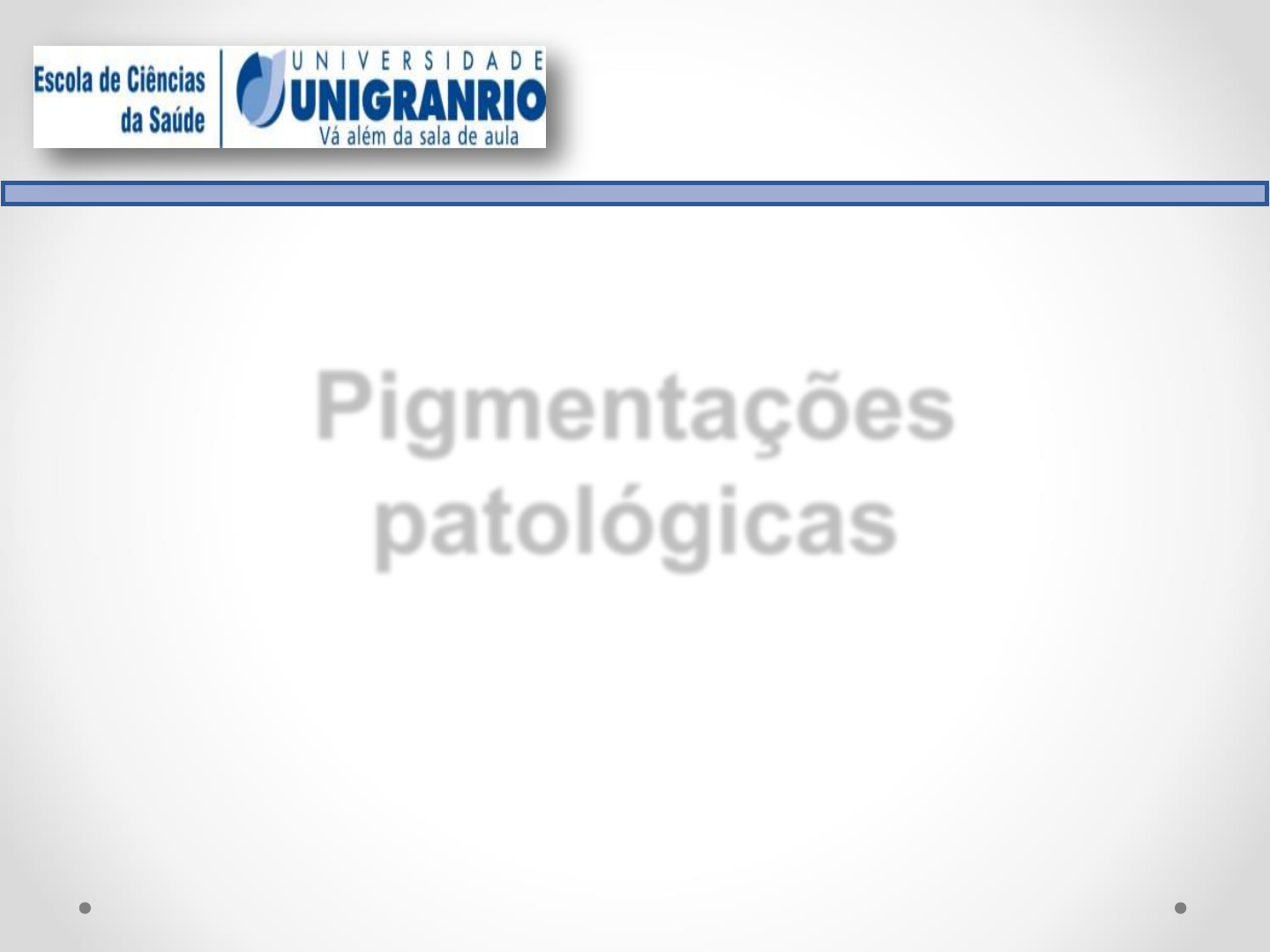 Pigmentações patológicas giselle.fagundes@unigranrio.edu.br Pigmentos O que são? Pigmentos são substâncias coloridas, algumas das quais são constituintes normais das células (p. ex., melanina), enquanto outros são anormais e acumulam-se nas células somente sob circunstâncias especiais. Podem ser exógenos, provenientes de fora do corpo, ou endógenos, sintetizados dentro do próprio corpo. Pigmentos exógenos Pigmentos exógenos penetram no organismo juntamente com o ar inspirado e com os alimentos deglutidos, ou são introduzidos por via parenteral, como ocorre com as injeções e tatuagens Pneumoconioses É uma doença respiratória causada pela inalação de substâncias químicas, como silicose, alumínio, grafite ou asbestos, que provocam tosse frequente ou dificuldade para respirar. •Carbono (antracose) • Sílica (silicose) • Asbestos (asbetoses) • Argíria (sais de prata) • Amálgama Pigmentos exógenos Tatuagem É uma forma de pigmentação exógena usualmente limitada à pele, na qual resulta da introdução de pigmentos insolúveis na derme, acidental ou propositalmente. As tatuagens são permanentes ou transitórias, conforme o pigmento seja introduzido na derme ou no estrato córneo da epiderme. É feita por sais de enxofre, mercúrio, ferro e entre outros corantes. A cor varia do tipo de pigmento presente. Pigmentos endógenos Resultam, em geral, de hiperprodução e acúmulo de pigmentos sintetizados no próprio organismo. Podem ser: (1) derivadas da hemoglobina, ou pigmentos hemoglobínicos (pigmentos biliares, hematoidina, hemossiderina,hematina, pigmento malárico, pigmento esquistossomótico); (2) melanina; (3) lipofuscina. Pigmentos endógenos Bilirrubina Deriva da fração heme da Hemoglobina e sofre um processo de conjugação no fígado que é fundamental para a constituição da bile. Bilirrubina (Bh) Icterícia É o sinal clínico causado pela elevação dos níveis plasmáticos de Bh acima de 3 mg/dL (hiperbilirrubinemia) e pela deposição desta na pele, nas mucosas e na maioria dos tecidos e órgãos, em especial no fígado e nos rins, nos quais produz coloração que vai do amarelo ao negro, passando por diversas tonalidades de verde. Tipos de Icterícia Pré-hepática Hemolítica Qualquer agente que cause hemólise e que a quantidade de bilirrubina liberada exceda a capacidade de conjugação e eliminação do fígado. Tipos de Icterícia Hemolítica Hemólise adquirida (Malária) Hemólise hereditária (Eritroblastose fetal, anemia falciforme) Tipos de Icterícia Hepatocítica Lesão direta nos hepatócitos, impedindo o metabolismo das bilirrubinas. Ocorre nas hepatites e neoplasias. Observa-se acúmulo de bilirrubina conjugada e não- conjugada. Tipos de Icterícia Pós-Hepática Obstrução do fluxo normal da bile. A bilirrubina conjugada não atinge o intestino. Pigmento malárico Hemozoíta Produzido a partir da degradação da hemoglobina pelo parasita Plasmodium falciparum da malária durante sua evolução no interior das hemácias. Pigmento esquistossomótico Originado do tubo digestivo do parasita Schistosoma mansoni a partir do sangue do hospedeiro que é ingerido pelo verme adulto; O pigmento se acumula como grânulos castanho escuros ou negros nas células de Kupffer, nos macrófagos e no baço. Hemossiderina Deriva da destruição das hemácias. É uma forma de armazenamento de ferro. Pode acumular devido a : 1) Excessiva destruição das hemácias; 2) Excessiva absorção de ferro pelo intestino. Hemossiderina A deposição excessiva de hemossiderina nos tecidos pode ser localizada ou sistêmica. Localizada: É observado nas hemorragias, onde a hemossiderina é encontrada no interior de macrófagos cerca dc 24-48 horas após o início do sangramento (hemossiderose localizada). Sistêmica: A deposição sistêmica de hemossiderina (hemossiderose sistêmica) ocorre em consequência do aumento da absorção intestinal do ferro, observado especialmente nas anemias hemolíticas e após transfusões de sangue repetidas. Melanina A coloração normal da pele, dos pêlos e do olho é devido à melanina, que um pigmento acastanhado que aparece em negros quando mais concentrado. Melanina A pigmentação da pele humana é dividida em dois componentes: a) Cor natural: cor básica da pele, o que inclui a quantidade de melanina oriunda do status genético do indivíduo; a) Cor induzida: é a coloração que inclui a pigmentação melânica não permanente que surge após a exposição direta à radiação ultravioleta, a qual lesa essas células que passam a produzir melanina para suprir e recobrir tal lesão e proteger a pele. Melanina Os aumentos localizados da melanina podem se manifestar sob as seguintes formas: •Nevo celular: localização heterotópica dos melanoblastos (camada basal da epiderme). Os nevus podem ser planos (ditos juncionais) ou elevados (dérmicos ou intradérmicos). Os nevos melanocíticos podem simular melanomas quando apresentarem as características de assimetria, bordas irregulares, mais de uma cor e tamanho superior a 6 milímetros -> atípico ou displásicos Marcadores de risco: Pessoas com múltiplos nevos atípicos (mais de 50) têm um risco elevado de desenvolver melanomas. Melanina Os aumentos localizados da melanina podem se manifestar sob as seguintes formas: • Melanomas: manchas escuras, de natureza cancerosa. Há o aumento da quantidade de melanócitos, os quais encontram-se totalmente alterados, originando esse tumor maligno. Melanoma x Nevo celular Melanina Os aumentos localizados da melanina podem se manifestar sob as seguintes formas: •Efélides ou Sardas: hiperpigmentação na membrana basal causada por melanoblastos. •Mancha mongólica: mancha arroxeada principalmente na região do dorso e sacral. Melanina Como diminuição localizada da pigmentação melânica tem-se: Vitiligo: comum nas mãos; causada pela diminuição da quantidade de melanócitos produtores de pigmento na epiderme, 