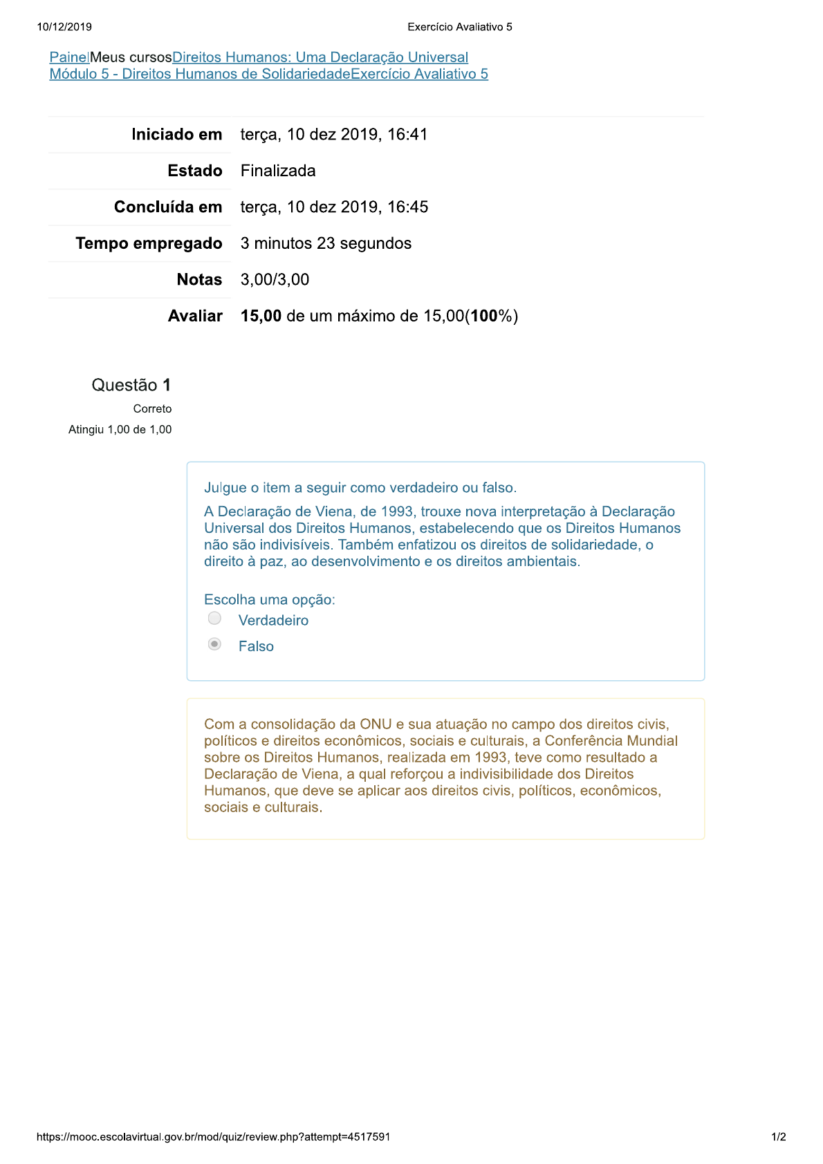 Curso Direitos humanos uma declaração universal - Exercício Avaliativo - Módulo 2_ Revisão da tentativa