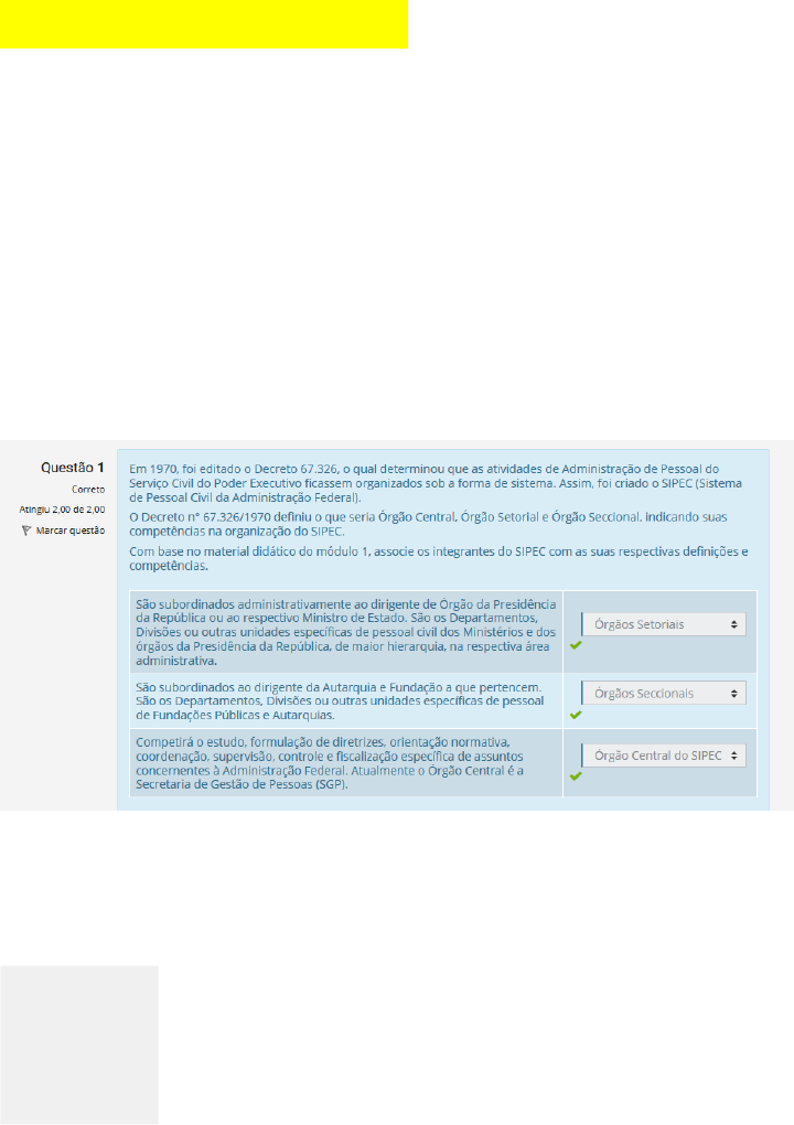 Até o início da década de 90, o governo federal não possuía dados que possibilitassem gerar informações como, por exemplo, vencimento por tipo de categoria profissional, consolidação por órgão e setores, quantitativos físicos etc., pois cada órgão realizava sua gestão de recursos humanos da forma que julgava mais adequada e, em consequência disso, o governo não tinha uma visão macro deste contexto. Sendo assim, em 1990, foi editado o Decreto 99.328 que instituiu o SIAPE. Com base no material didático do módulo 1, assinale a alternativa que apresenta o objetivo da criação do SIAPE. a. O objetivo de criação do SIAPE foi o de atender ao Departamento de Recursos Humanos da Secretaria da Administração Federal, nas atividades de planejamento, coordenação, supervisão, controle e desenvolvimento de recursos humanos da Administração Pública Federal direta, de ex-Territórios, das autarquias e das fundações públicas. b. O objetivo da criação do SIAPE foi unificar as folhas de pagamento do governo federal e dos governos estaduais para possibilitar maior transparência e eficiência à gestão dos gastos, pois cada órgão gerenciava sua folha de pagamento por meio de sistemas desenvolvidos internamente, o que dificultava a aplicação uniforme da legislação de pessoal. c. O objetivo da criação do SIAPE foi o de dotar o Sistema de Pessoal Civil da Administração Federal - SIPEC, criado pelo Decreto n° 67.326, de 5 de outubro de 1970, de instrumento de modernização da administração de recursos humanos e da área de licitações e de viabilização da integração sistêmica nessa área. d. O objetivo da criação da SIAPE foi unificar as folhas de pagamentos do governo federal para possibilitar maior transparência e eficiência à gestão dos gastos, pois cada órgão gerenciava sua folha de pagamento por meio de sistemas desenvolvidos internamente, o que dificultava a aplicação uniforme da legislação de pessoal.