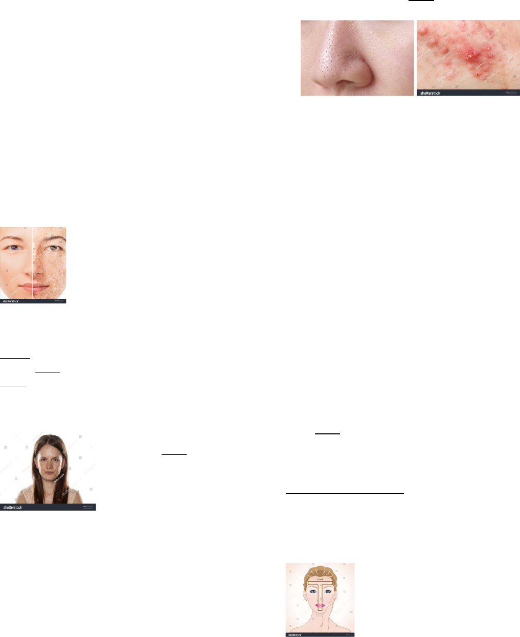 Dermatofuncional B Biotipos e Fototipos Cutâneos BIOTIPO CUTÂNEO: Hidratação Quando falamos de Biotipo cutâneo é diferente de Biotipo corporal, o biótipo corporal tem a ver com a gordura de cintura para baixo, e cintura para cima. Mas o biótipo cutâneo tem relação com a quantidade do sebo e suor na superfície da pele. E aí essa regulação da quantidade de sebo e suor na superfície da pele chamamos de MANTO HIDROLIPÍDICO. É esse controle de produção de sebo e suor. Quando eles estão equilibrados a gente consegue manter a hidratação da pele de maneira adequada diminuindo as agressões internas, os sinais de envelhecimento. Mas quando eu tenho perda de água, os sinais de envelhecimento eles começam a se tornarem mais visíveis, as rugas, linhas de expressões, as manchas e aí eu tenho basicamente 4 biotipos cutâneos. 39:55 PELE SECA OU ALIPÍDICA É aquela pele que tem desidratação, é mais sensível, descama facilmente, ela tem perda da retenção de sebo e suor na superfície na pele, e por essa diminuição a pele fica mais opaca, sem brilho, você passa o dedo e fica branca de desidratação, os sinais do envelhecimento acontece mais rápido nesses indivíduos, a perda de elasticidade ela é maior. É aquela pele que dificilmente vai ter cravos ou espinhas, porque se eu preciso do sebo para gerar o cravo, e a paciente tem pouco sebo, não vai ter cravo. É um paciente que tem pouca acne. PELE OLEOSA OU LIPÍDICA É aquela pele mais resistente, que tem cravo, que pode desenvolver espinhas, você passa a mão e quando atrita o dedo um no outro está oleoso. E aí eu tenho que testar isso em todas as áreas do rosto, é mais testa, nariz, queixo? Ah, só tem no meio. Então é pele mista, que tem essa oleosidade no centro na zona T, e tem a pele mais seca ou equilibrada nas regiões laterais. A pele oleosa é brilhante constantemente. Então, eu tenho mais produção de sebo do que de suor. É aquela pele que tem muita gordura na superfície, e não necessariamente quem tem pele oleosa terá pele hidratada, porque para hidratar eu preciso de água e eu posso ter pele oleosa desidratada. Temos que avaliar: Pegar essa pele e puxar, uma borda e outra, abrir essa pele, se ela craquelar e ficar branca é sinal de desidratação, tem que beber água e passa creme. O nome correto do cravo é: COMEDÃO. COMEDÃO ABERTO: Comedão negro / preto / enegrecido. COMEDÃO FECHADO: Comedão branco. C Por que comedão branco? Porque eu tenho uma camada córnea protegendo esse conteúdo e ele fica da cor do sebo, branco ou amarelado. E quando essa camada córnea se rompe por algum motivo o conteúdo do sebo do folículo piloso entra em contato com o a polução, e a poluição vai oxidar esse comedão, por isso ele fica enegrecido, escuro. Esse comedão não foi retirado, ficou lá e ai houve a mão suja, pegou na porta, na cadeira, celular, e só futucando ele com o dedo sujo e resolve tirar, e infecciona. O que teremos no lugar? Espinha, pois a espinha é a evolução do comedão. A espinha é um comedão inflamado e ele inflama formando pápula, que é o vermelho, inflamação, ou quando essa inflamação infecciona, uma pústula. Comedão aberto ou fechado é um tipo de acne, só que é grau 1. Não inflamatória, quando a gente meche nesse cravo, ela vai inflamar o folículo e aí ela se torna uma acne pápulo-pustulosa. O pápulo só vermelha, e a pústula fica vermelha com pus. Por que com pus? Porque tem uma bactéria na flora da pele que é a propionibacterium acnes que quando encontra um ambiente úmido ela tenta se ativar. Mexi, inflamei, ela vai lá e infecciona aquela região. Então, a gente a maioria tem acne, mas não é inflamatória, onde ela evolui e torna-se uma acne grau 2. A pápulo-pustulosa! PELE MISTA Tem oleosidade no centro da zona T, e tem a pele mais seca ou equilibrada nas regiões laterais PELE EUDÉRMICA Bumbum de neném! Aquela pele maravilhosa, sebo e suor equilibrado, não tem manchas, cravos, rugas, é a pele do bebê. Sonho de consumo das pessoas. Indivíduos possuem essa pele em uma quantidade bem menor. Principalmente aqui por vivermos em uma zona tropical, que mesmo no inverno está calor e ao viajar para lugares mais frios como o sul, e a pele fica melhor, porque ela se adapta ao local de convívio do indivíduo. C O que vocês fazem com a acne? Primeiro erro: Não higienizar as mãos antes de realizar o procedimento. E aí a mão e a pele suja vai infeccionar a região. É um fato! É preciso higienizar a pele e as mãos, e ao realizar a extração dos comedões é com a ponta do dedo. Se colocar unha para poder tirar, você estará marcando a pele do paciente, lesionando mais, e junta a agressão da sua unha com a agressão da própria inflamação a pele irá manchar, pois o melanócito que estava lá descansado fala “Opa a pele está inflamada, tem alguém futucando, vai precisar proteger mais então vou mandar melanina no intuito de proteger, e acaba manchando a pele. O nome dessa mancha é MANCHA PÓS INFLAMATÓRIA, que veio decorrente a uma lesão. Ex.: Mulheres tem manchas em região de axila, virilha por depilação com lâmina. É uma mancha pós inflamatória pelo atrito da lâmina constante na pele. O melanócito pensa, “Se está agredindo, eu tenho que proteger.” É uma resposta fisiológica, ele manda mais melanina e a região fica manchada. Caso não consiga esperar, espera um intervalo de 1 semana, faz depilação de cera, a laser. Para remover os comedões é necessário o uso dos extratores, ou a ponta dos dedos (Não utilizar as unhas!!!) Não pode espremer em casa a acne sem o controle da higienização, utiliza o emoliente pois ele tem um PH mais alcalino, mais alto, para justamente facilitar a abertura do póro e ai eu aproveito essa janela de ação e faço a extração, depois tonifica e continua com uma máscara, argila, depende do nosso objetivo. Tem mais graus de acne, o 3 e o 4, que é aquela acne nódulo 