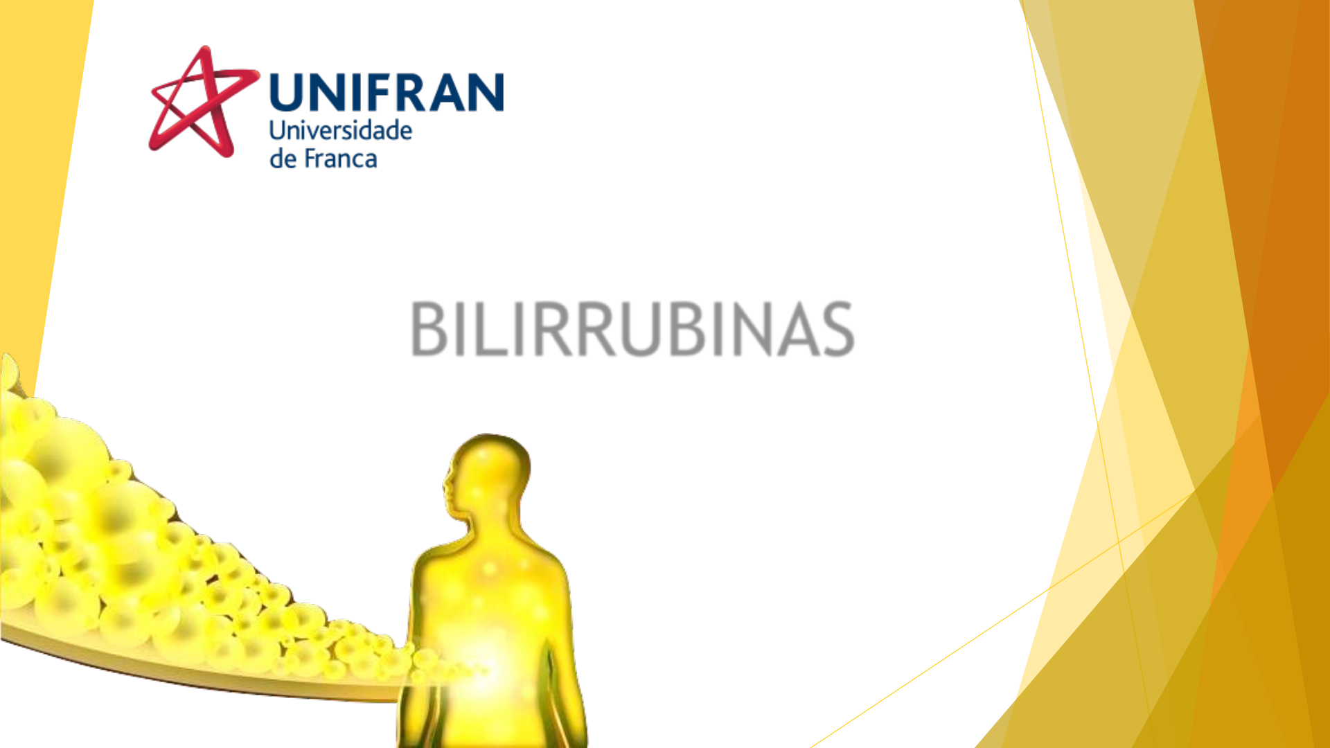 BILIRRUBINAS Aline Pannaci Andressa Santos Caroline Sanguino Mariana Moreira Bioquímica Clínica Conceito A bilirrubina é um pigmento amarelado, produto da degradação do heme (uma parte da hemoglobina presente nas hemácias); A bilirrubina resultante é liberada no sangue em uma forma simples, pouco solúvel, chamada de bilirrubina não conjugada, que é transportada no sangue ligada à albumina; Bilirrubina livre (não conjugada) Conceito No fígado, essa forma de bilirrubina é ligada a um açúcar, formando a bilirrubina conjugada, solúvel em água, que é excretada como componente da bile. No intestino, a maior parte da bilirrubina conjugada é reabsorvida, e o restante é metabolizado por bactérias intestinais e eliminado, dando às fezes sua cor característica. Tipos de Bilirrubinas Bilirrubina indireta ou não conjugada: é a substância que se forma no momento da destruição dos glóbulos vermelhos no sangue e que depois é transportada para o fígado. Por isso, sua concentração é maior no sangue e pode estar alterada quando existe alguma condição envolvendo as hemácias, como a anemia hemolítica, por exemplo; Bilirrubina direta ou conjugada: corresponde à conjugação entre a bilirrubina e o ácido glicurônico, um açúcar, no fígado. A bilirrubina direta sofre ação da bile no intestino. Assim, a concentração de bilirrubina direta está alterada quando há alguma lesão hepática ou obstrução biliar. Bilirrubina indireta Bilirrubina direta Tipos de Bilirrubinas As hemácias que contém hemoglobinas possuem transportam o oxigênio dos pulmões para o restante do corpo, e possuem um tempo de vida, aproximadamente 120 dias, até serem fagocitadas pelos macrófagos, em maior quantidade no baço; São fracionados em duas moléculas, a Heme e a Globina: A globina é utilizada na síntese de proteínas. A Heme se liga a uma enzima chamada heme oxigenase se transformando em Biliverdina. A biliverdina se liga em outra enzima chamada de bilirrubina redutase e se transforma então em bilirrubina. Metabolismo das Bilirrubinas A bilirrubina livre (não conjugada) vai para a corrente sanguínea após se ligar a proteína albumina e é transportada até o fígado; Ao chegar no fígado a ligação com a albumina é rompida e a bilirrubina se liga com outra enzima chama de UDP glicoroniltransferase, a qual conjuga com uma ou duas moléculas de ácido glicurônico(açúcar) formando um composto mais polar e hidrossolúvel. A bilirrubina conjugada é excretada para os intestinos e no duodeno através do ducto biliar principal, é desconjugada e reduzida por ação das glicuronidases bacterianas, formando os urobilinogênios. Metabolismo das Bilirrubinas O Urobilinogênio tem dois caminhos para seguir: 1. Pode ser levado para a corrente sanguínea, chegando nos rins e ser convertido em Urobilina e ser secretado pela urina; 2. Ou ele pode permanecer no intestino delgado e ir para o intestino grosso onde será convertido em Estercobilina e ser secretado pelas fezes. * Em sua maioria são excretadas nas fezes, ,e cerca de 5% são excretados na urina. Uma pequena parte também é reabsorvida através da mucosa intestinal e volta ao fígado. Metabolismo das Bilirrubinas Metabolismo das Bilirrubinas Exames Laboratoriais O exame da bilirrubina é solicitado com o objetivo de avaliar a função do fígado, monitorar o tratamento de recém-nascidos ictéricos e avaliar doenças que podem interferir na produção, armazenamento, metabolismo ou excreção de bilirrubinas. Bilirrubina total Bilirrubina direta Bilirrubina indireta O exame da bilirrubina não necessita de preparo e é realizado com uma pequena quantidade de sangue (cerca de 1 ml); Condições: Soro Método: Colorimétrico Jejum não obrigatório (se possível por 3 horas) Pode ser necessário interromper o uso de certos medicamentos antes do exame ser realizado, por isso é importante informar quais medicações são tomadas regularmente (exemplos: antibióticos, sedativos, diuréticos e medicamentos para asma) O resultado pode sofrer interferência quando a amostra se encontra hemolisada (quantidade de hemácias destruídas é muito grande) - normalmente acontece quando a coleta não é realizada de maneira correta. Exames Laboratoriais Para adultos: Bilirrubina direta: inferior ou igual a 0,4 mg/dl Bilirrubina indireta: inferior ou igual a 0,8 mg/dl Bilirrubina total: de 0,3 a 1,2 mg/d Recém-nascidos a termo (bilirrubina total) Menos de 24 horas: de 1,4 a 8,7 mg/dl de 24 a 48 horas: de 3,4 a 11,5 mg/dl de 3 a 5 dia: de 1,5 a 12,0 mg/dl Valores de Referência Prematuros (bilirrubina total) Menos de 24 horas: inferior a 8,0 mg/dl de 24 a 48 horas: inferior a 12,0 mg/dl de 3 a 5 dias: inferior a 16,0 mg/dl *Após o 6º dia os valores de referência são os mesmos que os do adulto. Valores de Referência O exame de bilirrubina geralmente é pedido pelo médico quando existem sintomas de problemas no fígado, como cansaço excessivo, náuseas frequentes, vômitos, dor constante na barriga, urina escura ou pele amarelada, por exemplo; No entanto, este exame também pode ser usado quando existe suspeita de cirrose, hepatite e anemia hemolítica, por exemplo, que causa sinais como palidez, sono frequente, pele seca, queda de cabelo ou unhas fracas; A diminuição nos níveis de bilirrubina normalmente são devido ao uso de alguns medicamentos. Patologias relacionadas à bilirrubinas Hepatites virais Intoxicação por drogas Doença hepática alcoólica Cálculos biliares Tumores Fibrose nos dutos biliares Níveis de bilirrubina mais baixos que o normal raramente indicam uma condição grave. Patologias relacionadas à bilirrubinas Bilirrubina direta está mais elevada: problema associado com a eliminação da substância pelo fígado. Aumento da bilirrubina também pode estar relacionado a uma obstrução biliar ou lesão hepática. Síndrome de Gilbert ou doença de Gilbert (icterícia hereditária mais comum) Síndrome Crigle