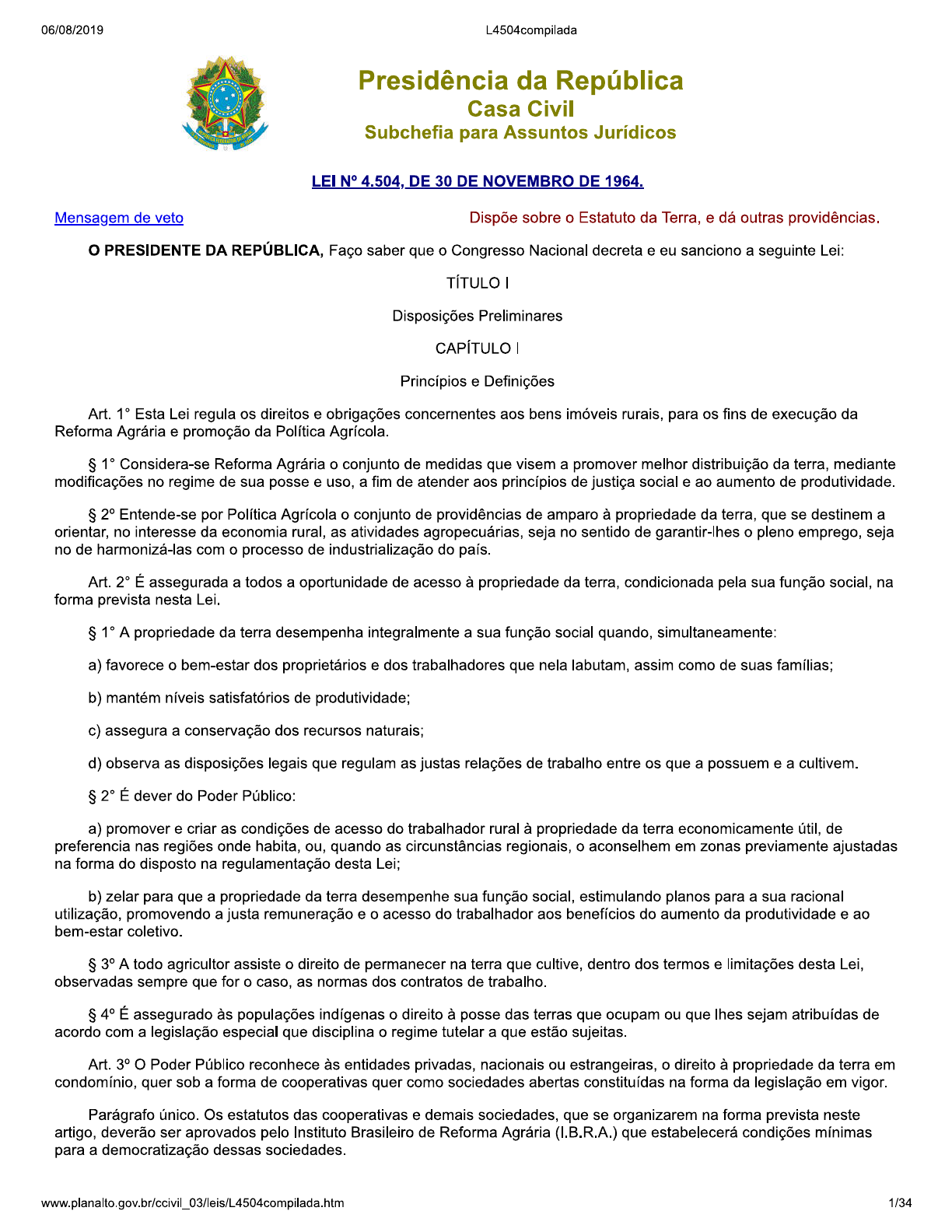 Lei 4504-1964 - Estatuto da Terra
