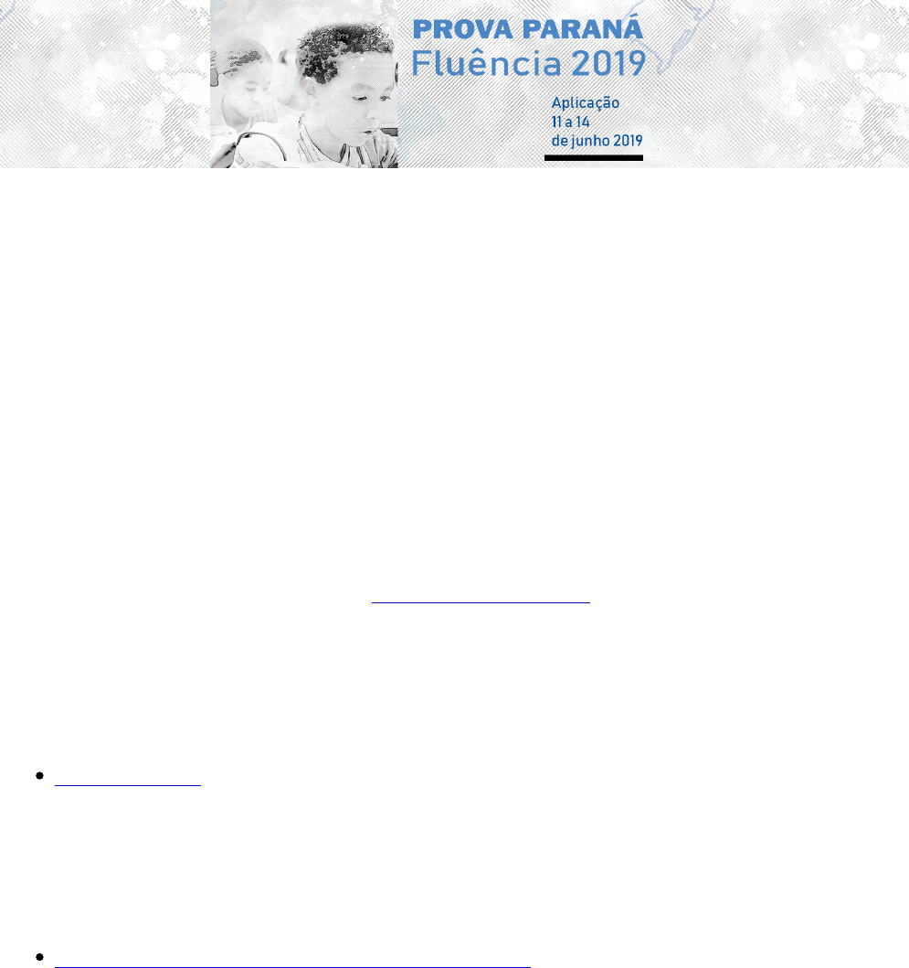 Avaliação de Fluência Categoria Geral Publicado em 06/06/2019 A avaliação tem o objetivo de verificar a fluência em leitura dos estudantes em fase de alfabetização e integra a 2ª edição da Prova Paraná, a ser realizada no período de 11 a 14 de junho, nas escolas estaduais e municipais que fizeram adesão. Os resultados dessa avaliação possibilitarão a elaboração de estratégias para melhorar o processo de aprendizagem, desde as práticas em sala de aula até o planejamento por parte dos gestores das escolas e das Secretarias de Educação. Resultados da Avaliação: (consulte aqui) Cadastro dos Aplicadores (navegador indicado Mozilla Firefox) Clique AQUI Materiais Ofício Prova Paraná - Avaliação de Fluência https://avaliacaofluencia-parc.caeddigital.net https://avaliacaofluencia-parc.caeddigital.net/#!/login http://www.provaparana.pr.gov.br/sites/prova/arquivos_restritos/files/documento/2019-06/oficio_prova_parana_fluencia.pdf Cronograma de Treinamento FAQ Consulte aqui Webconferências Esclarecimentos sobre a aplicação da Avaliação de Fluência nas Escolas Municipais para os estudantes do 2º ano do Ensino Fundamental I. http://www.provaparana.pr.gov.br/sites/prova/arquivos_restritos/files/documento/2019-06/faq_avaliacao_de_fluencia.pdf https://www.youtube.com/watch?v=UPFomU2nB0w&feature=youtu.be https://www.youtube.com/watch?v=UPFomU2nB0w&feature=youtu.be