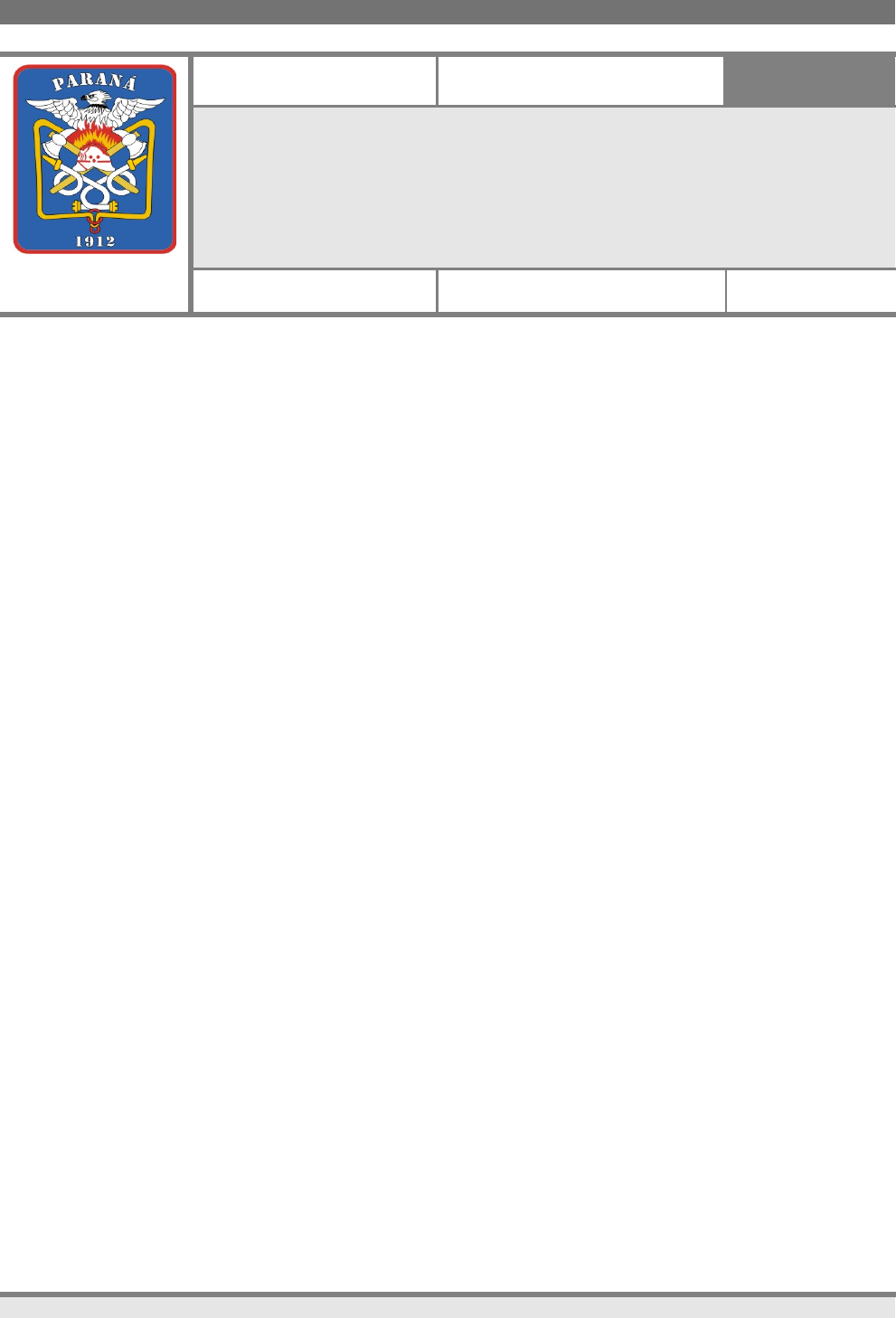 NPT 004 – SÍMBOLOS GRÁFICOS PARA PROJETO DE SEGURANÇA CONTRA INCÊNDIO E PÂNICO CORPO DE BOMBEIROS BM/7 Outubro 2014 Vigência: 08 outubro 2014 NPT 004 Símbolos Gráficos Para Projeto de Segurança Contra Incêndio Versão: 03 Norma de Procedimento Técnico 15 páginas SUMÁRIO 1 Objetivo 2 Aplicação 3 Referências Normativas e Bibliográficas 4 Definições 5 Procedimentos ANEXOS A – Símbolos gráficos para Projeto de Segurança Contra incêndio 1 OBJETIVO Esta Norma de Procedimento Técnico estabelece os símbolos gráficos a serem utilizados nos Projetos de Segurança Contra Incêndio das edificações e áreas de risco, atendendo ao previsto no Código de Segurança Contra Incêndio e Pânico do Corpo de Bombeiros da Polícia Militar do Paraná. 2 APLICAÇÃO 2.1 Os símbolos gráficos constantes desta Norma de Procedimento Técnico se aplicam aos Projetos de Segurança Contra Incêndio. 2.2 Adota-se a NBR 14.100/98 – Proteção contra incêndio – Símbolos gráficos para projeto, com as inclusões e adequações de exigências constantes nesta NPT. 3 REFERÊNCIAS NORMATIVAS E BIBILIOGRÁFICAS Instrução Técnica nº 04/2011 – Símbolos Gráficos para Projeto de Segurança Contra Incêndio Corpo de Bombeiros da Polícia Militar do Estado de São Paulo. NBR 14100/98 – Proteção contra incêndio – Símbolos gráficos para projeto. 4 DEFINIÇÕES Para efeito desta Norma de Procedimento Técnico, aplicam-se as definições constantes da NPT 003/11 – 1 NPT 004 – SÍMBOLOS GRÁFICOS PARA PROJETO DE SEGURANÇA CONTRA INCÊNDIO E PÂNICO Terminologia de Segurança Contra Incêndio. 5 PROCEDIMENTOS 5.1 Os símbolos gráficos que devem constar nos projetos de segurança contra incêndio das edificações e áreas de risco são apresentados no anexo desta NPT. 5.2 Os símbolos gráficos são compostos por uma forma geométrica básica, que define uma categoria de segurança contra incêndio e por um símbolo suplementar, que, quando colocado no interior da forma geométrica básica, define o significado específico do conjunto. 5.3 As dimensões dos símbolos devem estar em uma mesma escala, proporcional à escala de desenho do projeto, devendo permitir a perfeita visualização dos sistemas e equipamentos de segurança contra incêndio. 5.4 Os símbolos podem ser suplementados por figuras detalhadas, números ou abreviaturas. 5.5 Os significados de todos os símbolos utilizados devem ser representados em uma legenda, de forma clara e de fácil identificação pelo leitor. 5.6 Símbolos complementares que não constem do Anexo desta NPT, podem ser incorporados ao Plano de Segurança Contra Incêndio e Pânico, desde que devidamente definidos em legenda. 5.7 No caso de projetos executivos das instalações de segurança contra incêndio, poderão ser adotadas as simbologias próprias das respectivas normas técnicas da ABNT. 2 NPT 004 – SÍMBOLOS GRÁFICOS PARA PROJETO DE SEGURANÇA CONTRA INCÊNDIO E PÂNICO ANEXO A SÍMBOLOS GRÁFICOS PARA PLANOS DE SEGURANÇA CONTRA INCÊNDIO E PÂNICO 1 EXTINTORES 1.1 EXTINTORES PORTÁTEIS 1.1.1 Carga d' água........................................................................................................... 1.1.2 Carga de espuma mecânica..................................................................................... 1.1.3 Carga de dióxido de carbono................................................................................... 1.1.4 Carga de pó BC....................................................................................................... 1.1.5 Carga de pó ABC..................................................................................................... 1.1.6 Carga de pó D............................................................................................... 1.2 EXTINTORES SOBRE RODAS 1.2.1 Carga d' água........................................................................................................... 1.2.2 Carga de espuma mecânica.................................................................................... 1.2.3 Carga de dióxido de carbono................................................................................... 1.2.4 Carga de pó BC......................................................................................................... 1.2.5 Carga de pó ABC...................................................................................................... 1.2.6 Carga de pó D.......................................................................................................... 3 NPT 004 – SÍMBOLOS GRÁFICOS PARA PROJETO DE SEGURANÇA CONTRA INCÊNDIO E PÂNICO 2 SISTEMA DE HIDRANTES 2.1 SISTEMA DE HIDRANTES 2.1.1 Hidrante simples................................................................................................ 2.1.2 Hidrante duplo.................................................................................................... 2.1.3 Hidrante urbano de coluna................................................................................ 2.1.4 Hidrante urbano subterrâneo........................................................................... 2.1.5 Mangotinho........................................................................................................ 2.1.6 Tubulação de rede de hidrantes....................................................................... 2.1.7 Registro de recalque sem válvula de retenção.................................................. 2.1.8 Acionador de bomba de incêndio (botoeira tipo liga)......................................... 2.1.9 Bomba de incêndio............................................................................................ 2.1.10 Reserva de incêndio........................................................................................ 3 SISTEMA FIXO DE EXTINÇÃO 3.1 CHUVEIROS AUTOMÁTICOS 3.1.1 Ponto (bico de sprinkler)..............................................
