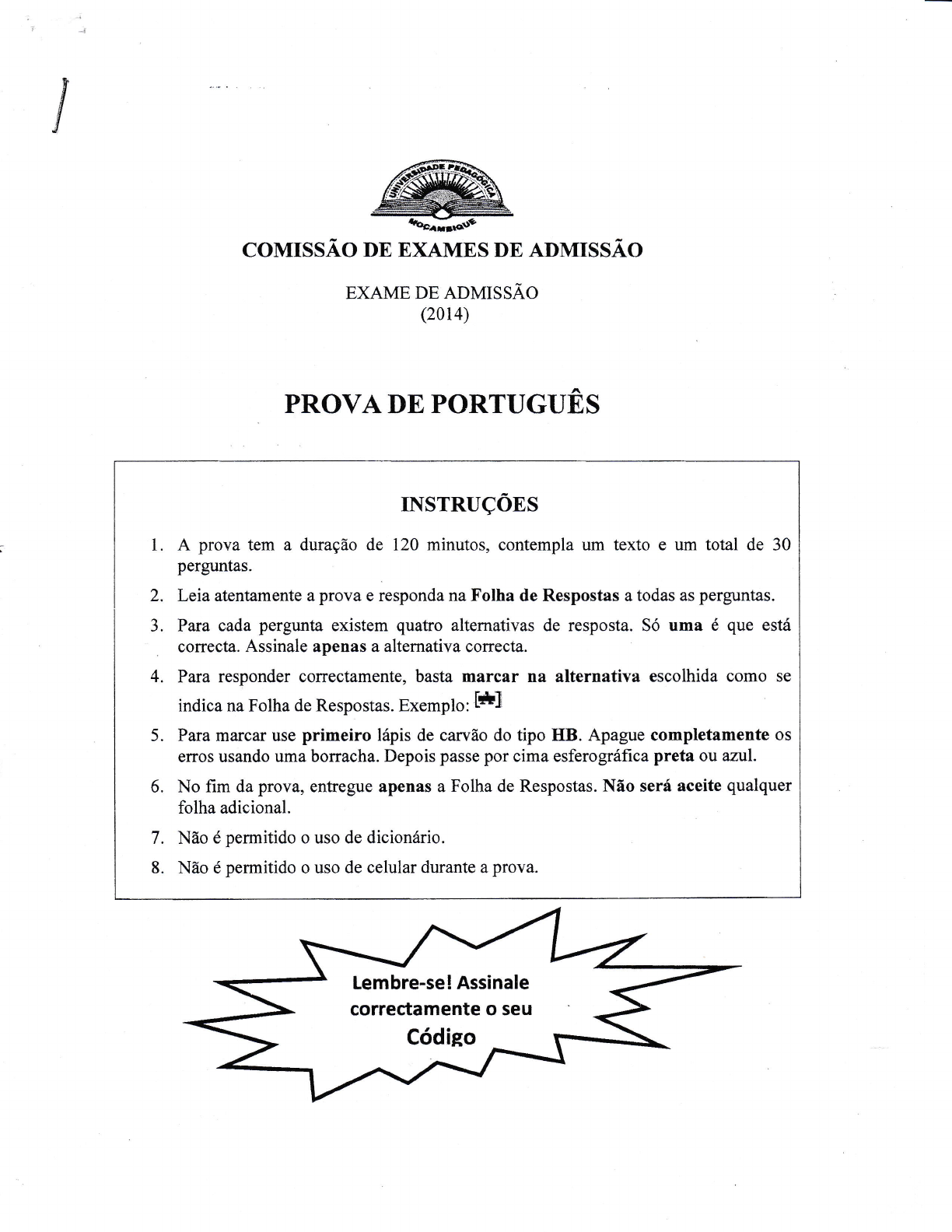 F í J coMrssÃo nrc ExAMES DE ADMrssÃo ExAME oe aoutssÃo (2014) PROVA DE PORTUGUÊS INSTRUÇOES 1. A prova tem a duração de 120 minutos, contempla um texto e um total de 30 perguntas. 2. Leia atentamente a prova e responda na Folha de Respostas a todas as perguntâs. 3. Para cada pergunta existem quatro alternativas de resposta. Só uma é que está correcta. Assinale apenas a alternativa correcta. 4. Para responder correctamente, basta marcar nâ alternaüva escolhida como se indica na Folha de Respostas. Exemplo: [*] 5. Para marcar use primeiro lápis de carvão do tipo HB. Apague completamente os erros usando uma borracha. Depois passe por cima esferográfica preta ou azul. 6. No fim da prova, entregue apenâs a Folha de Respostas. Não será aceite qualquer folha adicional. 7. Não é permitido o uso de dicionário. 8. Não é permitido o uso de celular durante a prova. Lembre-se! Assinale correctamente o seu Códieo PROVA DE PORTUGUÊS As razões do triunfo do conceito de desenvolvimento humano O reconhecimento publico nem sempre e a forma mais fiavel de avaliar a grandeza de um trabalho intelectual. 0 livro de John Stuart Mill intitulado Subjection of Women e o único trabalho dele no qual a sua editora teve prejuizos; o livro de Berkand Russell sobre lógica matemática' teve, inicialmente, poucos leitores; o livro Philosophical Investigations, de Wittgenstein, conquistou proeminencia gradualmente. De igual modo, a apreciaçáo da musica deMozart demorou mais do que o celebre compositor esperava. 0 aplauso rapido nem sempre premeia contribuições criativas. Pelo contriirio, Múbub VI Haq não teria tido oportunidade de se queixar que o mundo demorou muito tempo a apreciar os méritos notáveis da sua obra engenhosa, o Relatório de Desenvolvimento Humano, coma veiculo de comunicação, nem a aceitar a preeminência da ideia do 'desenvolvimento humano' como um conceito brilhante que integra uma variedade de preocupações sobre as vidas das pessoas, tr seu bem estar e liberdades. A criação de Múbub foi imediatamente notada e aplaudida em menos de uma decada. A este respeito, a PNW teve mais sorte do que a editora de John Stuart Mills. A pergunta que quero começar por levantar é esta: porque é que o Relatório de Desenvolvimento Humano foi e continua a ser alvo de tanta atenção e tao rapidamente num mundo em que as ideias novas geralmente levam decadas, mesmo seculos, para receberem O devido reconhecimento? Porque é que a ideia do desenvolvimento humano teve sucesso no mundo contemporaneo? Não se trata aqui de questionar a profundidade das ideias criativas de Mahbub Ul Haq, q.ri é obriu*ente clara e ãe modo algum é objecto de qualquer disputa ... Isto levanta uma questão ainda mais elementar. O que é que a contabilização do desenvolvimento humano faz? Qual é o seu aspecto especial, as suas características identificáveis? Esta é, em certâ medida, r,ma qupstão f;ácil de responder. Em vez de se concentrar somente nas tradicionais medidas económicas isoladas (tais coma o Produto Nacional Bruto per capita), a contabilização do desenvolvimento thmano envolve uma análise sistemática da informação rica sobre como é que os seres humaíos em cada sociedade vivem (incluindo o nível da sua educação e saúde, entre outras variáveis). Elattaz paxa <> exercício da avaliação do desenvolvimento uma concepção pluralista do progresso. As vidas humanas são prejudicadas e diminuidas de muitas maneiras e a primeira tarefa, nesta perspectiva, é reconhecer que as privações de diferentes formas tem de ser acomodadas dentro de um quadro conceptual mais geral. Este quadro tem de ser congruente e coerente, sem contudo tentar ignorar os pluralismos cruciais que estão envolvidos na natureza diversificada das privações, numa busca cega de uma medida de sucesso ou fracasso, de um único indicador para problemas tão dispares. É esta fé na monoconcentração que começou a suscitar bastante cepticismo quando os Relatórios de Desenvolvimento Humano foram lançados. Múbub assumiu a liderança de vários exércitos de descontentes que se batiam, embora esporadicamente, contra a concentração dogmática no PNB. Existiam activistas que lutavam pelo reconhecimento das 'necessidades básicas'. Existiam forças intervencionistas internacionais que lamentavam a situação das crianças no mundo. Existiam organizações de ajuda que estavam preocupadas com a fome e epidemias. Existiam escritores concentrados e preocupados com as 'disparidades' entre as vidas reais dos ricos e dos pobres. Existiam humanistas que clamavam pela justiça social na qualidade de vida. Existiam advogados de medidas da qualida.de fisica da vida. Havia mesmo críticos com inclinações filosóficas que se interrogavam sobre r;s indicadores mais abrangentes na ética social que se encontram nas obras celebres de .,4,::istóteles, Adam Smith, Kad Marx e mesmo John Stuart Mill. Foi por causa da visão integradora de Mahbub que ele viu a oportunidade de aproveitar estes diferentes descontentes paÍa a elaboração duma visão alternativa que pudesse ser simultaneamente préúica e ampla e pudesse acomodar, nem que fosse de uma maneira incipiente, estas preocupações. Se a ideia do desenvolvimento humano teve aceitação nápida foi graças a habilidade (de Mahbub ul Haq, em última análise) em transformar a onda de descontentamento num movimento intelectual crescente e flexível. Nao suqlreende, portanto, que as acusações contra Múbub tenham sido da mesma índote que as críticas usadas anteriormente paÍa garantir a vitória do utilitarismo, num cÍrmpo concebido especialmente para o efeito, e que a sua obra tenha gerado um sem-fim de protestos murmurados sobre como as ideias dele nao tinham gerado automaticamente uma única equação 'métrica operacional'. É verdade que não produziram, porque não podiam e nem deviam produzir. O domínio da avaliação social não pode ser tomado por so