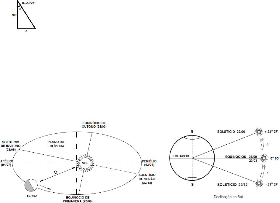 PROVA DE AGROMETEOROLOGIA GNE 109, 19/09/2011 1. A OMM estabeleceu um padrão para os horários de leituras dos elementos meteorológicos diários nas estações climatológicas da rede mundial de observações metorológicas. Que padrão é este? De que forma foram definidos os horários de leitura para Lavras-MG com base nesse padrão? R: Padrão de leitura, que preconiza que as observações meteorológicas sejam realizadas em pelo menos três dos seguintes horários: 6:00, 12:00, 18:00 e 24:00 horas do “Tempo Médio de Greenwich” (TMG) ou (UTC) podendo descartar um horário conforme a conveniência local.. O objetivo é de que em cada horário sejam feitas leituras simultâneas em toda a superfície do globo terrestre. Como Lavras se encontra a uma longitude de 45º 00’ W, ou seja à 45º 00’ a oeste de Greenwich (meridiano referencial) e o planeta Terra completa um giro de 360º a cada 24 horas (movimento de rotação – oeste para leste), ou seja 15º por hora, isto evidencia que o fuso horário de Lavras possui um atraso de 3 horas (45º/15o/hora), sendo portanto, 3:00, 9:00, 15:00 e 21:00, os correspondentes horários de leituras para Lavras. Por questões de facilidade operacional descarta-se o horário de 3:00 h. 2. Descreva sobre o psicrômetro presente na Estação Climatológica Principal destacando: como é composto este instrumento, princípio de funcionamento, instalação, horário (s) de leitura e qual a sua utilidade? R: É um conjunto de dois termômetros de mercúrio, simples (sem estrangulamento), instalados na posição vertical, sendo que um dos termômetros tem o seu bulbo envolto por uma “gaze” ou cadarço de algodão, cuja outra extremidade se encontra em um recipiente contendo água, de tal forma que devido à ascensão capilar da água, o bulbo é mantido sempre úmido. Este termômetro é denominado termômetro de bulbo úmido e o outro termômetro de bulbo seco. Estando o ar não saturado, ocorrerá evaporação de água a partir do bulbo úmido. Como a evaporação é um processo que consome energia, esta energia será retirada do sistema onde está o bulbo, fazendo com que o termômetro apresente temperatura menor que o termômetro de bulbo seco. Esta diferença psicrométrica será tanto maior quanto menor for a umidade relativa do ar. Assim, a leitura do psicrômetro nos dá condições para quantificarmos o vapor d’água presente na atmosfera. As leituras são realizadas nos três horários diários. 3. Um produtor rural tem um canteiro em sua propriedade em Lavras, MG, o qual produz diversas culturas agrícolas o ano inteiro. Ele deseja construir um galpão com altura de 6m para armazenar seus produtos próximos a este canteiro. A que distância o galpão deverá ser construído para que não haja sombreamento em nenhuma parte do canteiro em nenhuma época do ano ao meio dia solar? R: tg 23º27’ = x / 6 x = 1,48m O galpão deverá ser construído a uma distância de 1,48m do canteiro. 4. Explique o que seja “declinação solar”, destacando a razão de sua ocorrência e a sua influência na distribuição de energia solar sobre o planeta Terra durante o ano. R: A declinação do Sol (δ) é o ângulo formado por uma linha imaginária ligando o centro da Terra ao centro do Sol (denominada linha da eclíptica) com o plano do equador, tendo valores entre - 23º 27’ Sul e +23º 27’ Norte. O plano do equador terrestre faz com o plano da eclíptica um ângulo praticamente invariável de 23º 27’, ou seja, o eixo de rotação da Terra também possui esta mesma abertura angular com a normal (perpendicular) ao plano da eclíptica, podendo isto ser chamado de obliquidade da eclíptica. Esta obliquidade associada ao movimento de translação da Terra causa a impressão do movimento do Sol na direção Norte-Sul ao longo do ano, criando assim, o que se chama de declinação do Sol. Assim, em qualquer momento, uma parte do planeta estará mais diretamente exposta aos raios do Sol do que outra.De modo geral, portanto, conclui-se que os fatores determinantes das declinação solarsão: - O movimento de translação - A inclinação do eixo da Terra. 5. Descreva detalhadamente a lei de Lambert, fazendo gráficos e associe-a com a distribuição de energia solar na Terra. R: A quantidade de energia incidente (Iz) em uma superfície inclinada é igual à mesma quantidade de energia incidente na superfície normal a esta energia (In) multiplicada pelo cosseno do ângulo de inclinação (Z) que Iz faz com In. Esta lei explica as variações nas quantidades de energia interceptadas nas diferentes latitudes da superfície terrestre. Iz = In.cosZ A quantidade de radiação interceptada por unidade de área e tempo é menor pela manhã e à tarde, também chamado de efeito cosseno. 6. Explique a lei de Planck para um corpo emitindo energia a 6000 K e outro a 300 K, complementando com ilustrações. Destacar a predominância de comprimentos de onda emitidos e em qual corpo se observa a emissão de comprimento de ondas na faixa do visível. R: ?????? A lei de Planck descreve a intensidade ou radiância emitida por um corpo negro em equilíbrio térmico (a radiância espectral de um corpo negro) dada uma temperatura. Para um corpo emitindo energia a 6000 K, predomina um comprimento de onda bem menor do que o comprimento de onda emitido correspondente à energia de 300 K. O olho humano é sensibilizado pela radiação na faixa dos comprimentos de ondas de 0,36 a 0,76 μm, faixa essa denominada região visível. Abaixo de 0,36 μm é denominada radiação ultravioleta e, acima de 0,76 μm, de radiação infravermelha. Logo, observamos a emissão de comprimentos de ondas na faixa do visível no corpo que emite energia a 6000 K. 7. Em certo ambiente foi colocado um termohigrógafo e obteve-se as seguintes leituras: umidade relativa = 75% e temperatura do ar = 18ºC. Pede-se a) A quantidade de vapor d’água por unidade de volume no ambiente; umidade atual